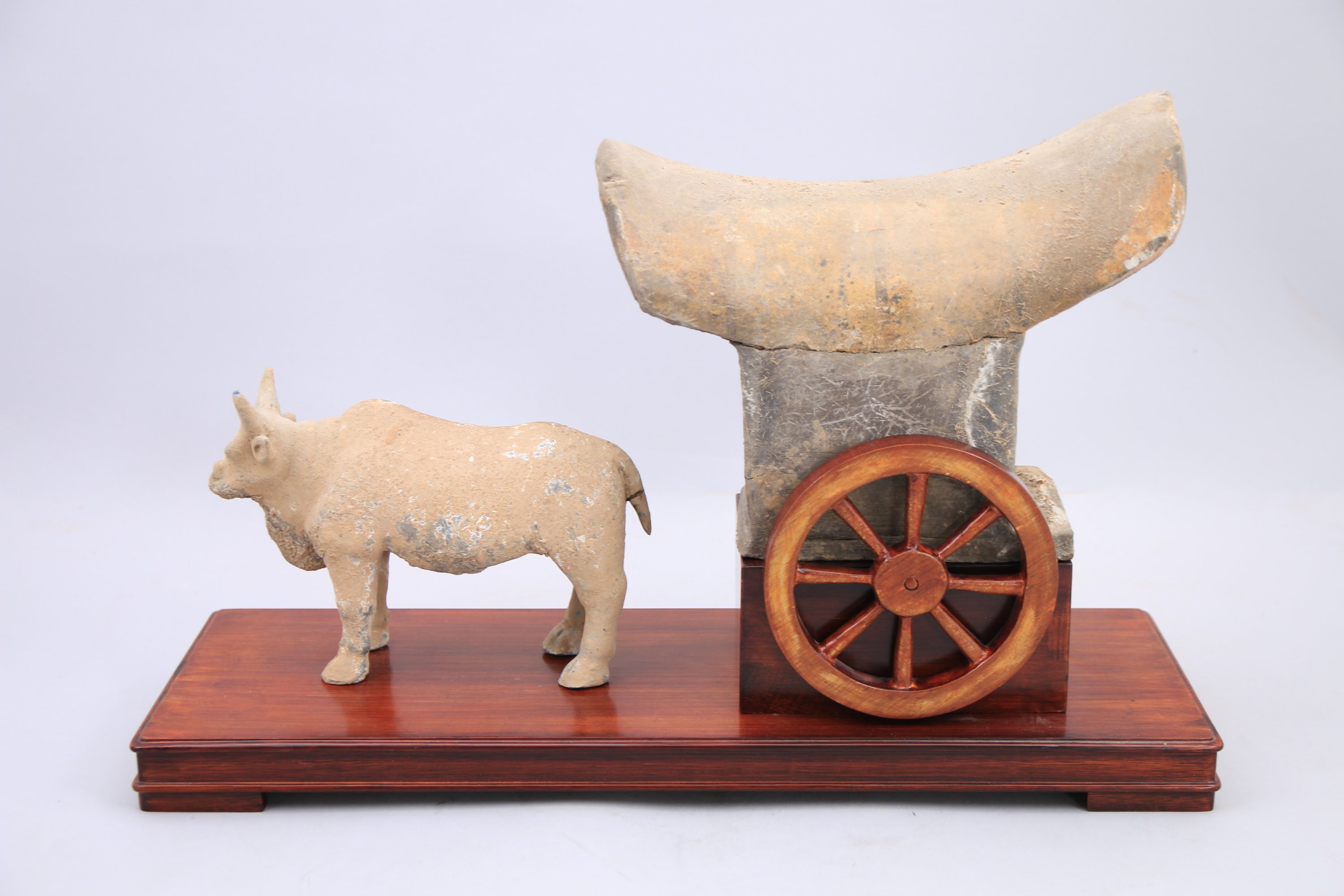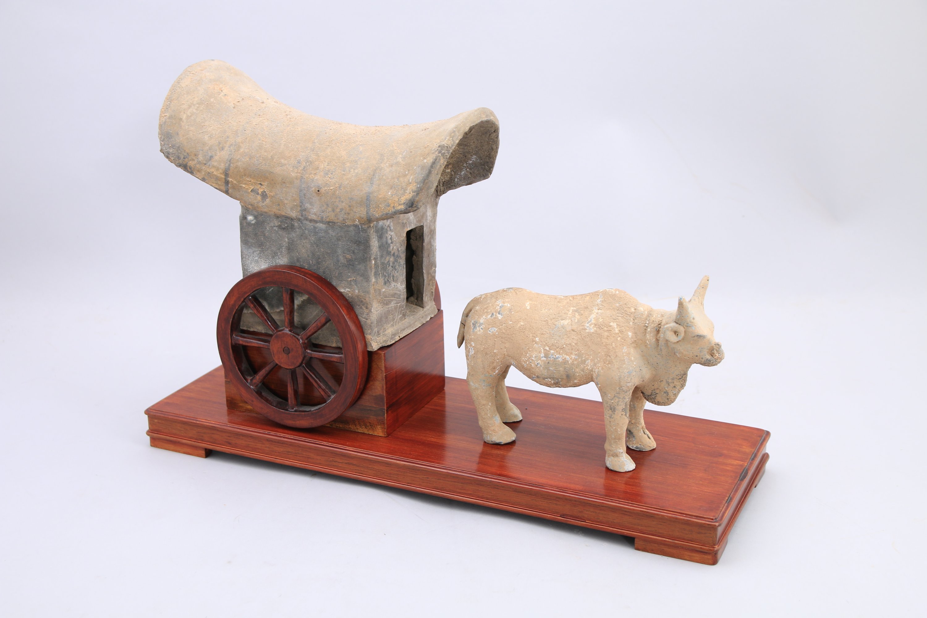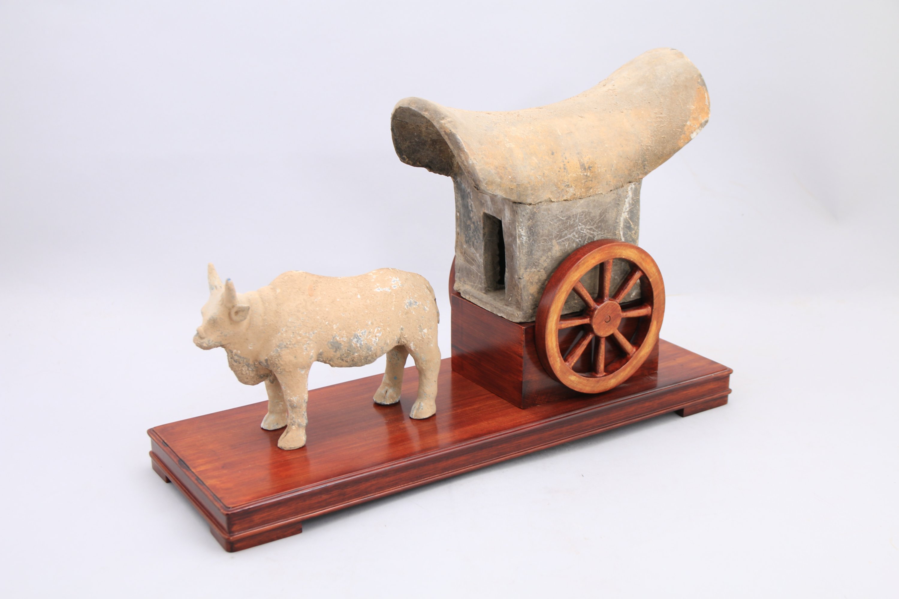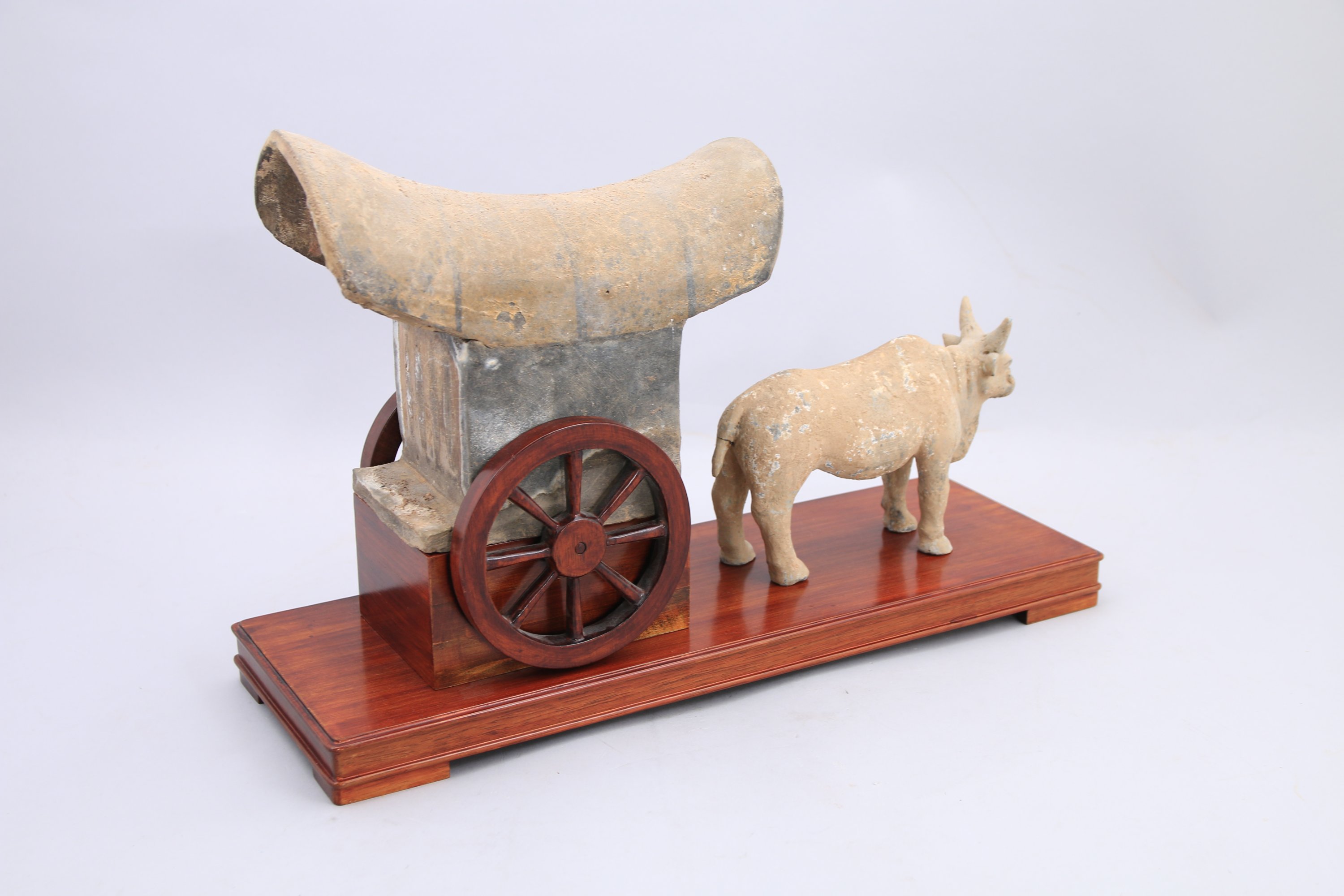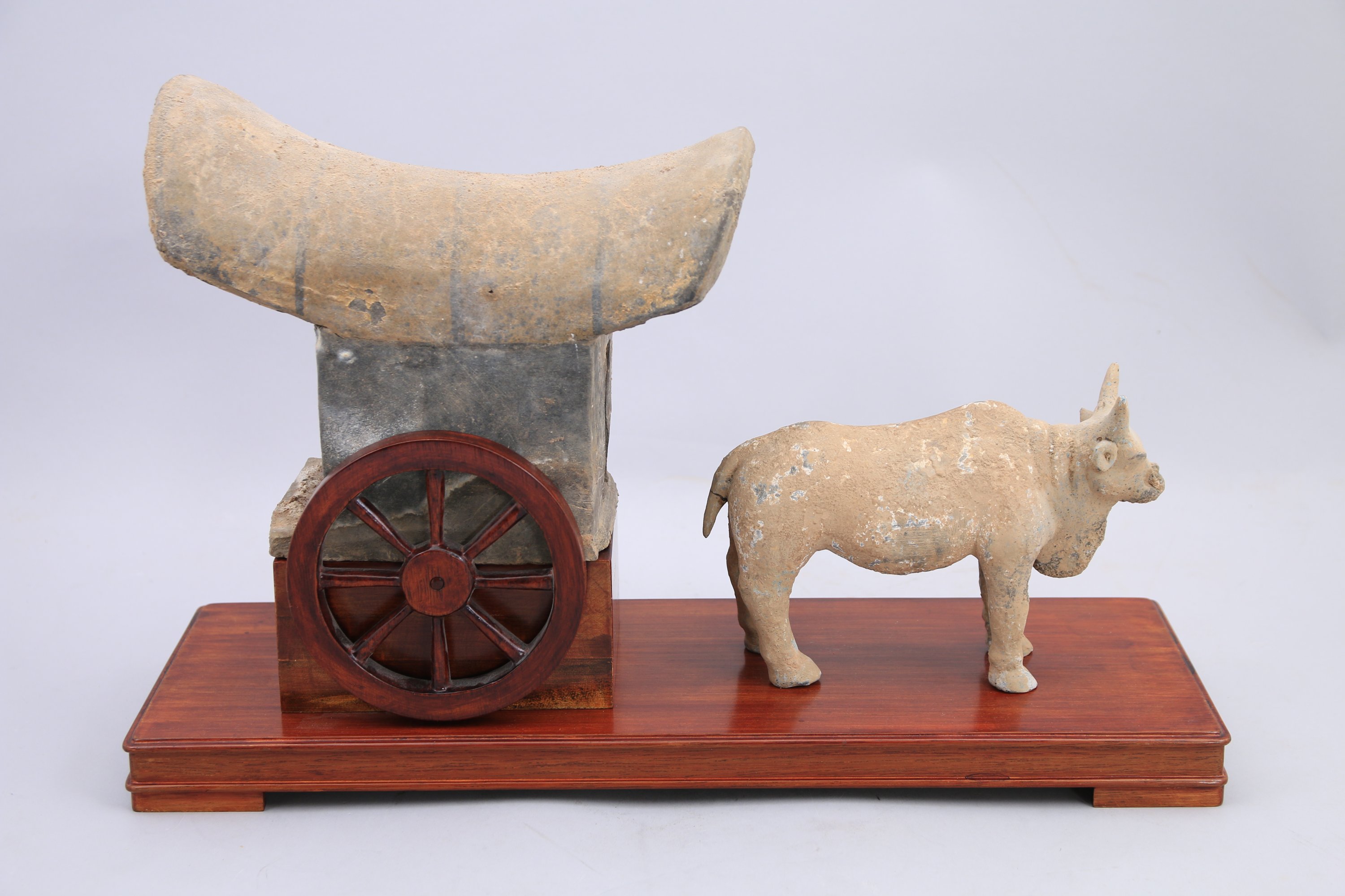 CHINE - époque WEI (386-556) Buffle et son chariot.Terre cuite....