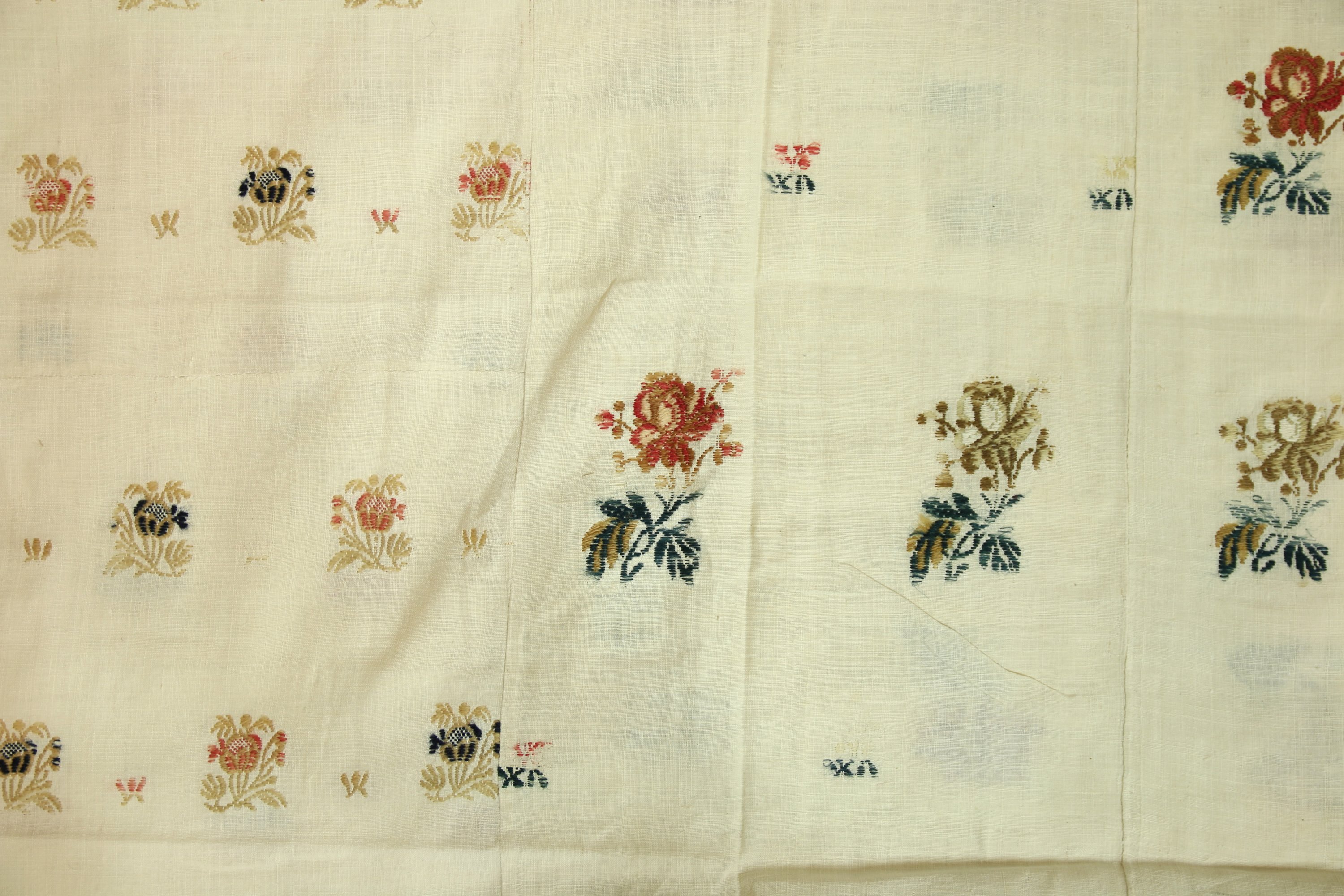 Panneau de cambrasine ou crewel work, XVIIIème siècle, toile brochée en laine polychrome de fleurs (usures à la laine).
