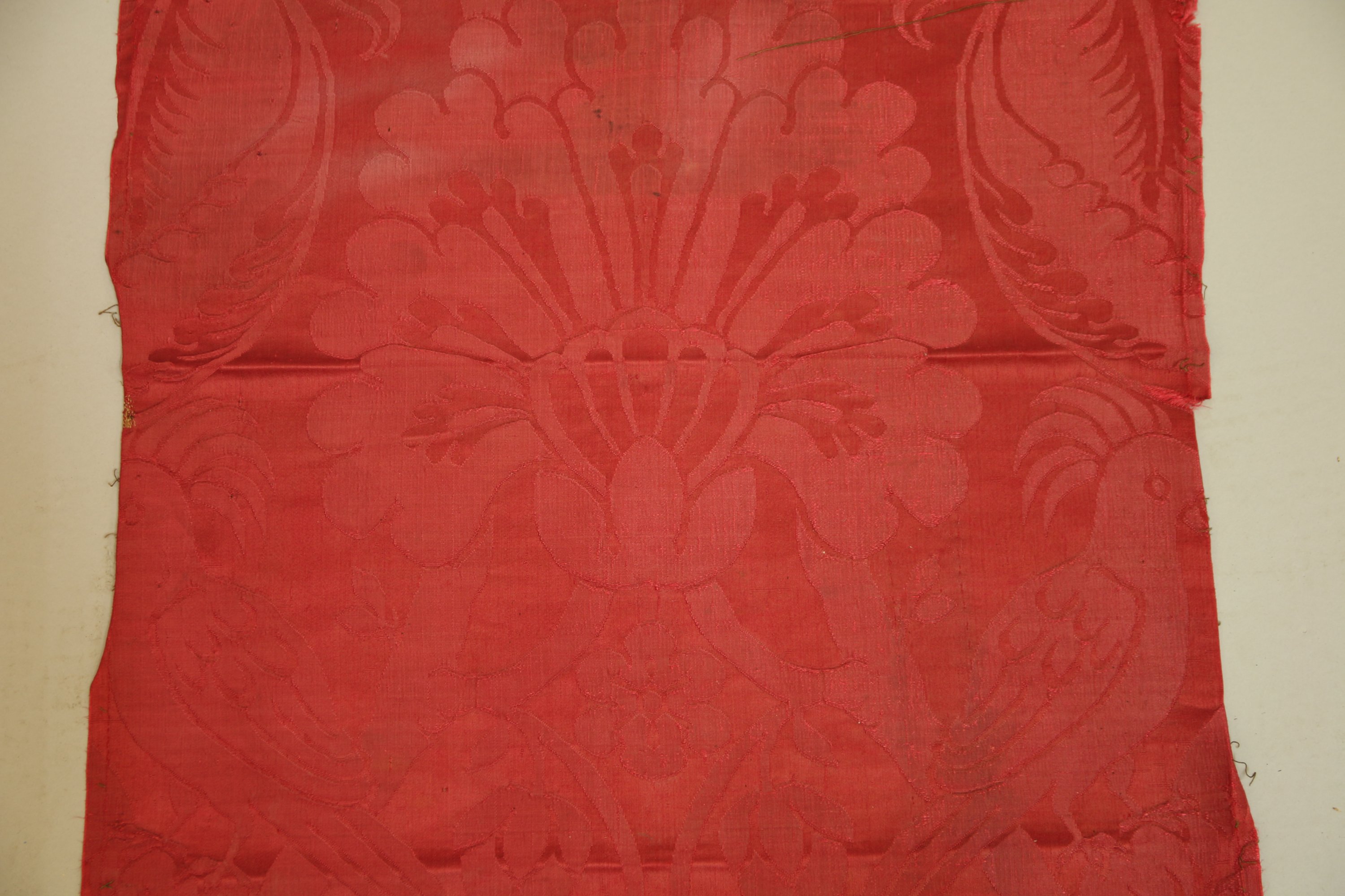 Réunion de fragments de damas rouge, XVIIIème siècle