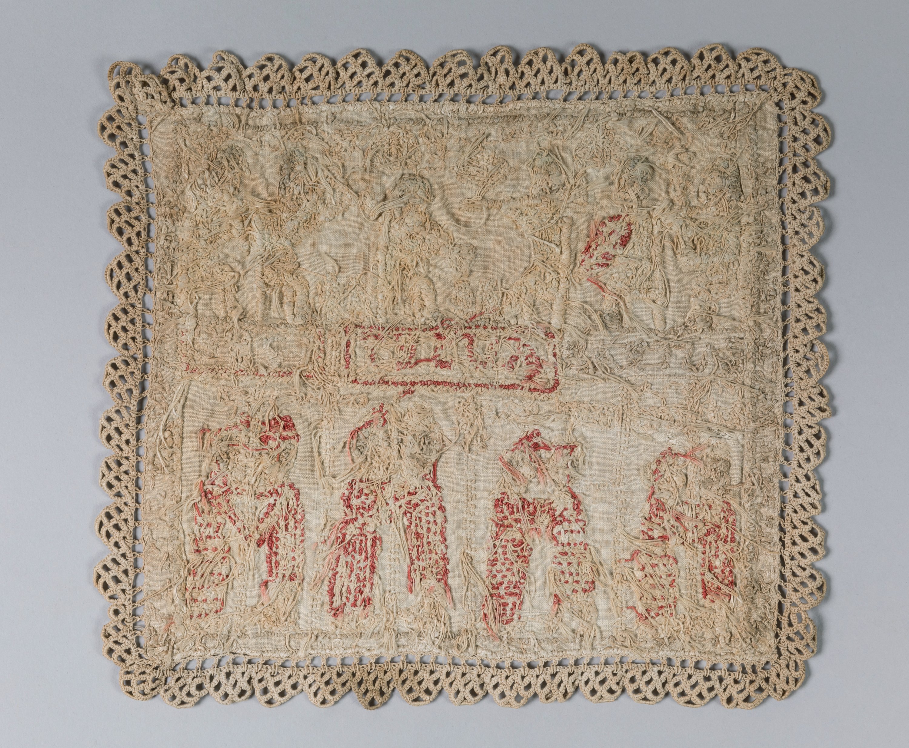 Tous auraient étés réalisés dans un hôpital psychiatrique dans le sud de la France à la fin du 19ème siècle. En conséquence notre textile n'a pu être brodé en 1782 comme daté, et mentionner "vive la République" qui avait été proclamée le 21 septembre 1792.
