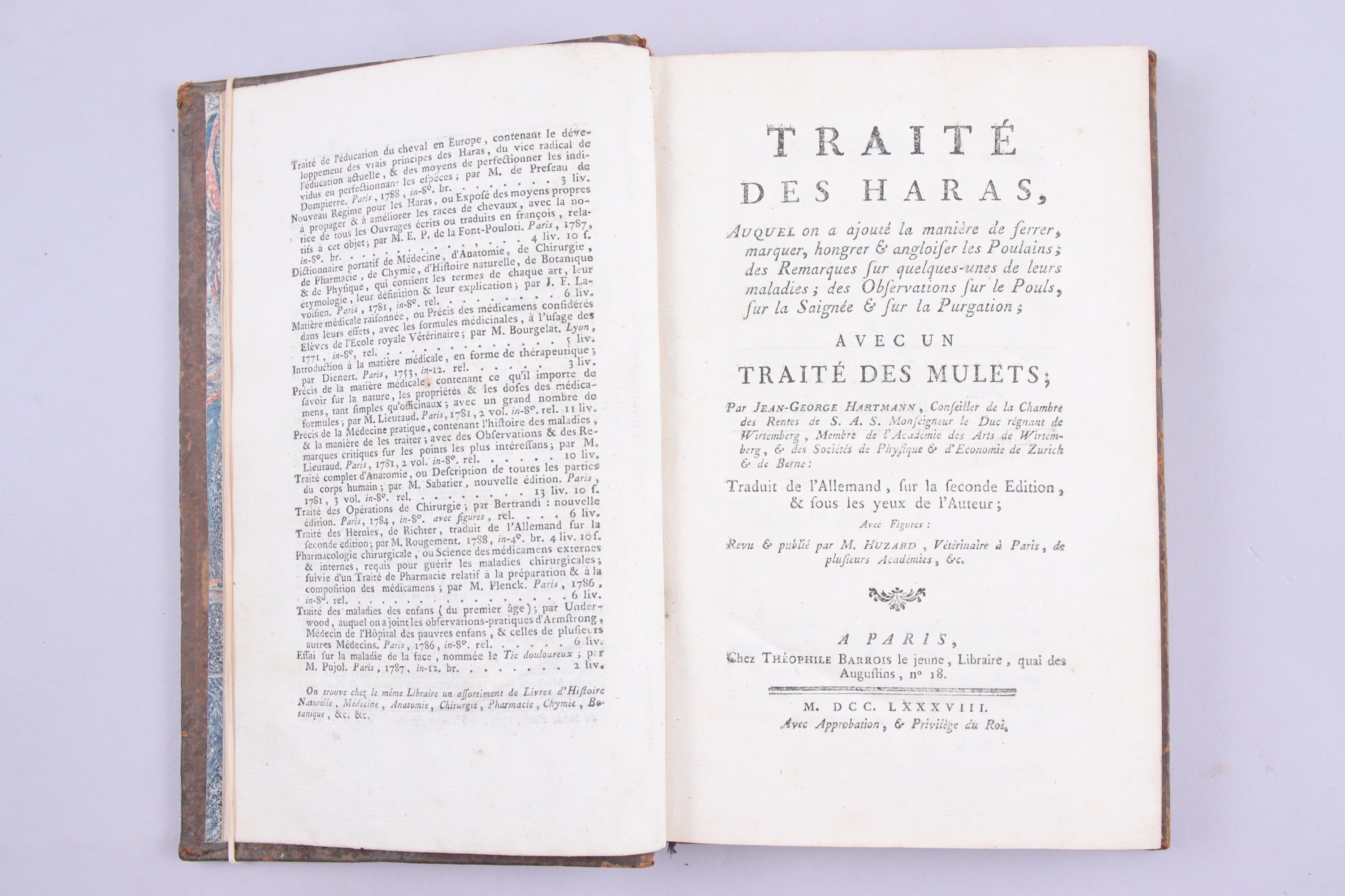 Traité des haras, auquel on a ajouté la manière de ferrer, marquer, hongrer et angloiser les poulains ...avec un Traité des mulets. Traduit de l'allemand sur la seconde édition... Avec figures. Revu et publié par M. Huzard, vétérinaire à Paris.