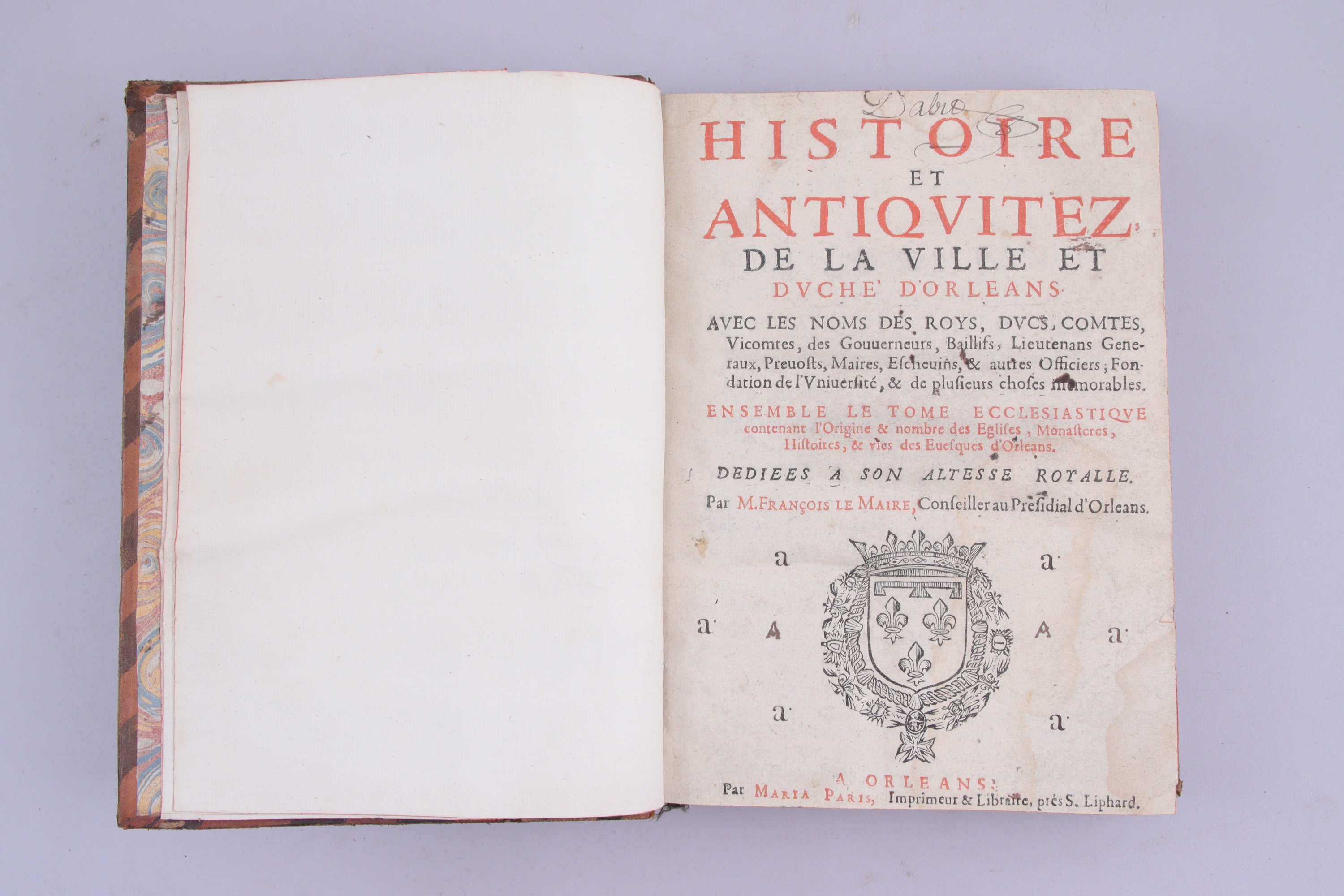 Histoire et antiquitez de la ville et duché d'Orléans ... ensemble le tome ecclésiastique, contenant l'origine et nombre des églises, monastères et vies des évesques d'Orléans. ... Par François Le Maire, conseiller au Présidial d'Orléans.