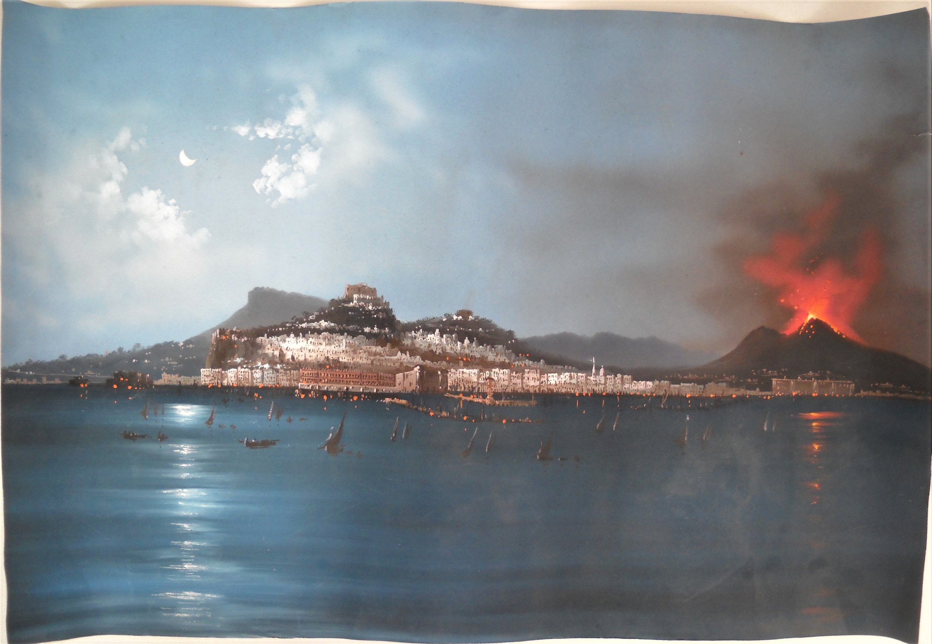 Vue nocturne de la baie de Naples et léruption du Vésuve