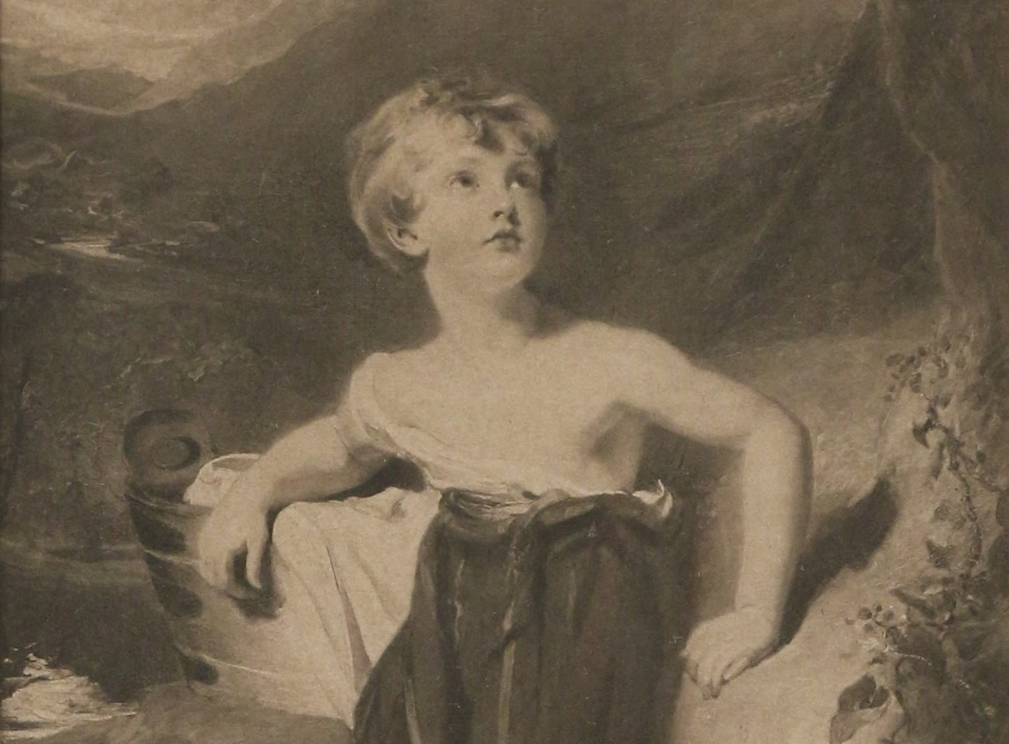 Dans un encadrement en stuc doré à décor de rang de perles (Haut. 41, Larg. 32,5 cm.)