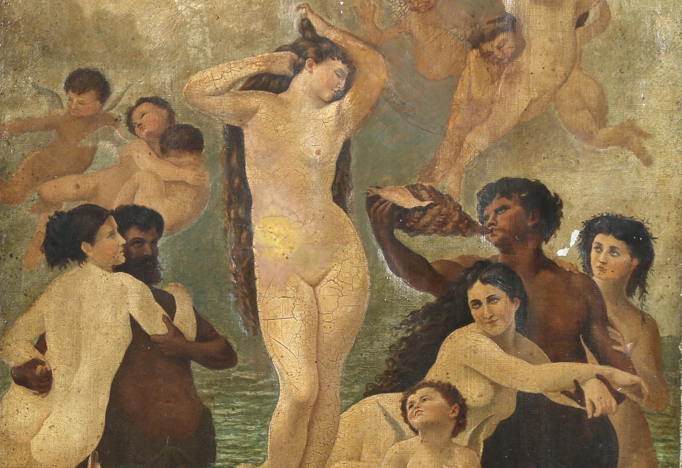 Huile sur toile. Porte une signature apocryphe en bas à droite « W. Bouguereau ».