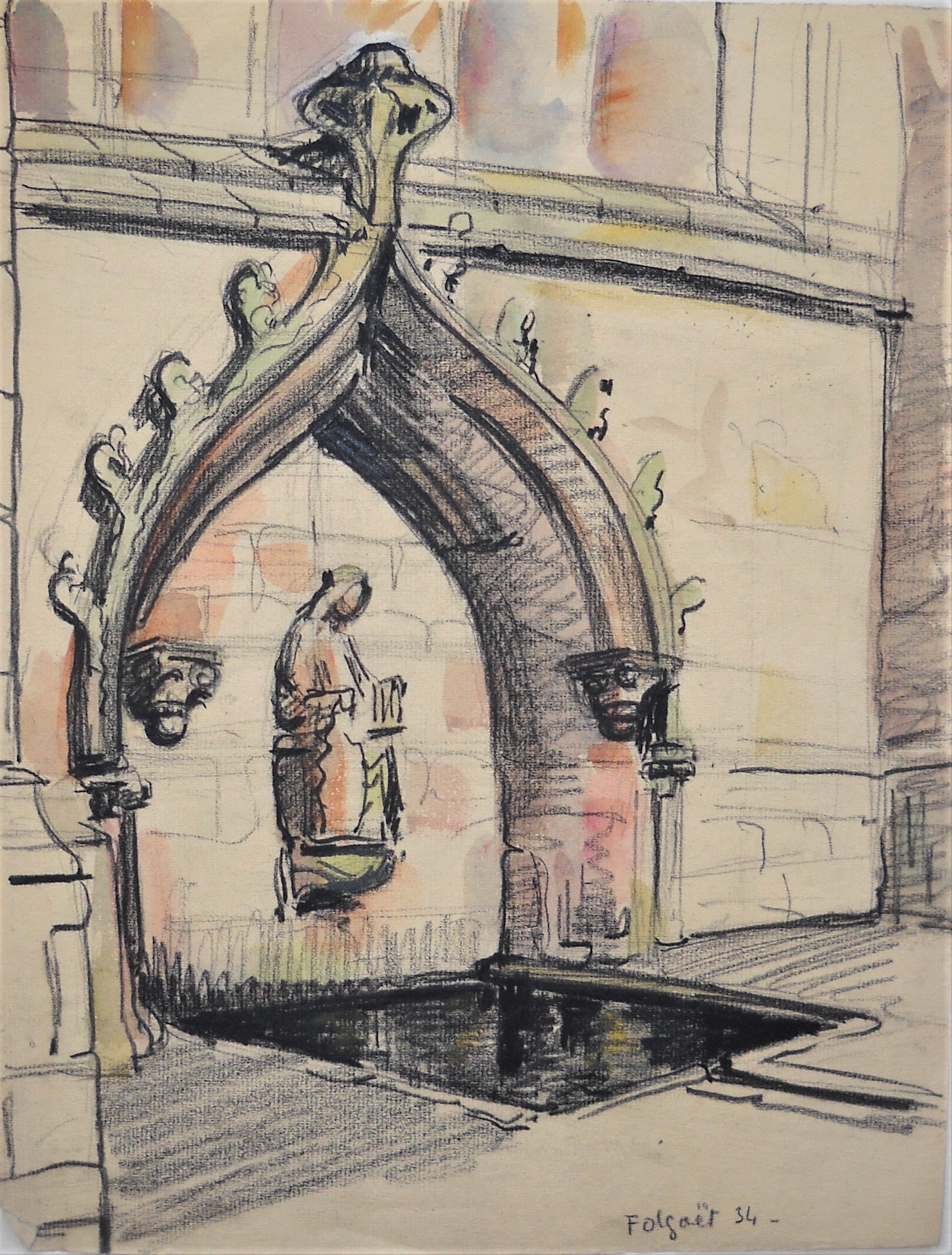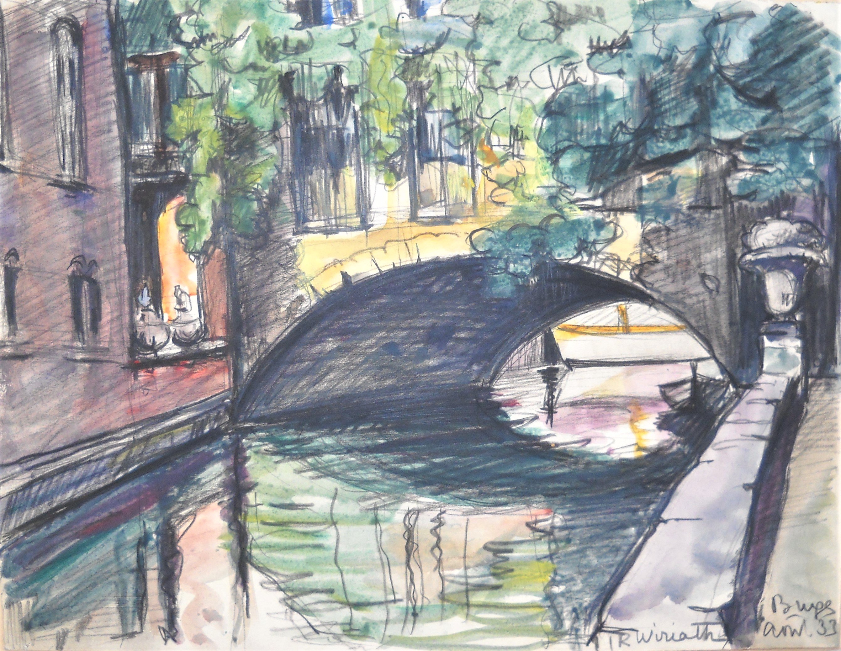 Pont Pietra à Vérone, datée août 1930. Haut. 25, Larg. 32 cm.