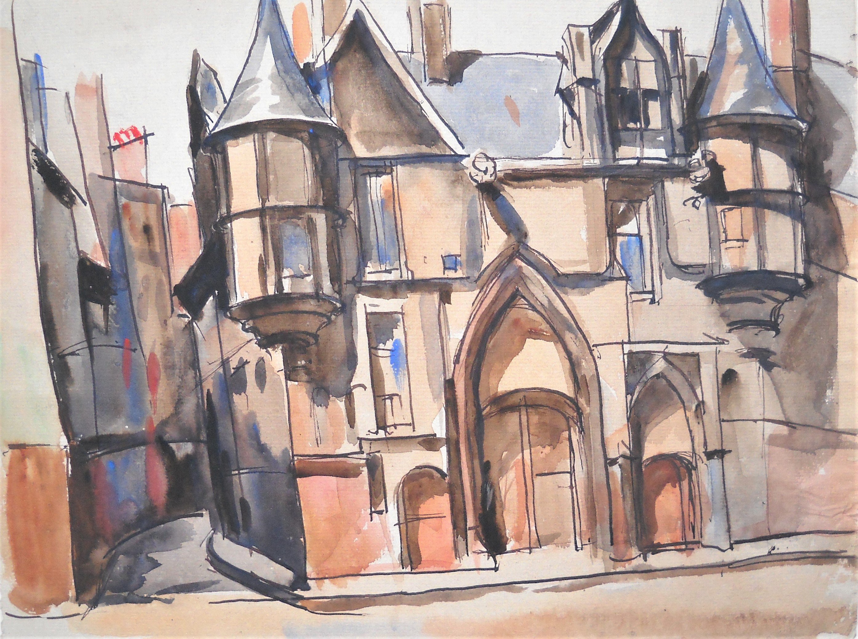 Maison ancienne, aquarelle et encre. Haut. 24, Larg. 31 cm