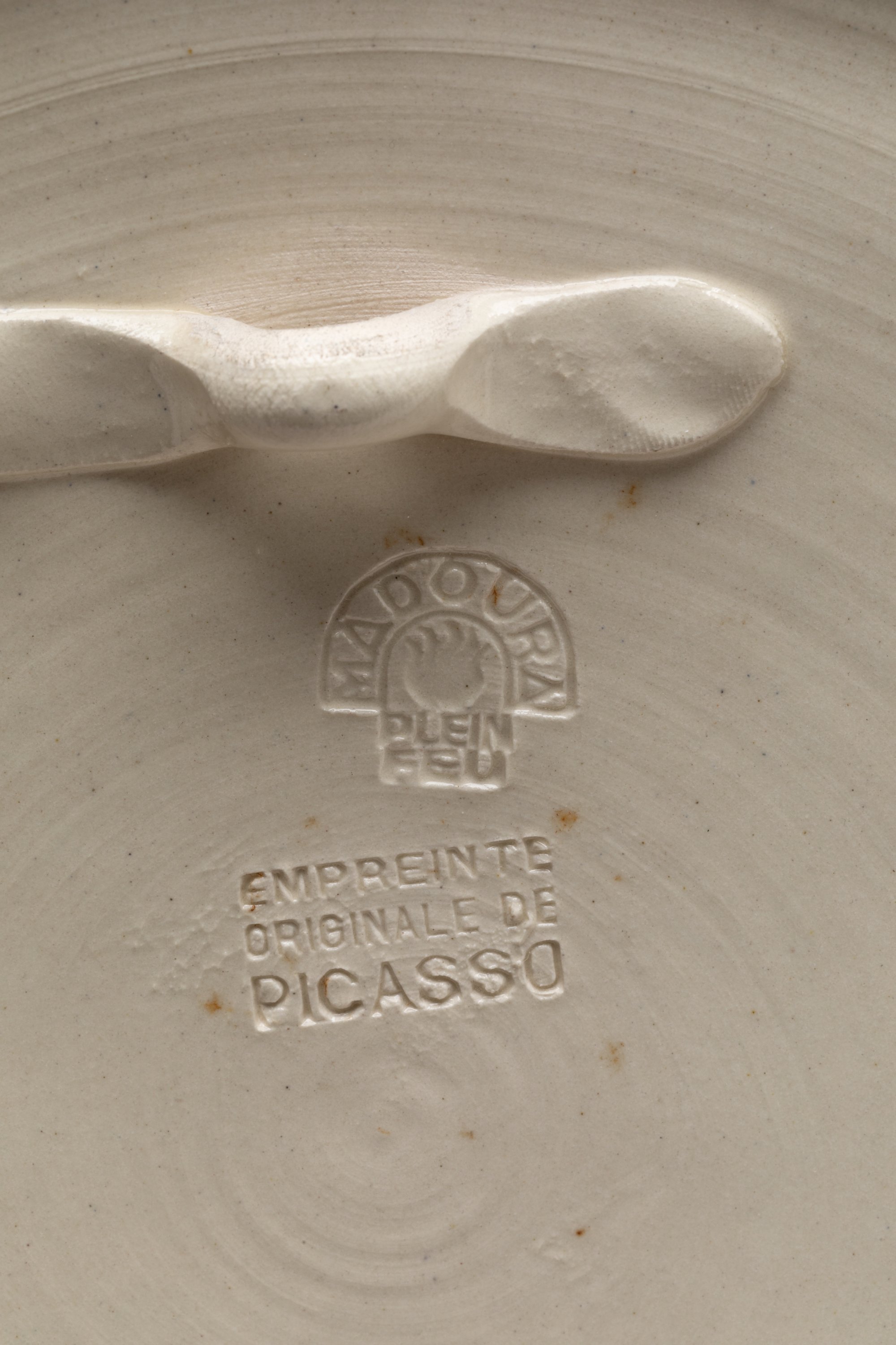 Frappée des cachets en creux : "Madoura plein feu" et "Empreinte originale de Picasso".