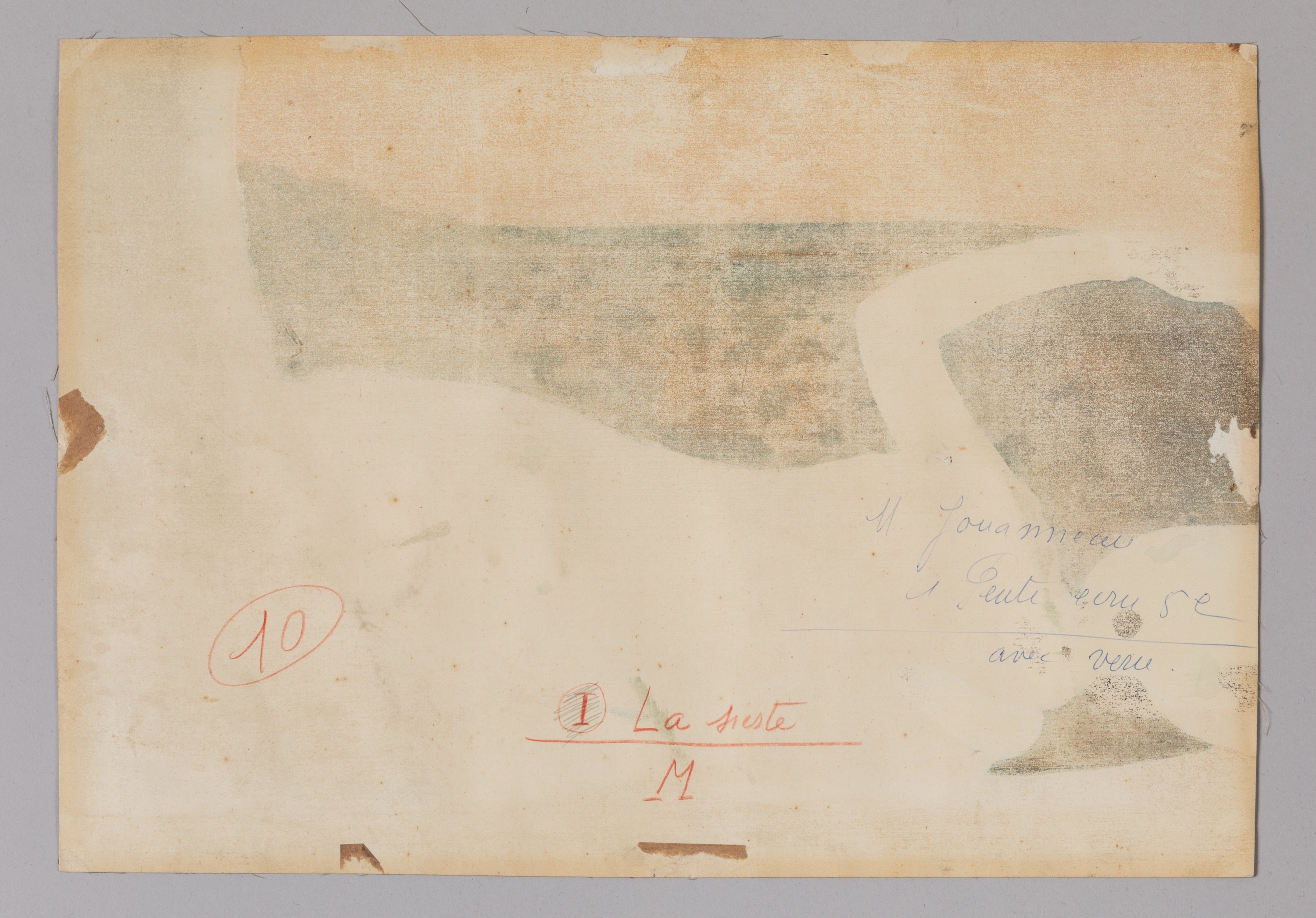 Probablement exposée à Alger, à Paris ou en province dès cette année 1942, La sieste est achetée par un entrepreneur parisien, René Tarrin, associé en 1950 à Gaston Meritte, domicilié 48 rue de l'aviateur Roland Garros à Saigon. Il l’offrira à un jeune collaborateur, dans la descendance duquel elle est restée jusqu'à aujourd'hui. Des indications manuscrites précises quant à l’exigence de l'encadrement portées au dos de la soie, achèvent de conférer à cette image, toujours dans son cadre d’origine, le caractère de l'un des chef-d'œuvres intemporels de l'art de Mai-Thu.