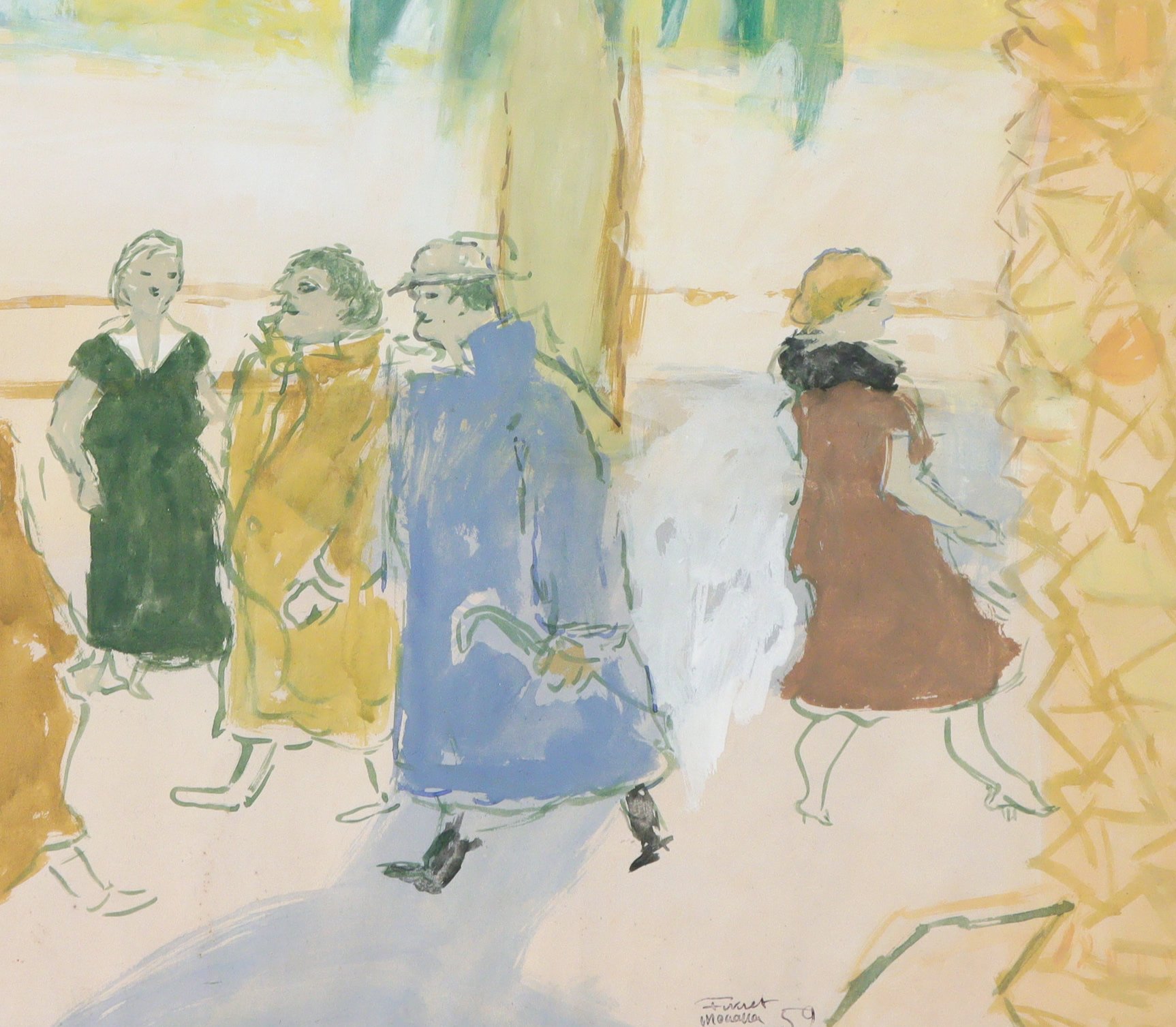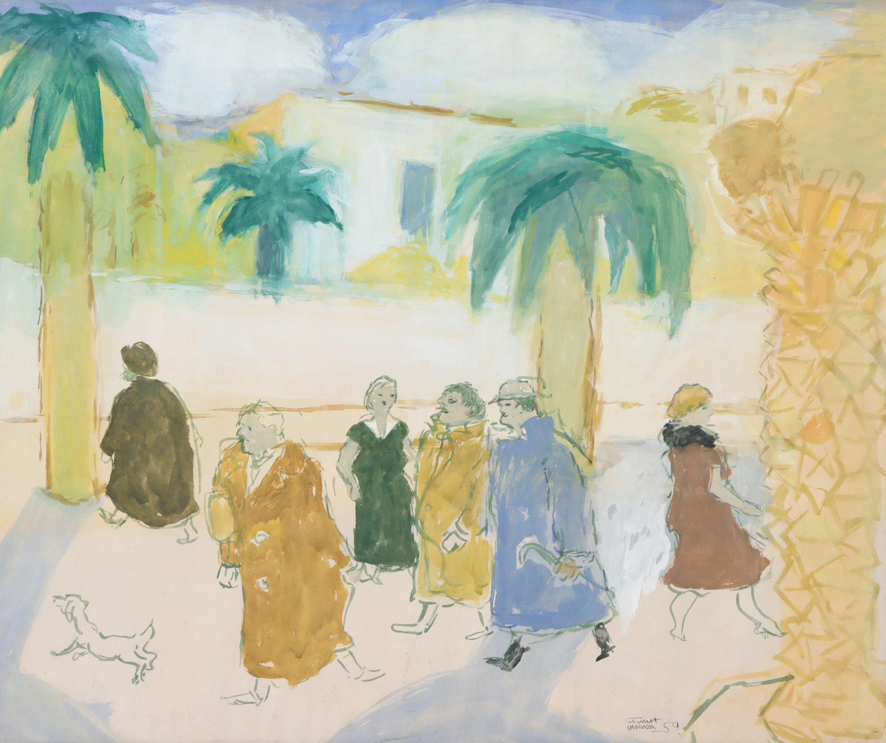 Influencé par les expressionnistes allemands, proche des ateliers dOthon Friesz et dAndré Lhote, Moualla est un inclassable maître de la couleur. Interprète ottoman des avant-gardes parisiennes, lartiste traite un petit nombre de sujets par dinfinies variations. Joueurs de cartes, promenades imaginaires ou réinventée lors dun voyage sur la côte d'Azur, ces quatre uvres issues dune même collection portent sa véhémente passion de la couleur.