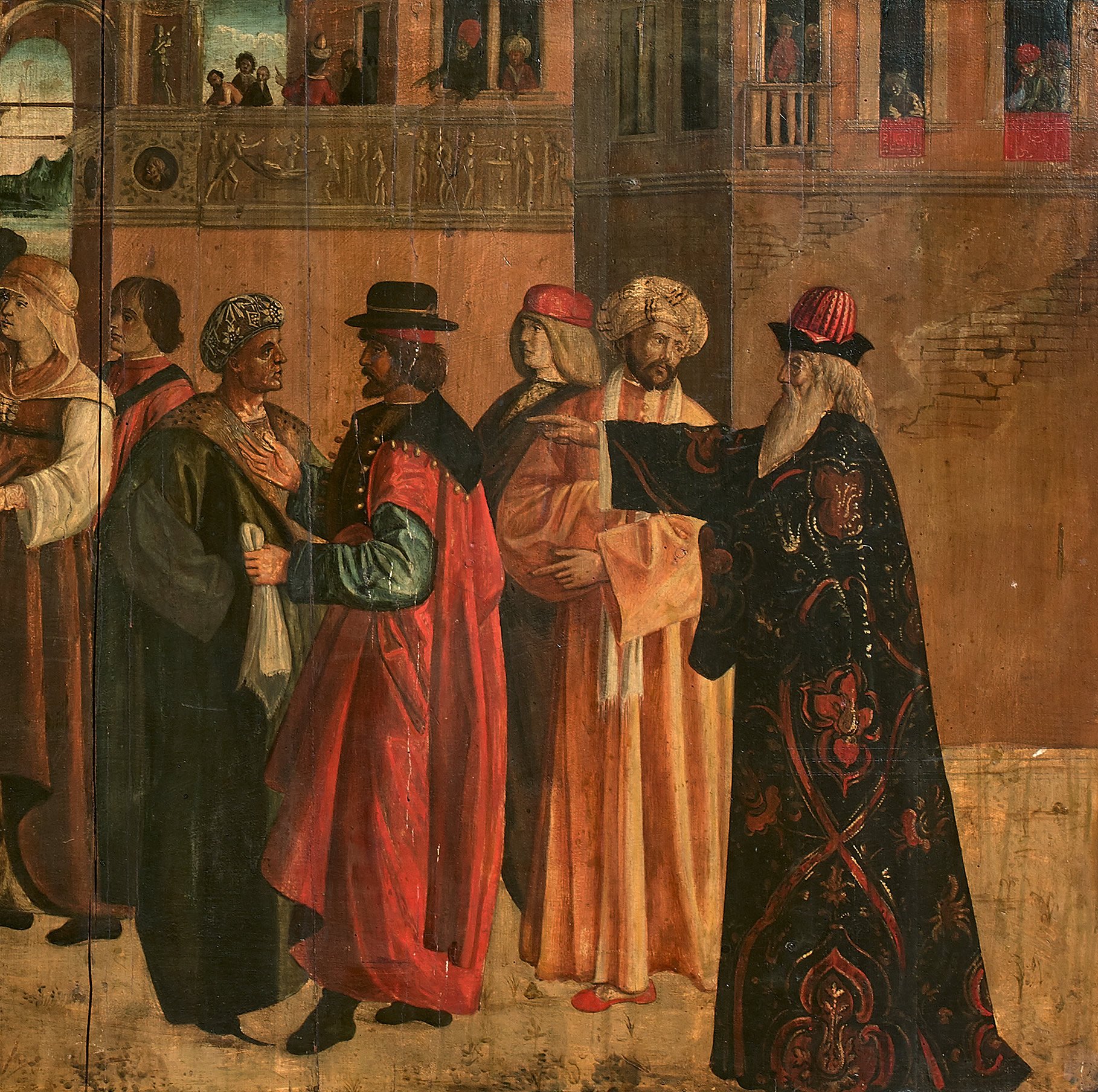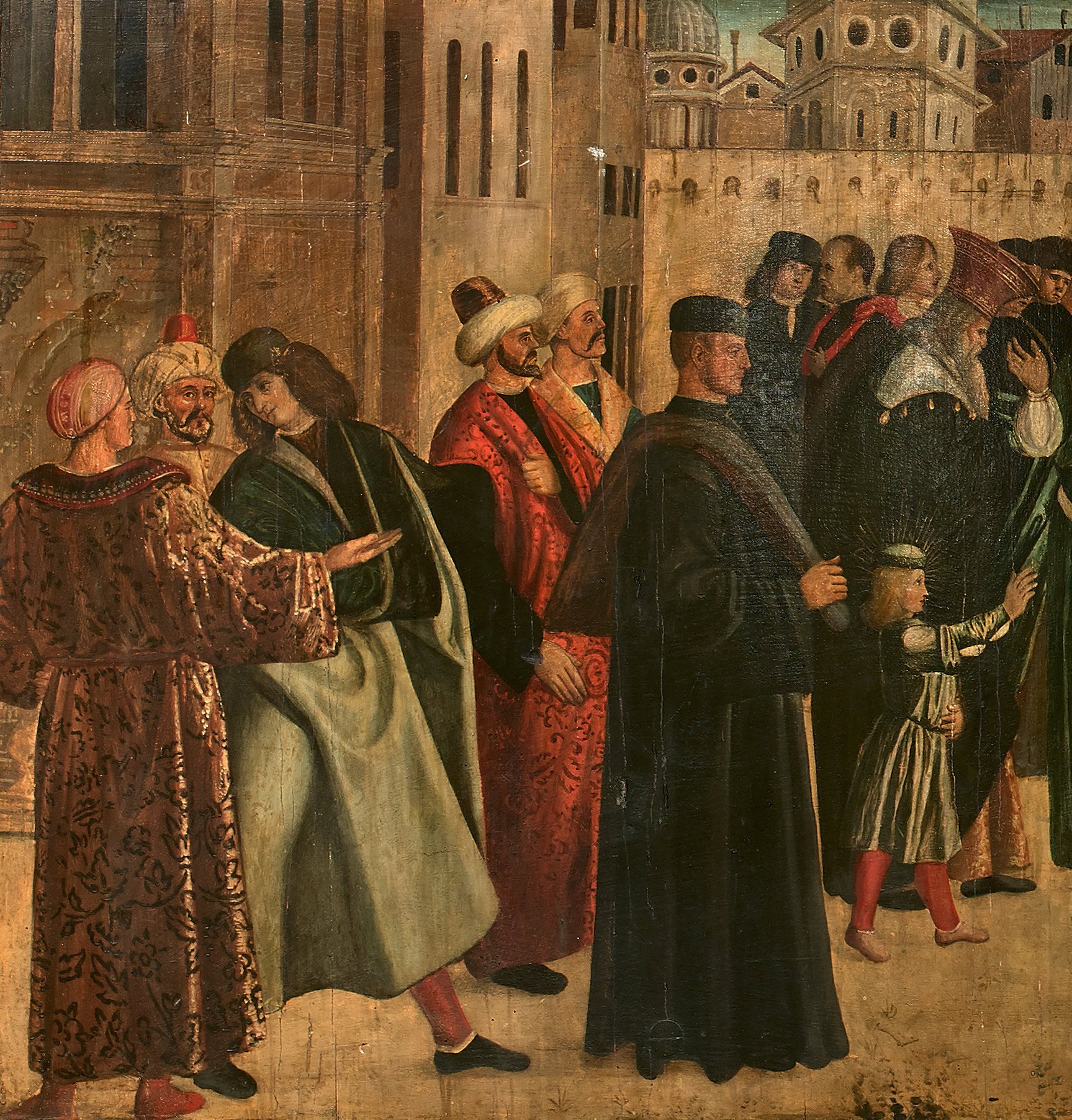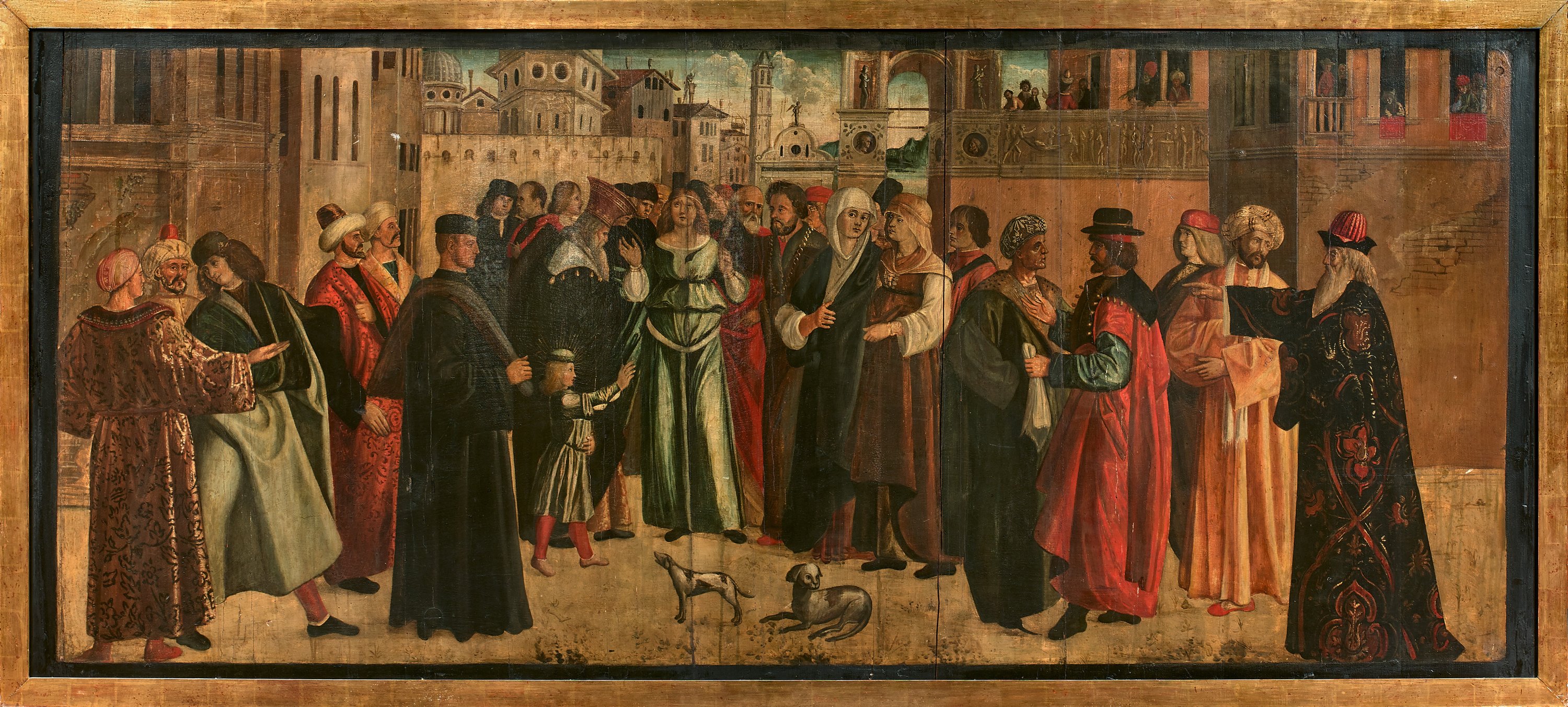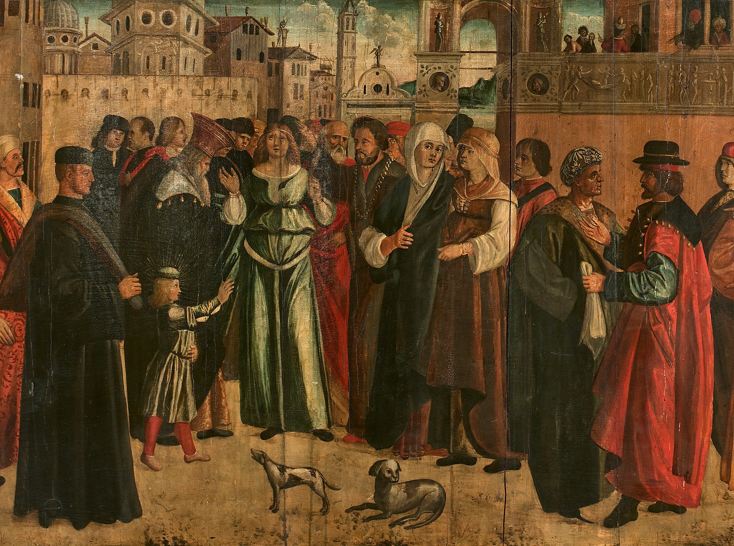 Saint Tryphon exorcises the Emperor's daughter. Panel by the Venetian school around 1510, after the work by Vittore Carpaccio for the Scuola di San Giorgio degli Schiavoni.