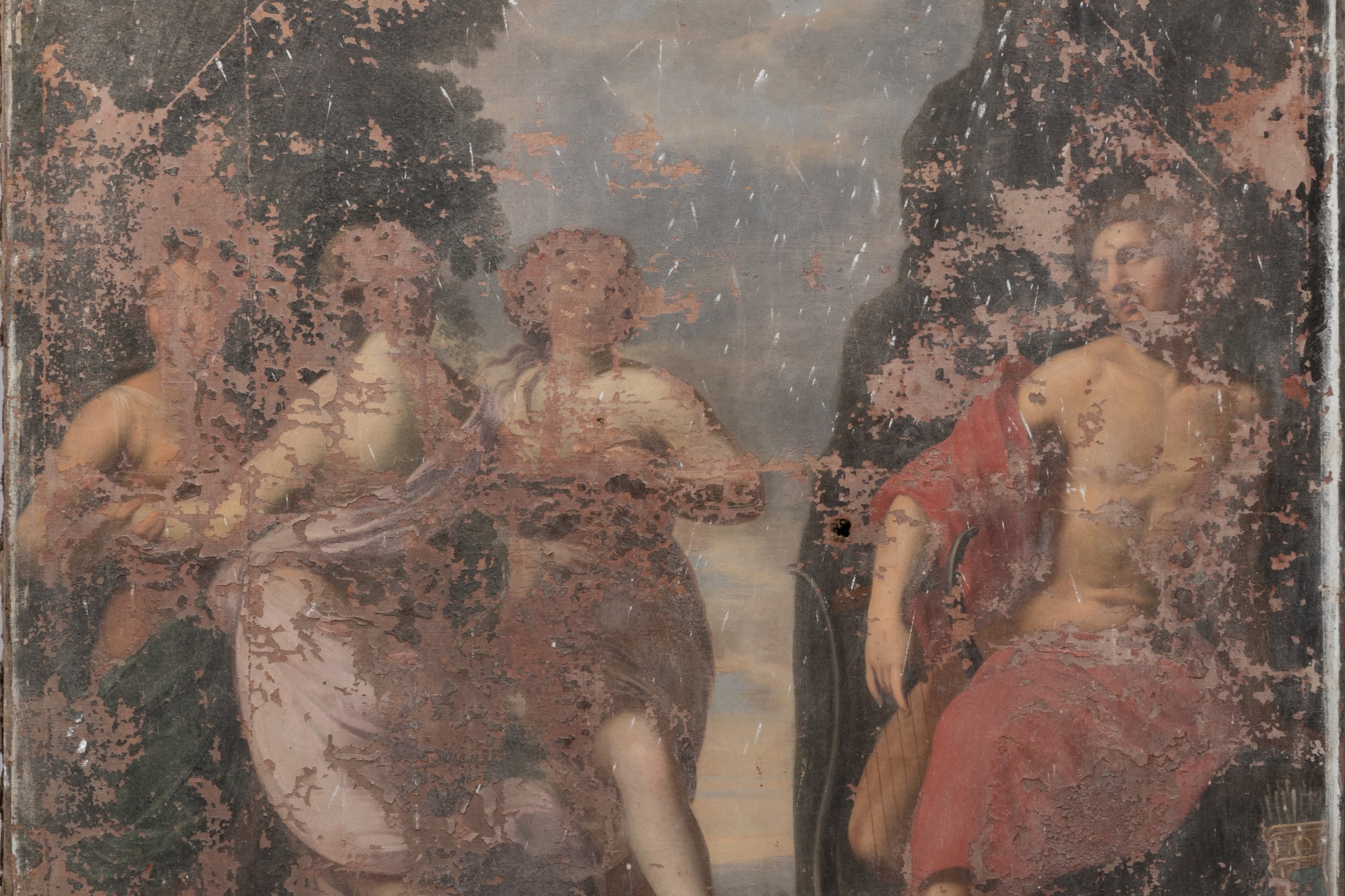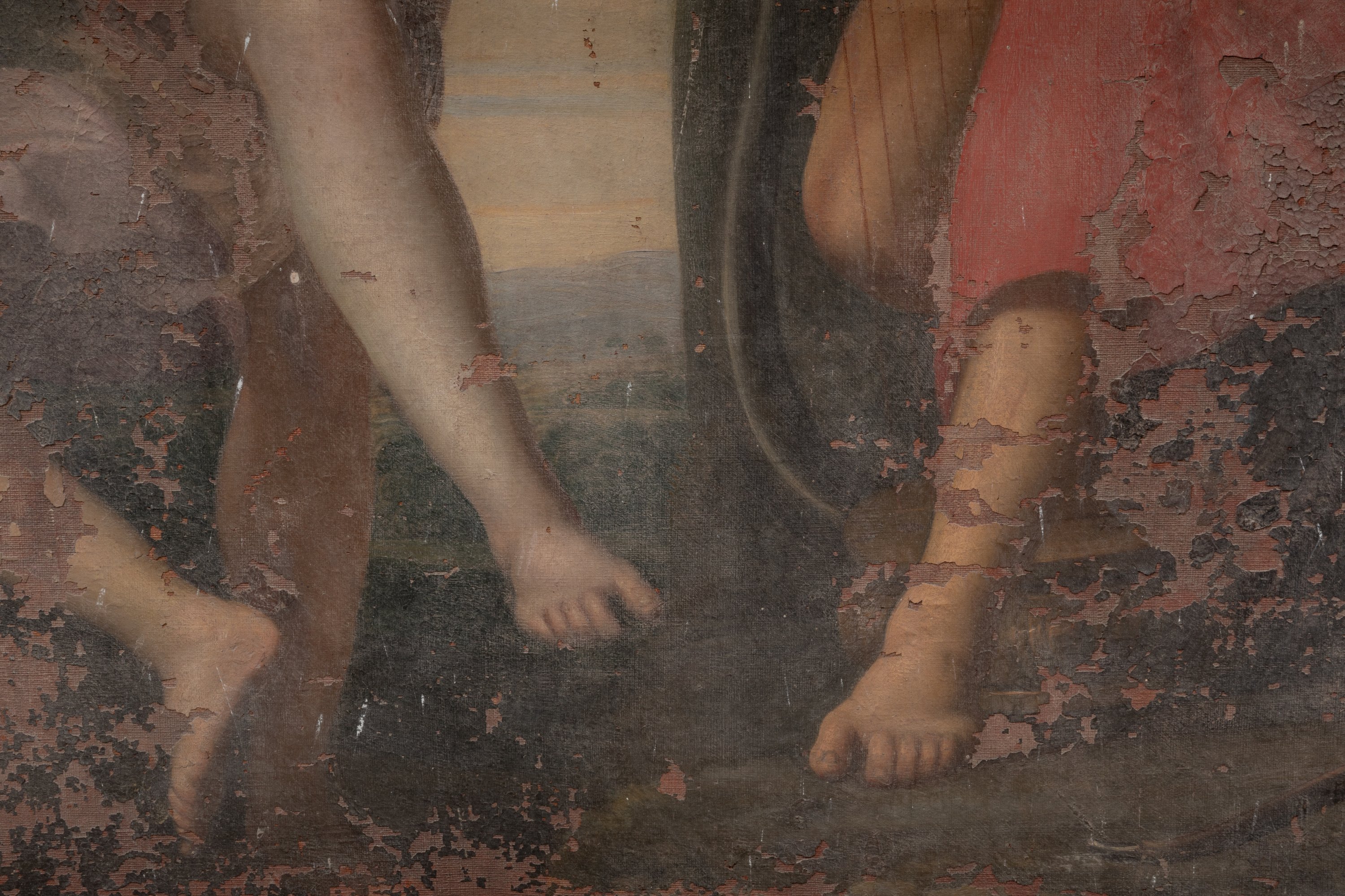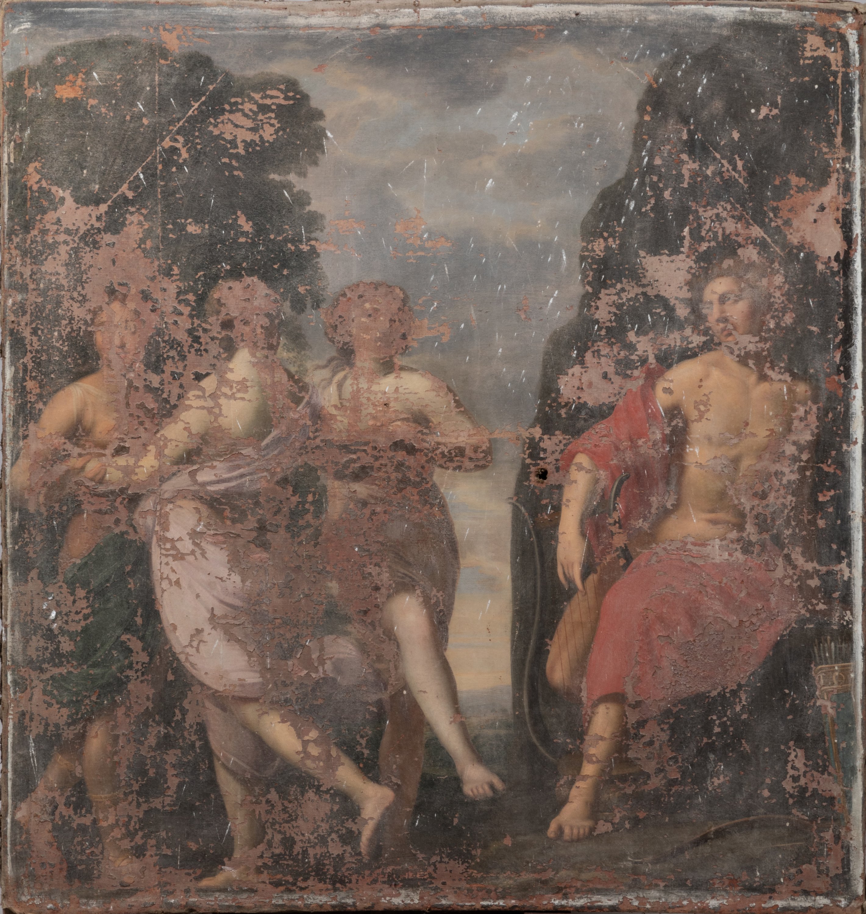 A painting by Mosnier depicting Apollo presiding over the Muses's dance. Canvas.