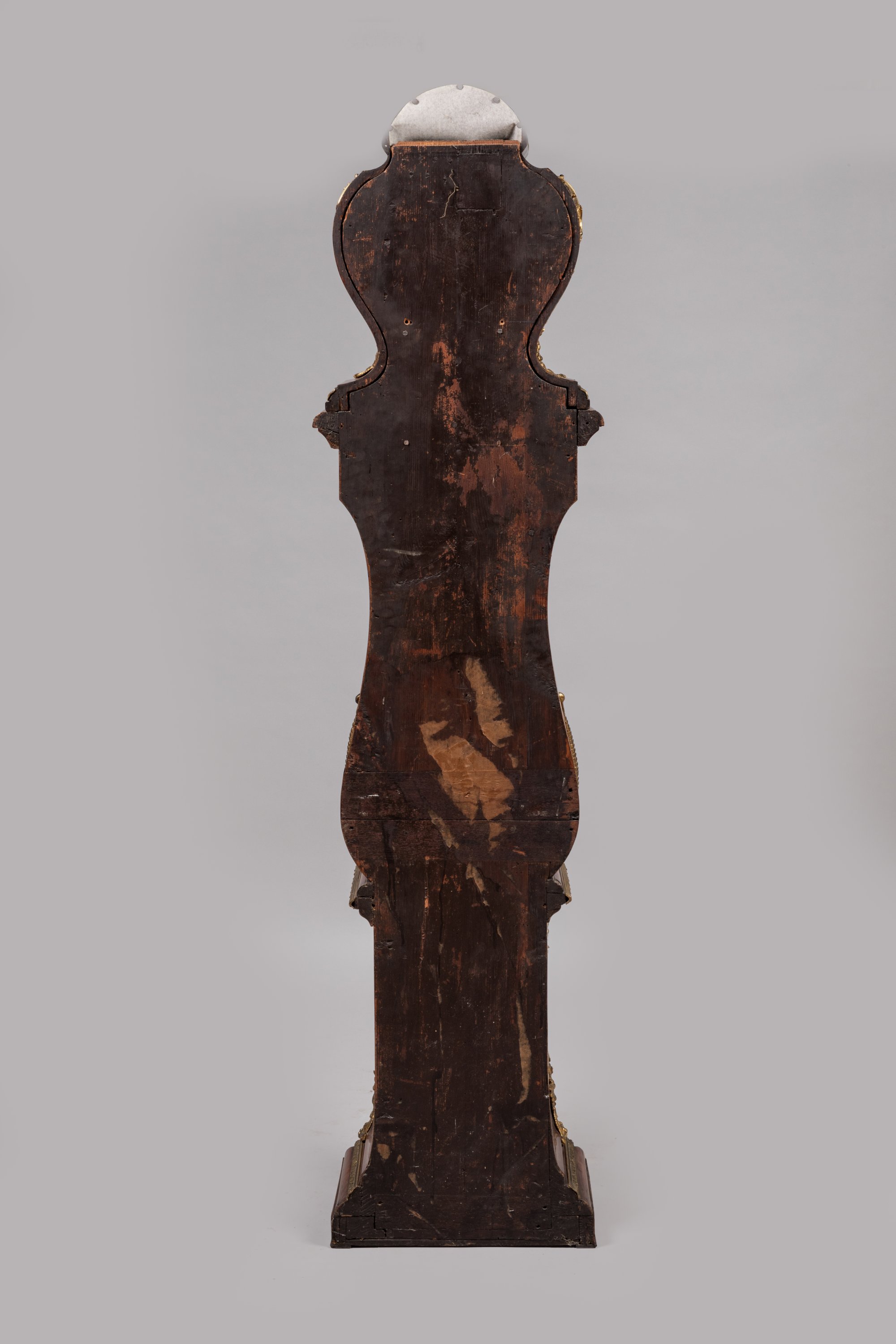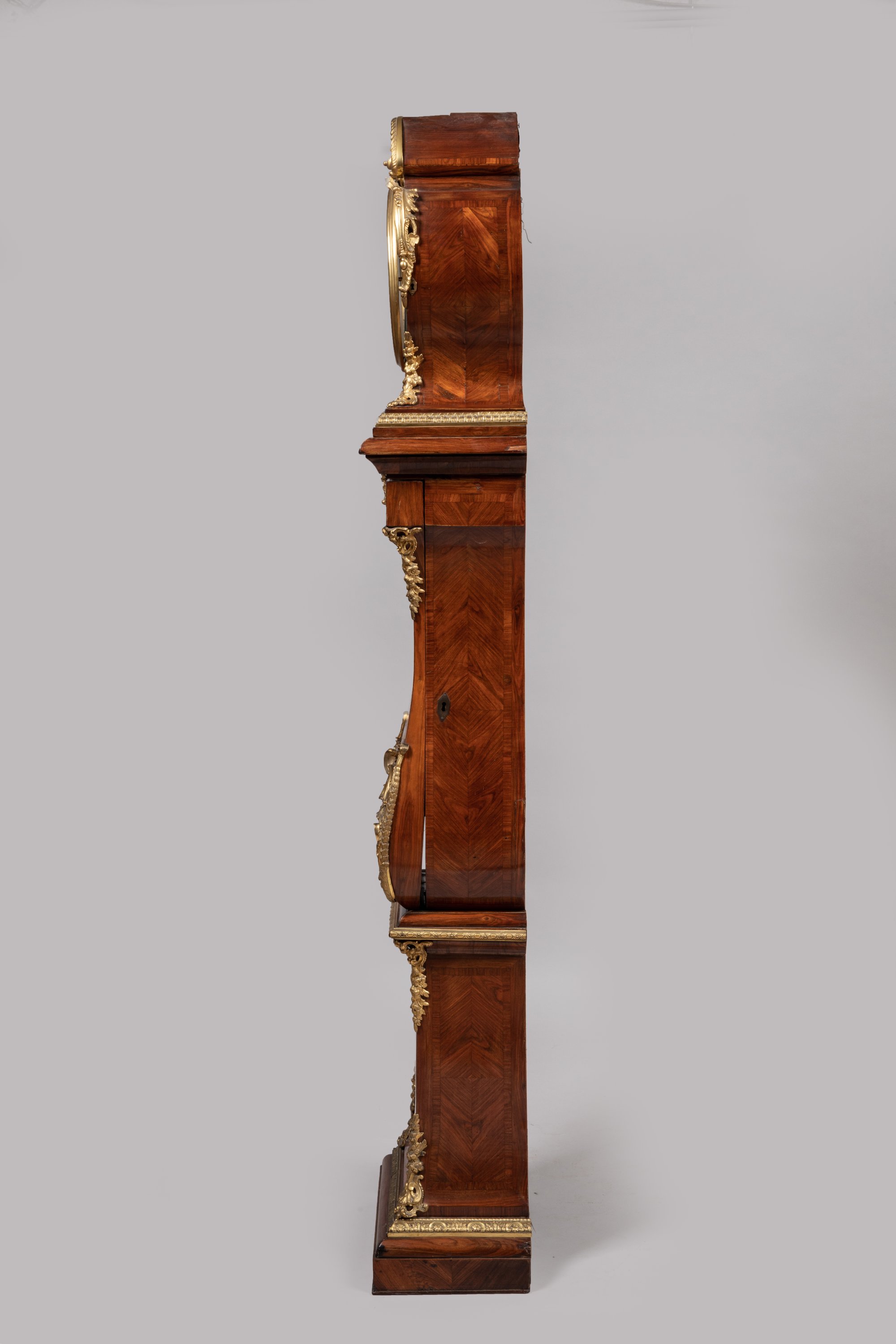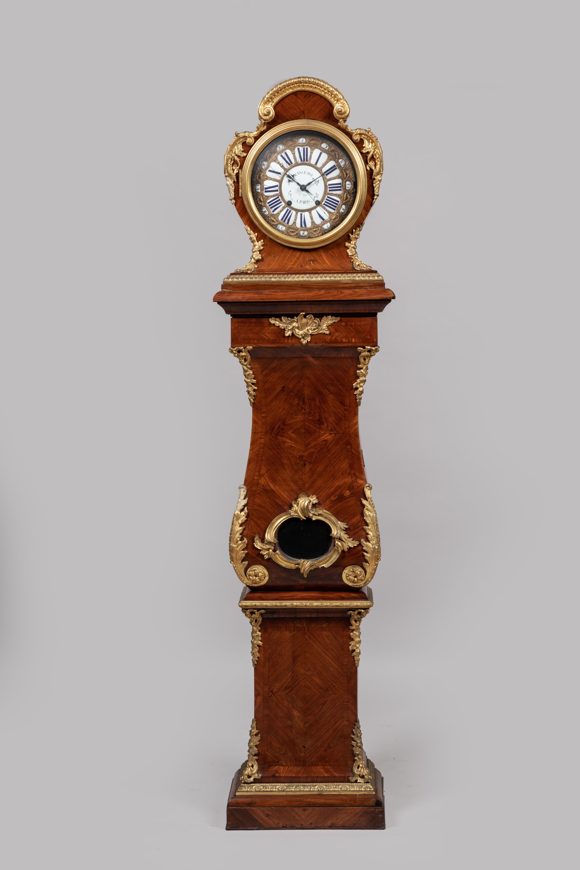 A Regency period dragon floor clock. Violet veneer case with a bronze clock movement signed "Mangeant N° 297 A Paris" (master clockmaker in 1734).