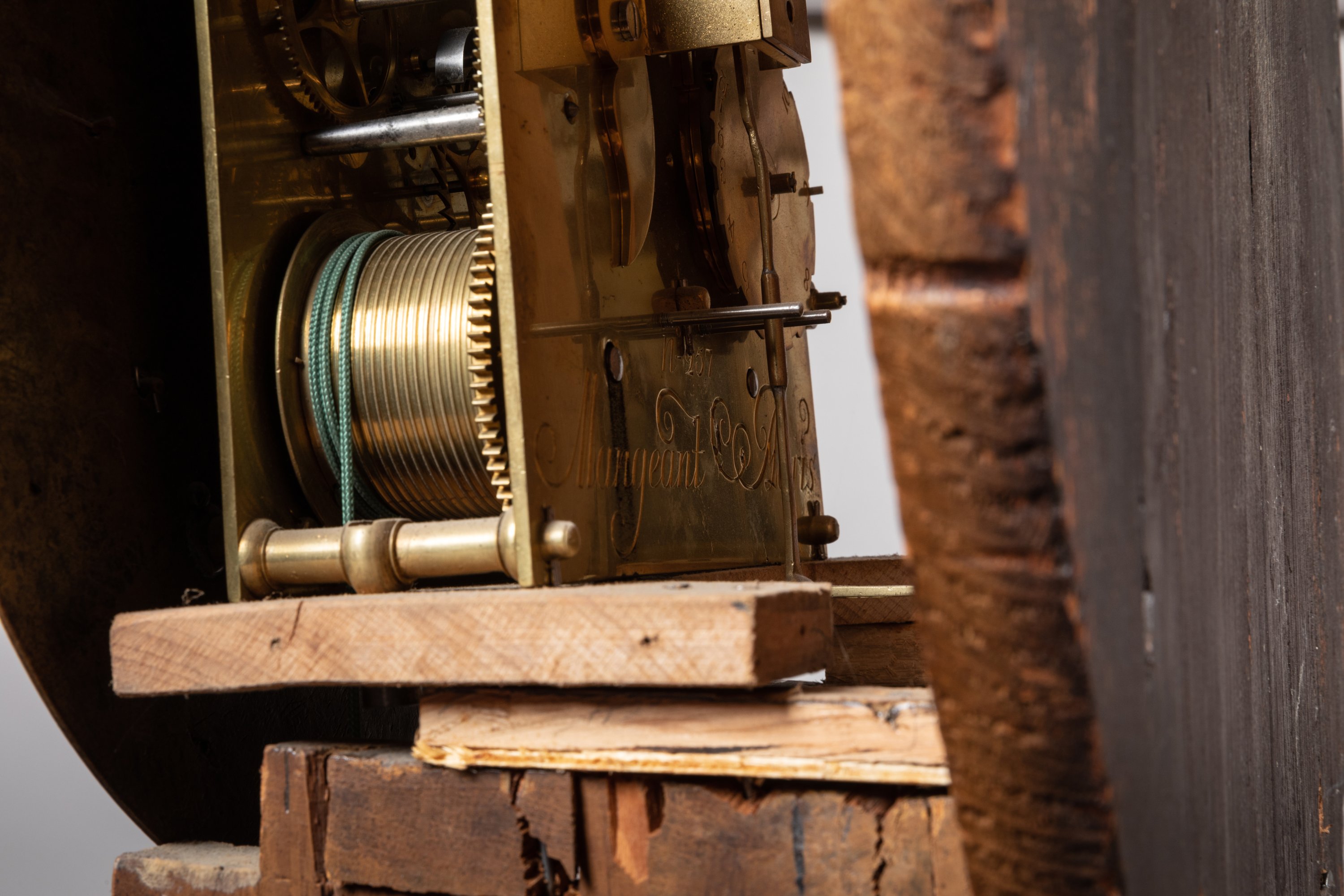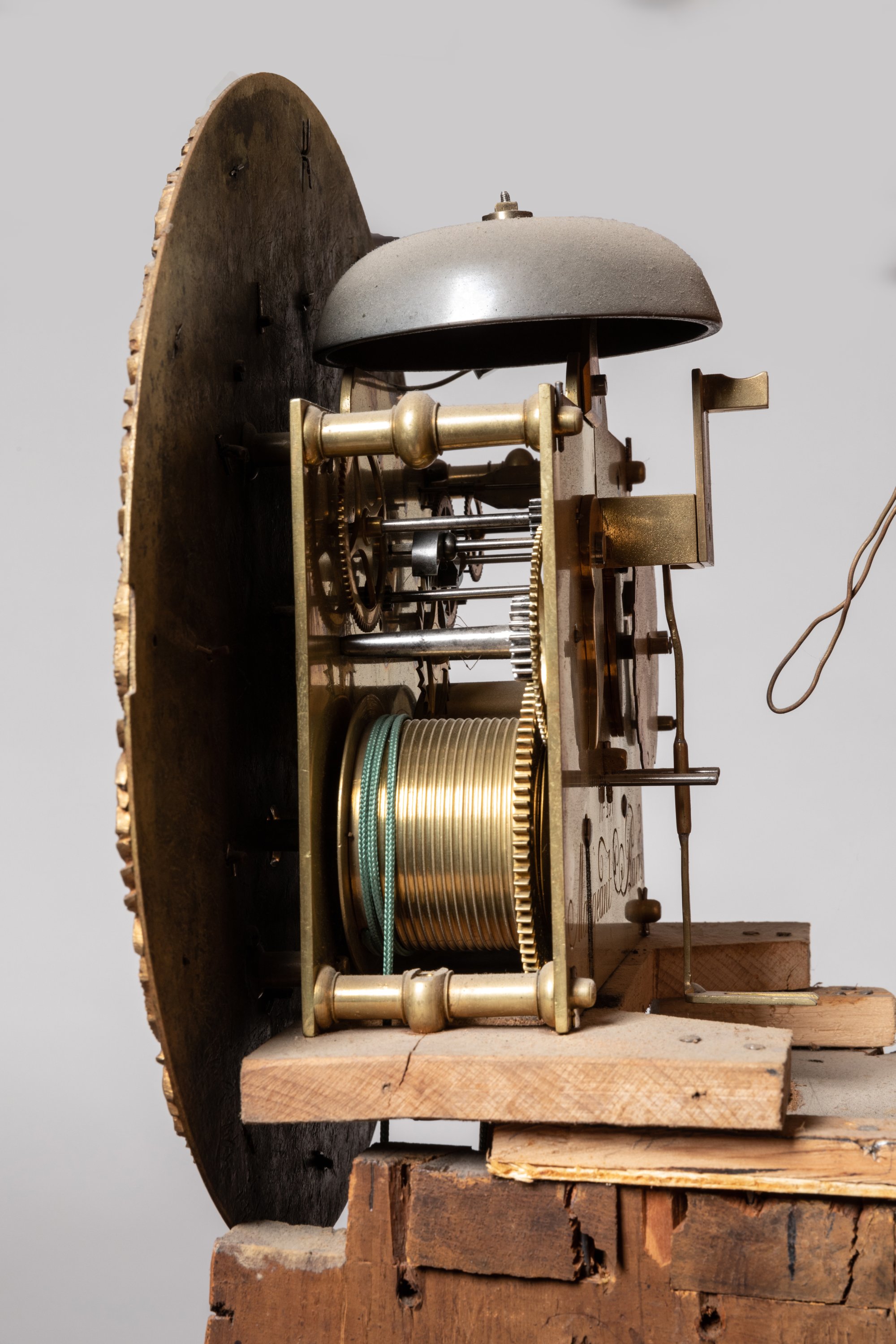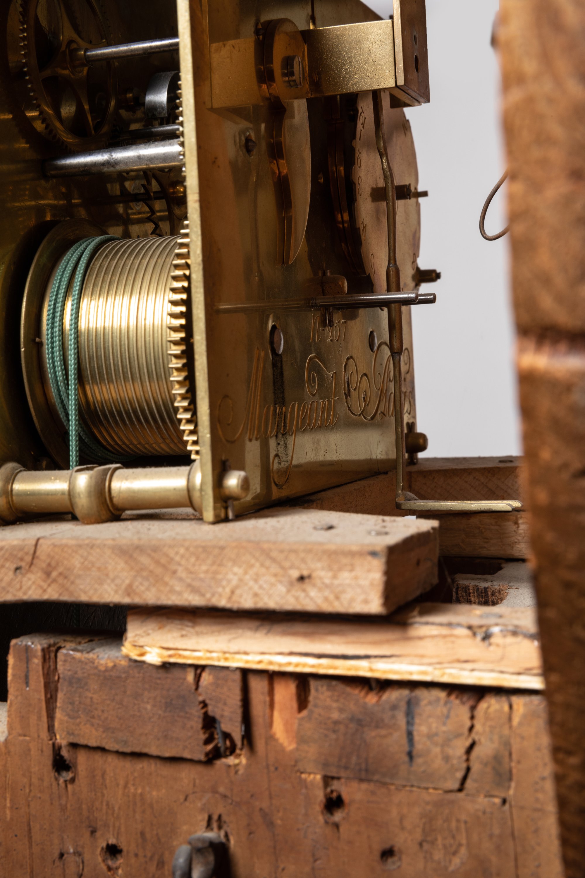 A Regency period dragon floor clock. Violet veneer case with a bronze clock movement signed "Mangeant N° 297 A Paris" (master clockmaker in 1734).