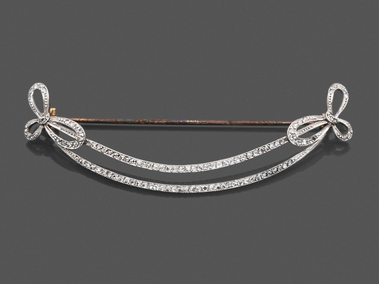 en ors deux tons 750 millièmes décorée de deux nuds reliés entièrement sertis de diamants taillés en rose.