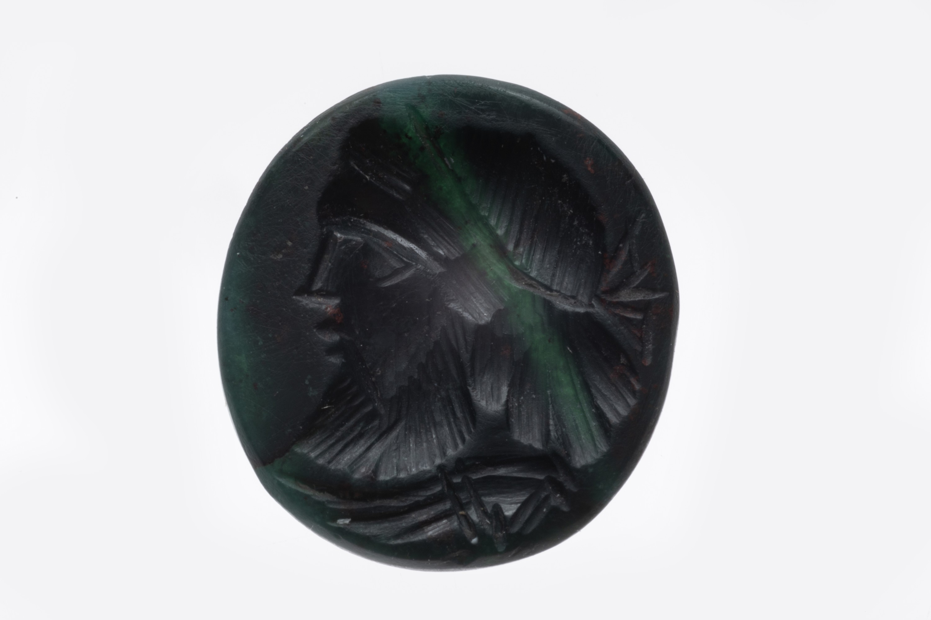 A Roman green jasper intaglio depicting Jupiter looking to the left.