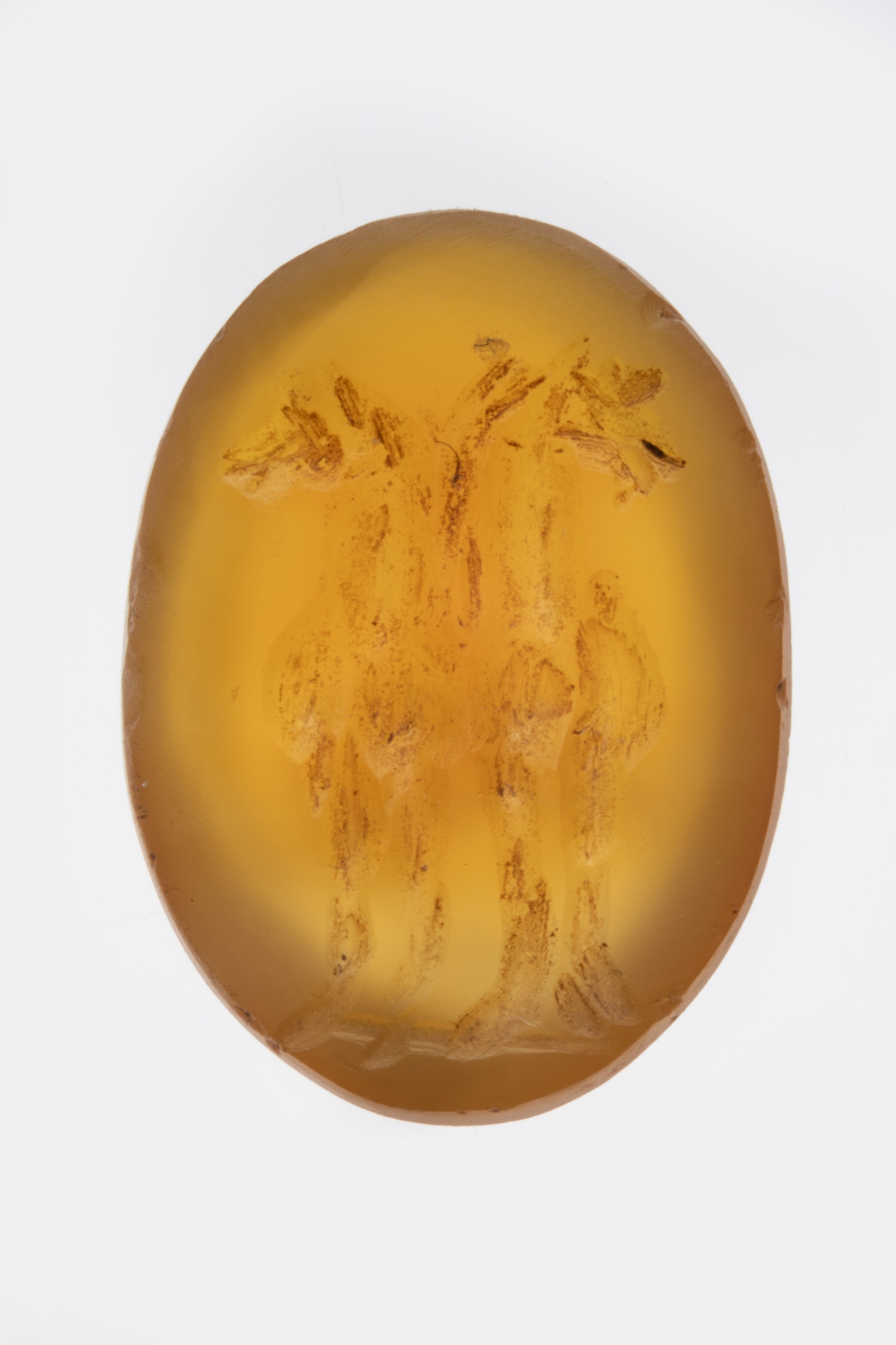 PÉRIODE ROMAINE Intaille représentant deux chevaux accolés, de face. Cornaline...