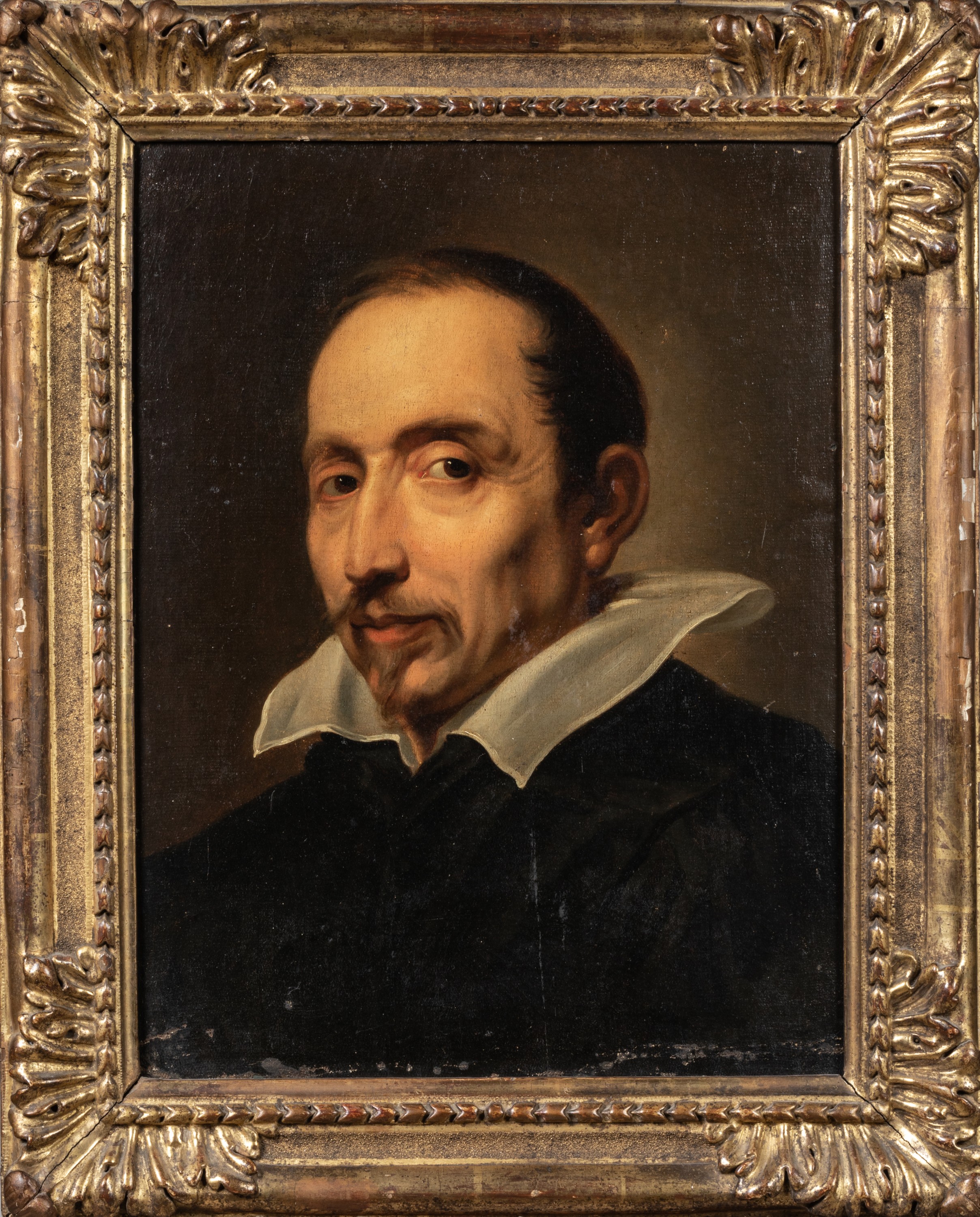 A portrait of a man with white collar by one of Anton van Dyck's followers. Panel painting. Ca. 1800.