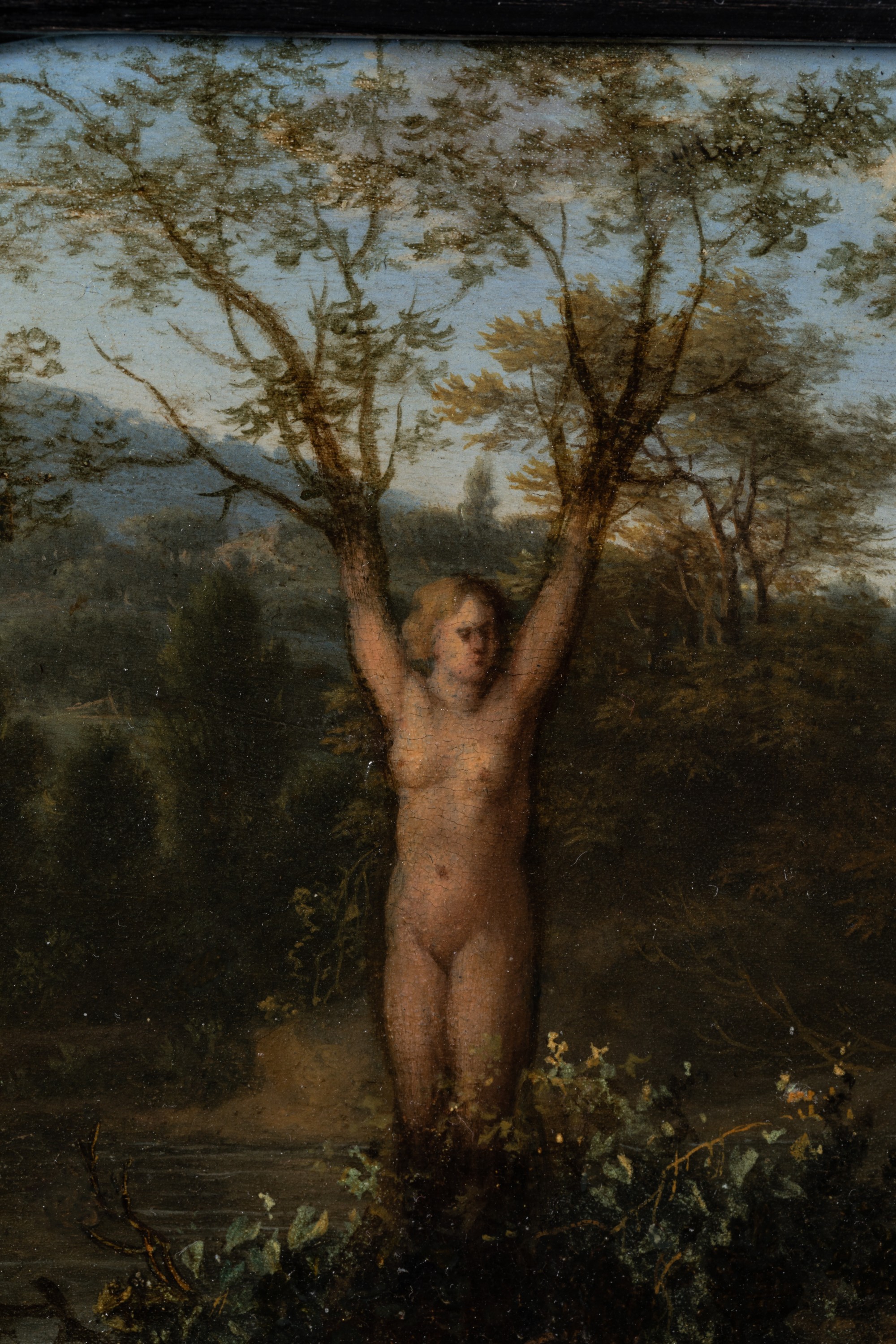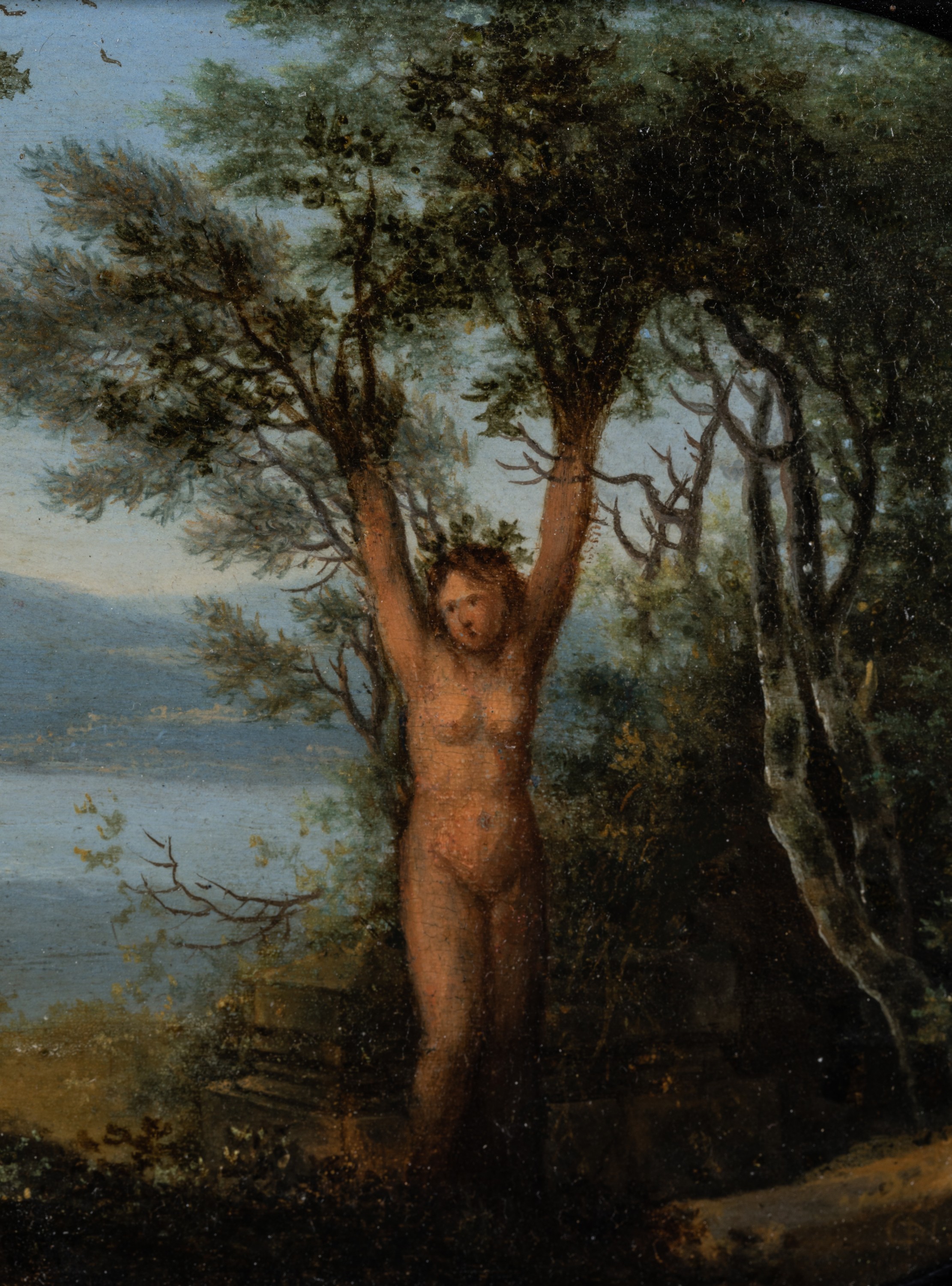 A painting by Cornelis van Poelenburgh depicting the myth of Daphne. Copper.