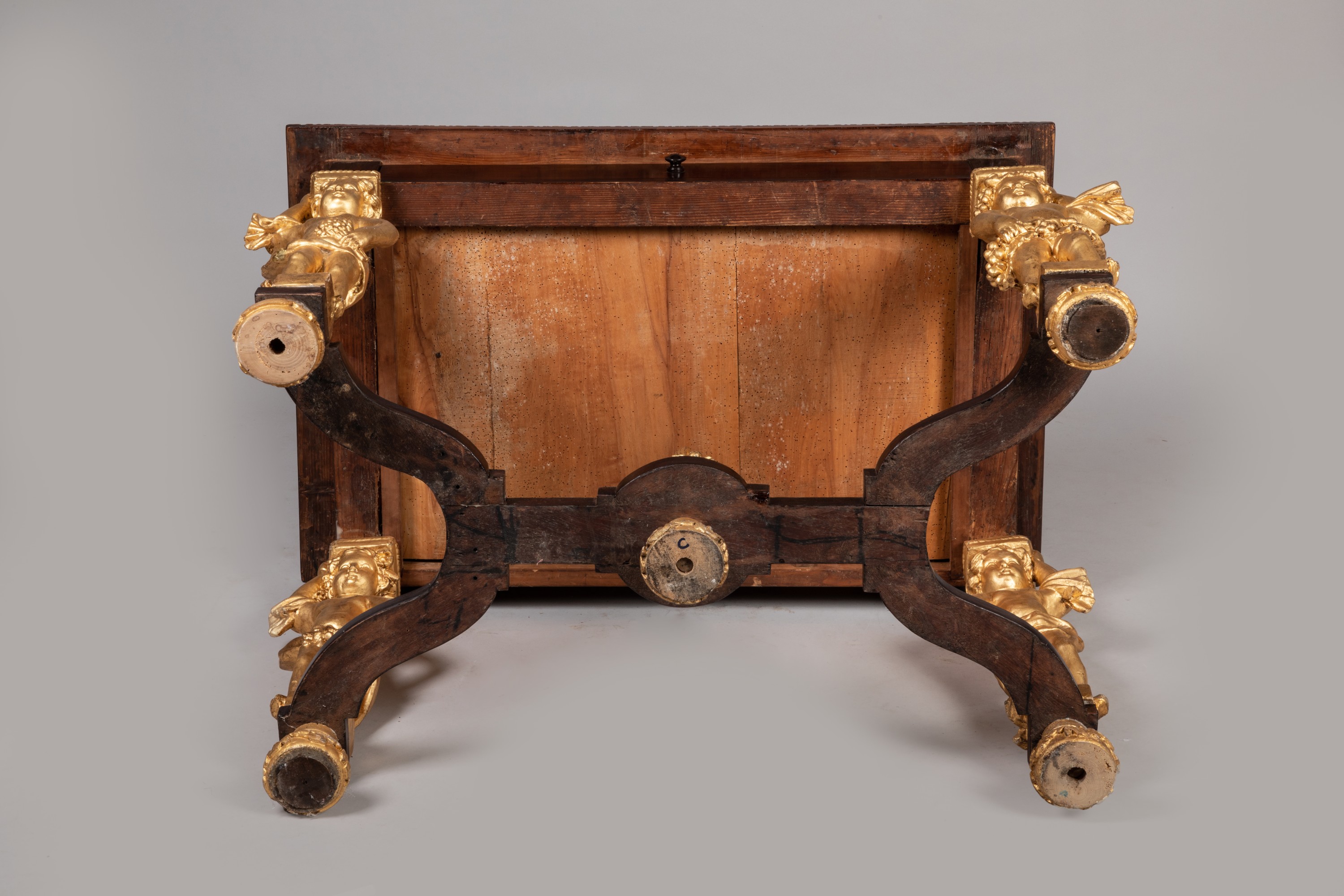 Il est probable que lors dune restauration les putti à l'arrière ont été remontés pour former cette table en console, soit les quatre putti visibles que dune seule face.