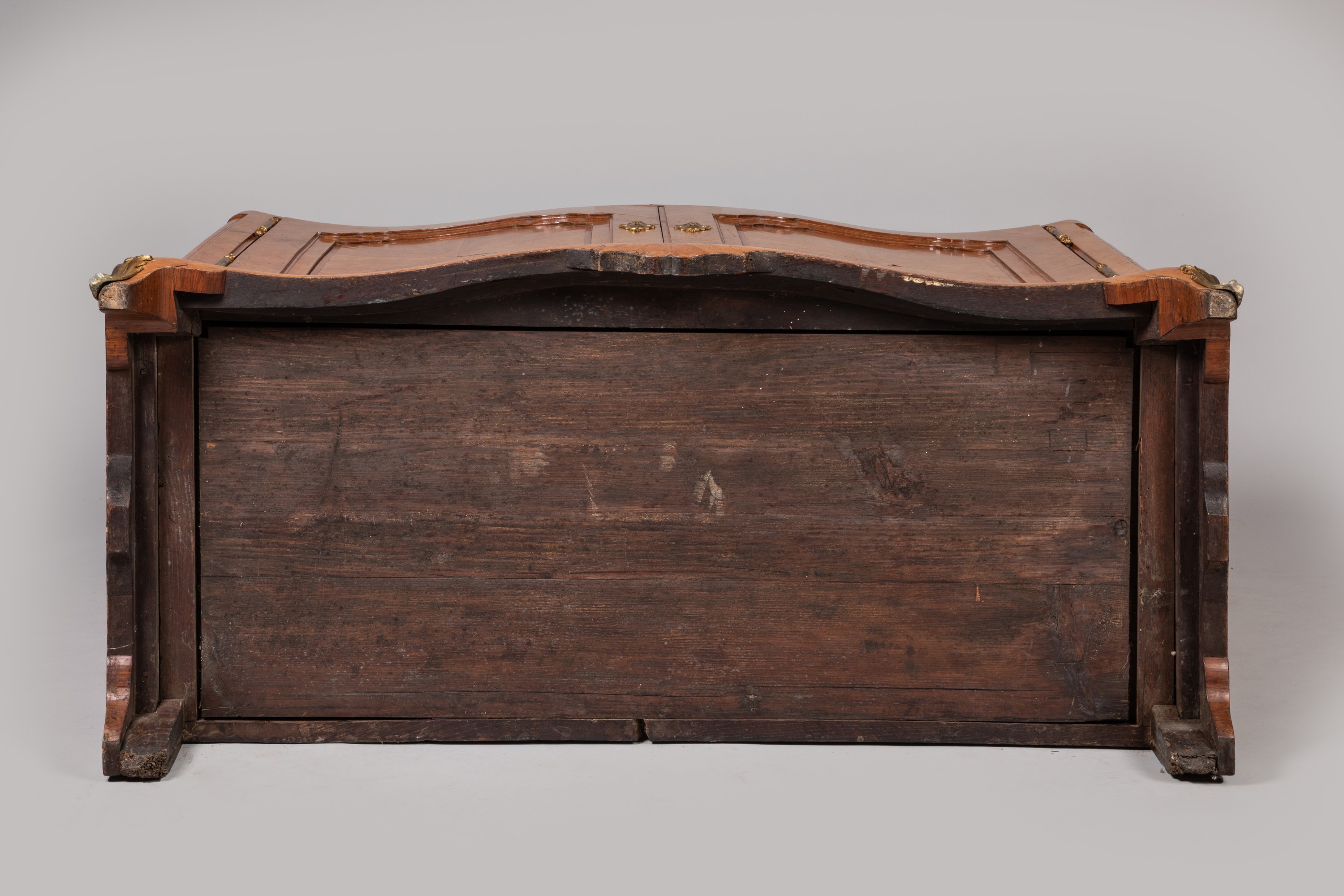 Ornementation postérieure de bronzes ciselés et dorés : fiches, entrées de serrure moulurées à oves et sabots.
