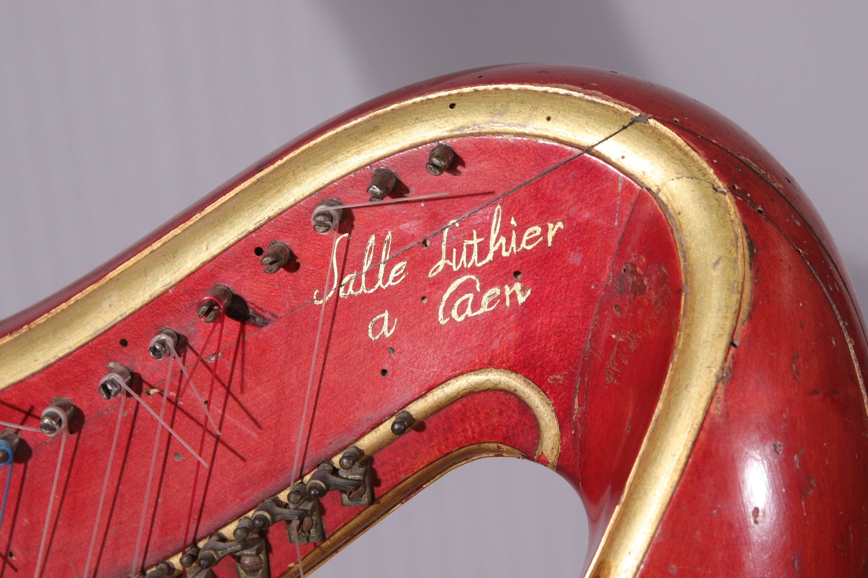 Red lacquered wood harp from the Empire period, by Pierre Salle luthier in Caen.