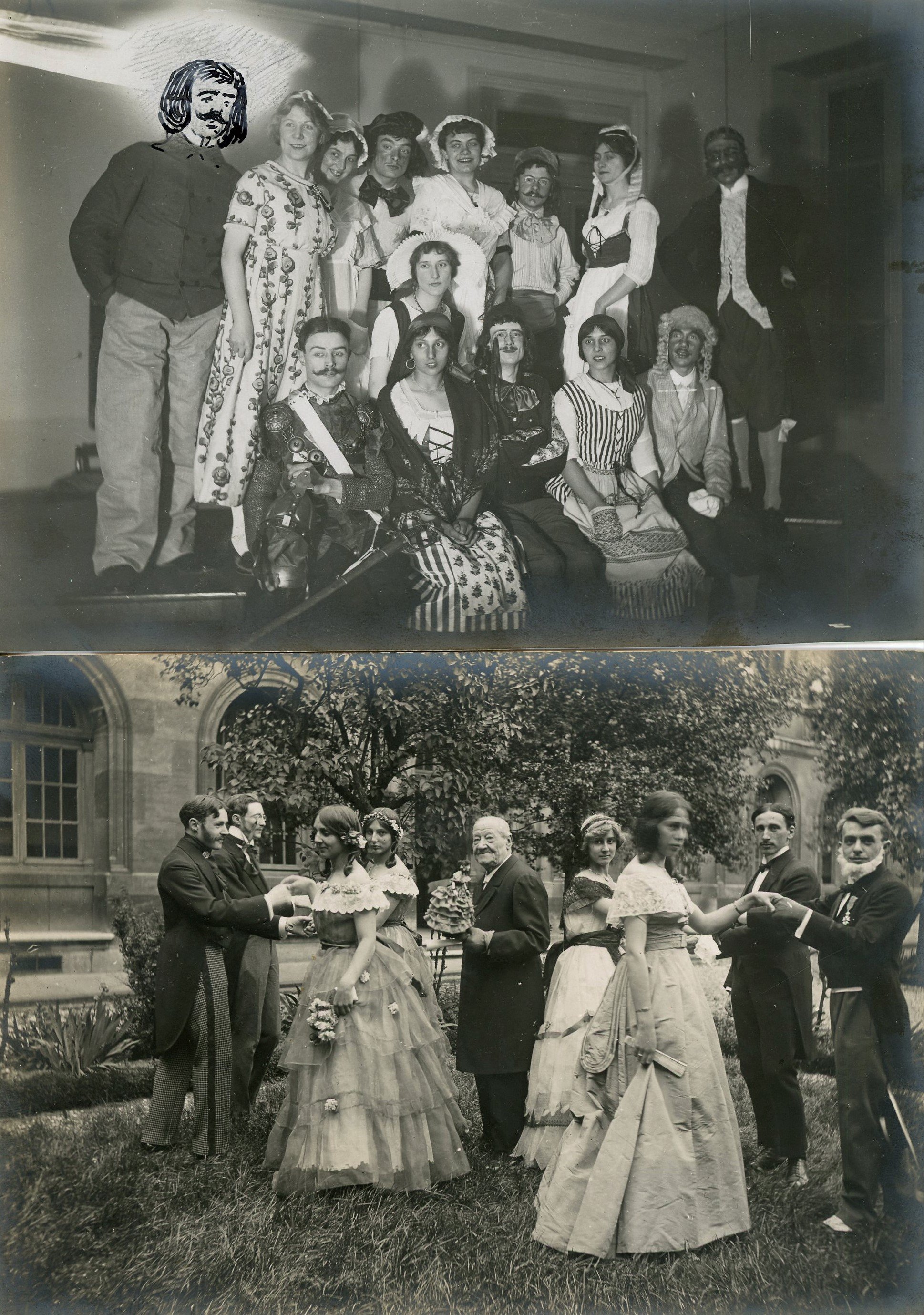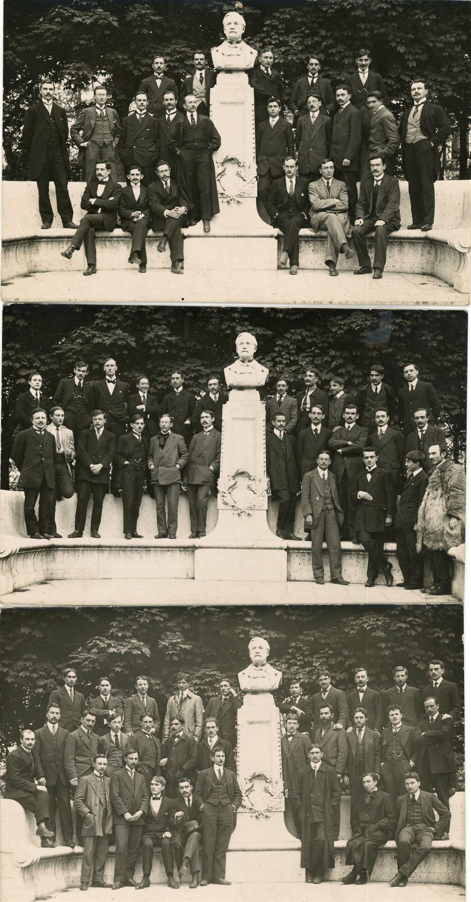 - 10 photos de groupes d'élèves de 1913 (sortie à Combault, l'Oeil Crevé, le quadrille français avec le père Fisher) ;