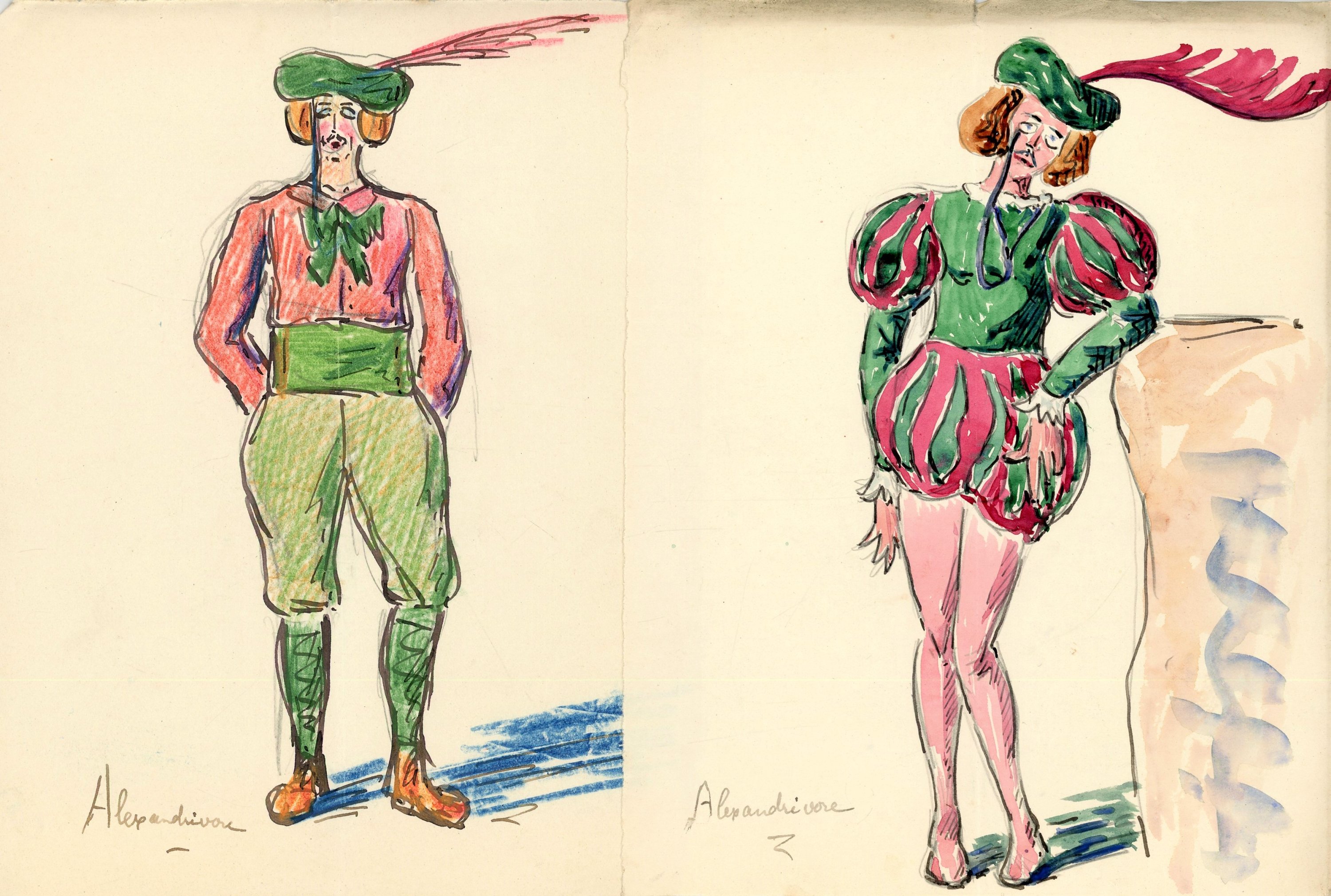 - Représentations théâtrales «L'Oeil crevé» : brouillons manuscrits des textes à réciter, programme, listes de répartition des rôles, croquis des costumes, etc ; plusieurs programmes de représentations festives ;