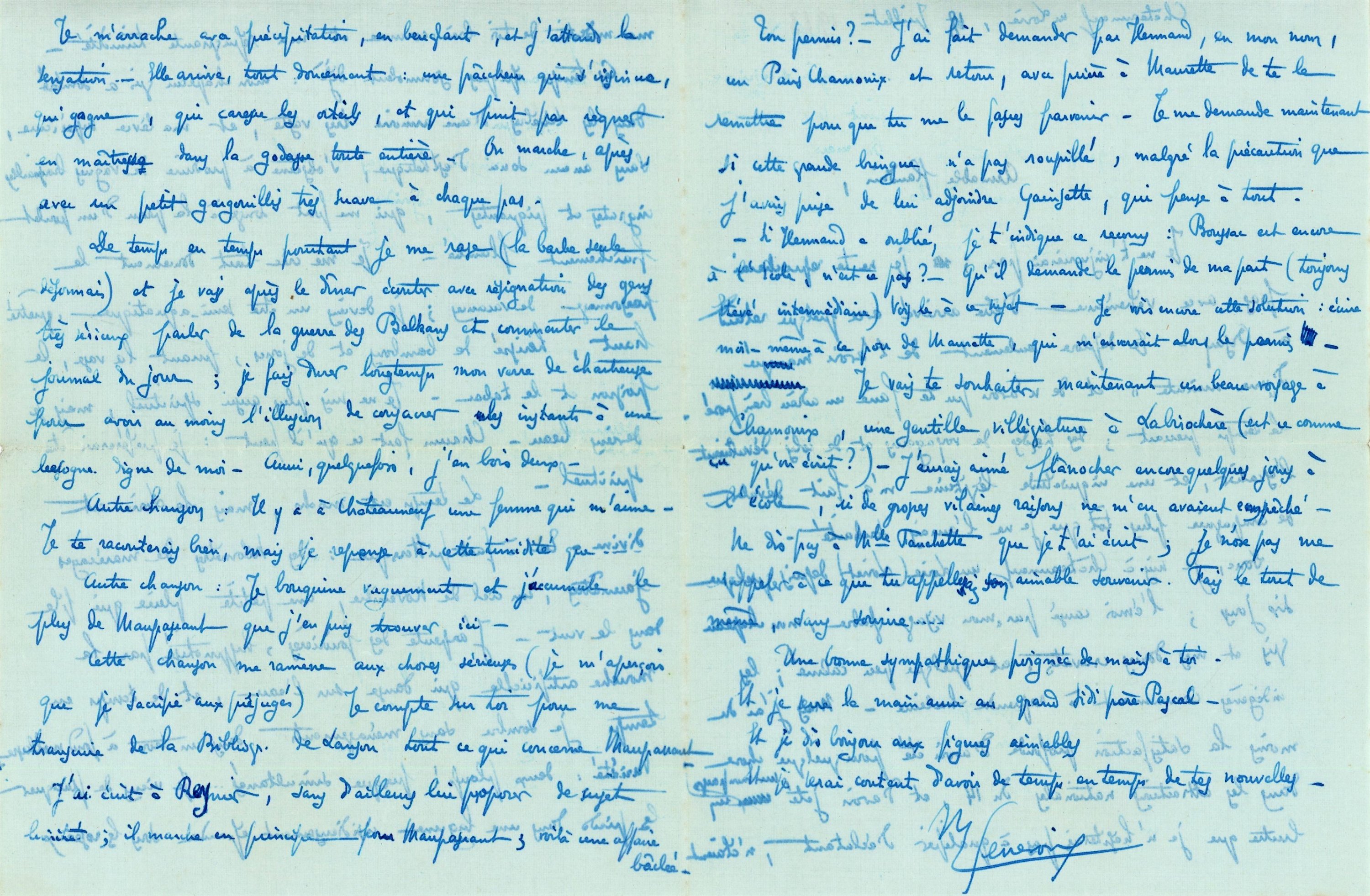 2 L.A.S., 4 P.A.S. et carte de visite avec envoi manuscrit, 1913-1958 ; dont belle et rare lettre du jeune écrivain en herbe, amoureux de son terroir ligérien.