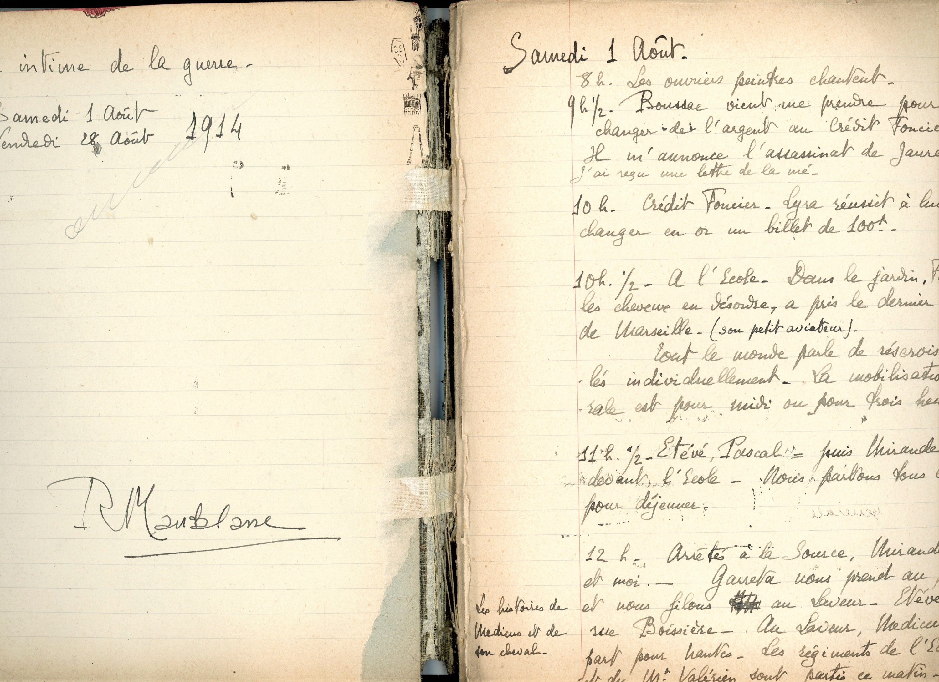 - «Journal intime de la guerre», manuscrits sous forme de cahier de 60 ff. et plusieurs dizaines de feuillets volants dans lesquels René Maublanc relate, du 1er août jusqu'au mois d'octobre 1914, de façon détaillée, son emploi du temps, témoigne de son vécu au jour le jour ;