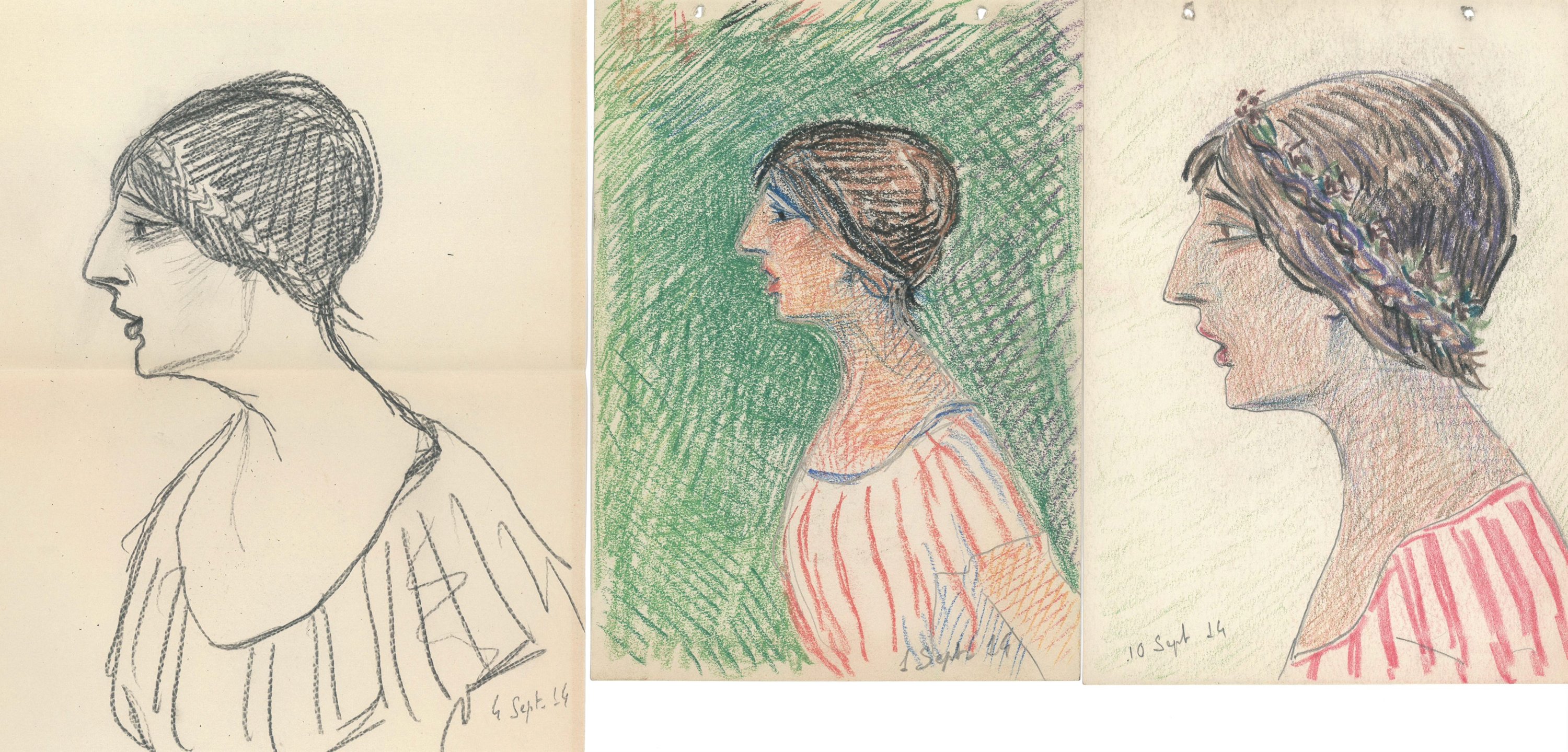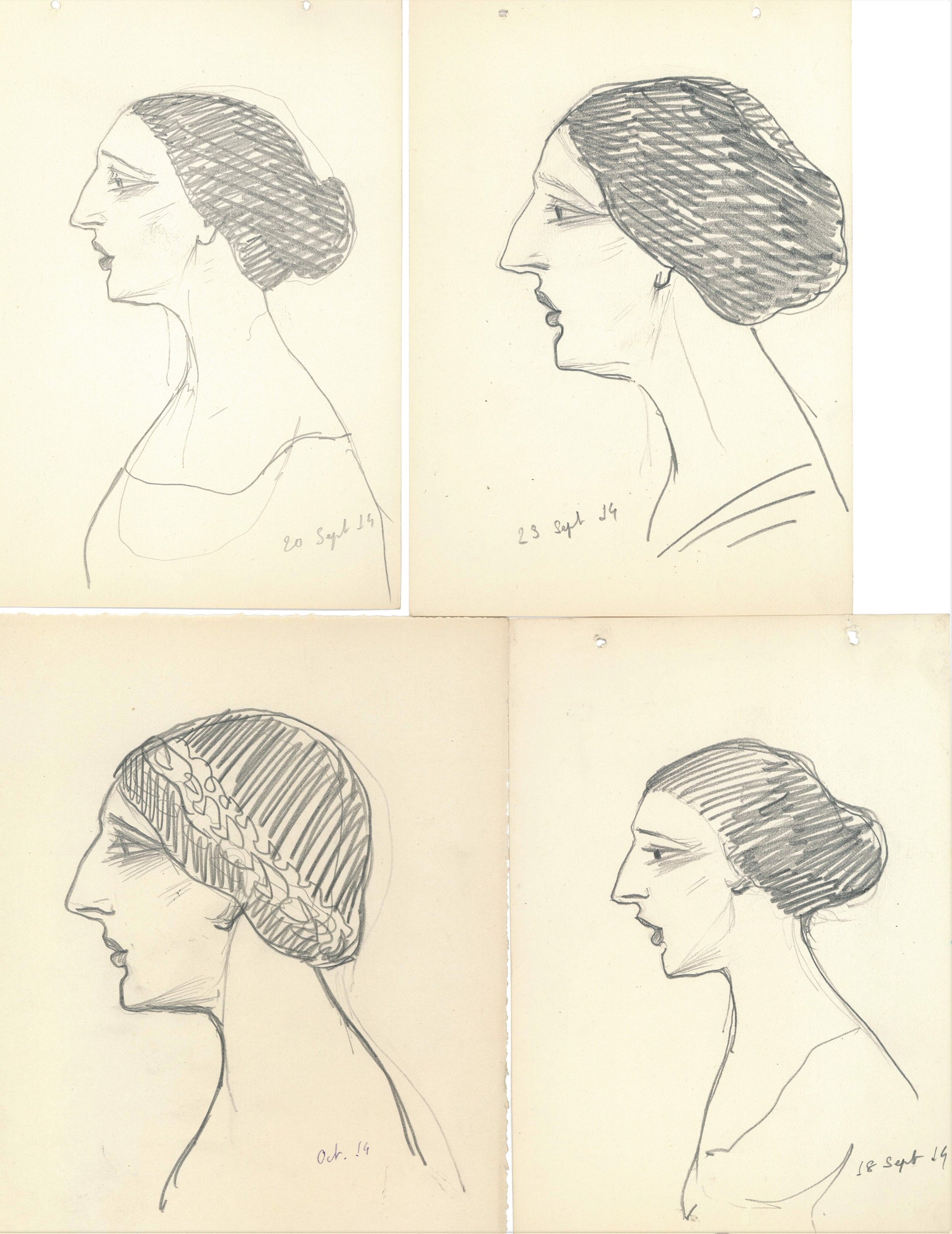 - 18 portraits de Fanchette croqués par R.M. en 1914 ;