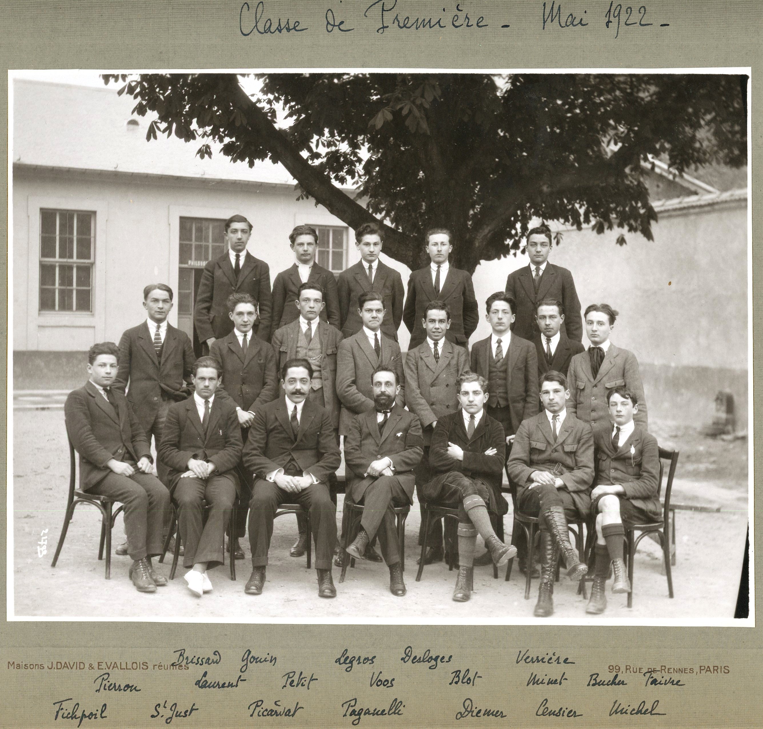 - 3 photographies officielles, poses des professeurs et des élèves, mai 1922 ;