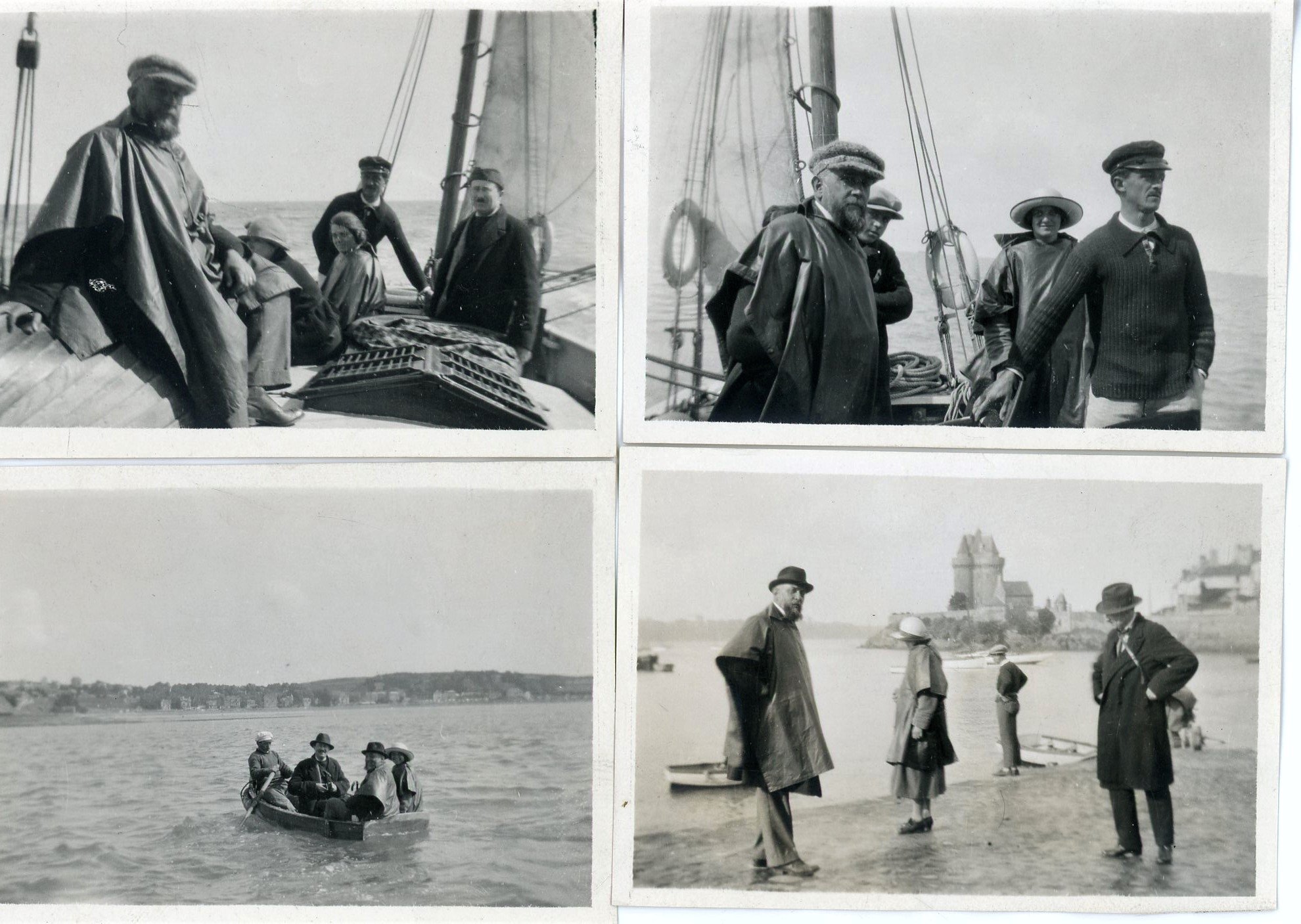 - 22 tirages photographiques certains par R.M., 1920-1923: vue de la famille Bouglé dans leur propriété à Boulogne (Célestin et ses filles Germaine et Simone, Jean Abadie, Pierre et Denise Gastinel, etc), sortie en mer à St Servan au Val André en présence de Francis Renaud et Michel Geistdoerfer ;
