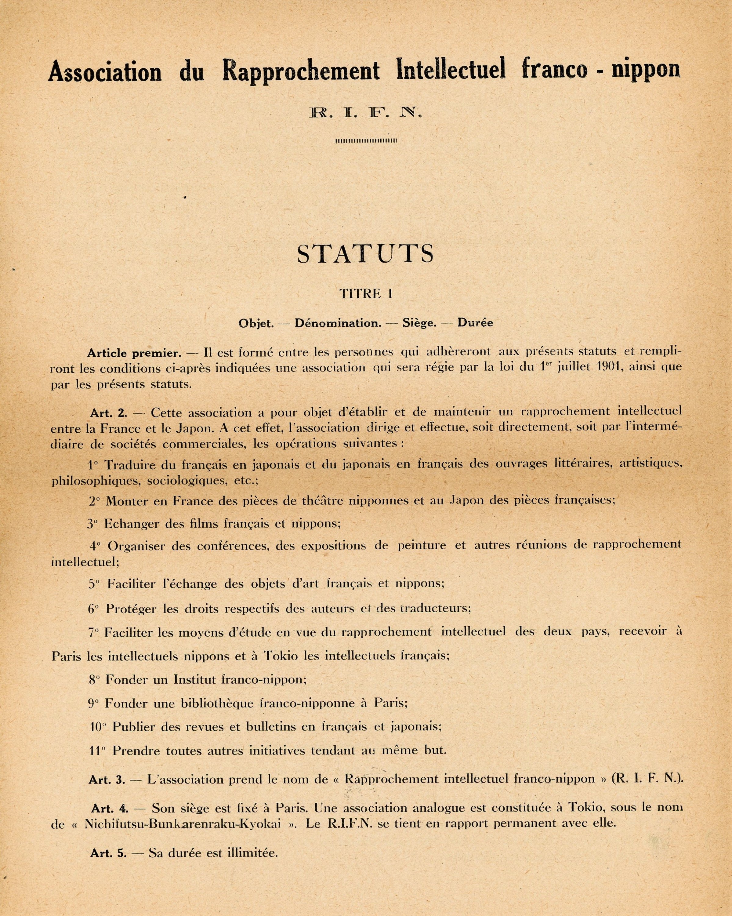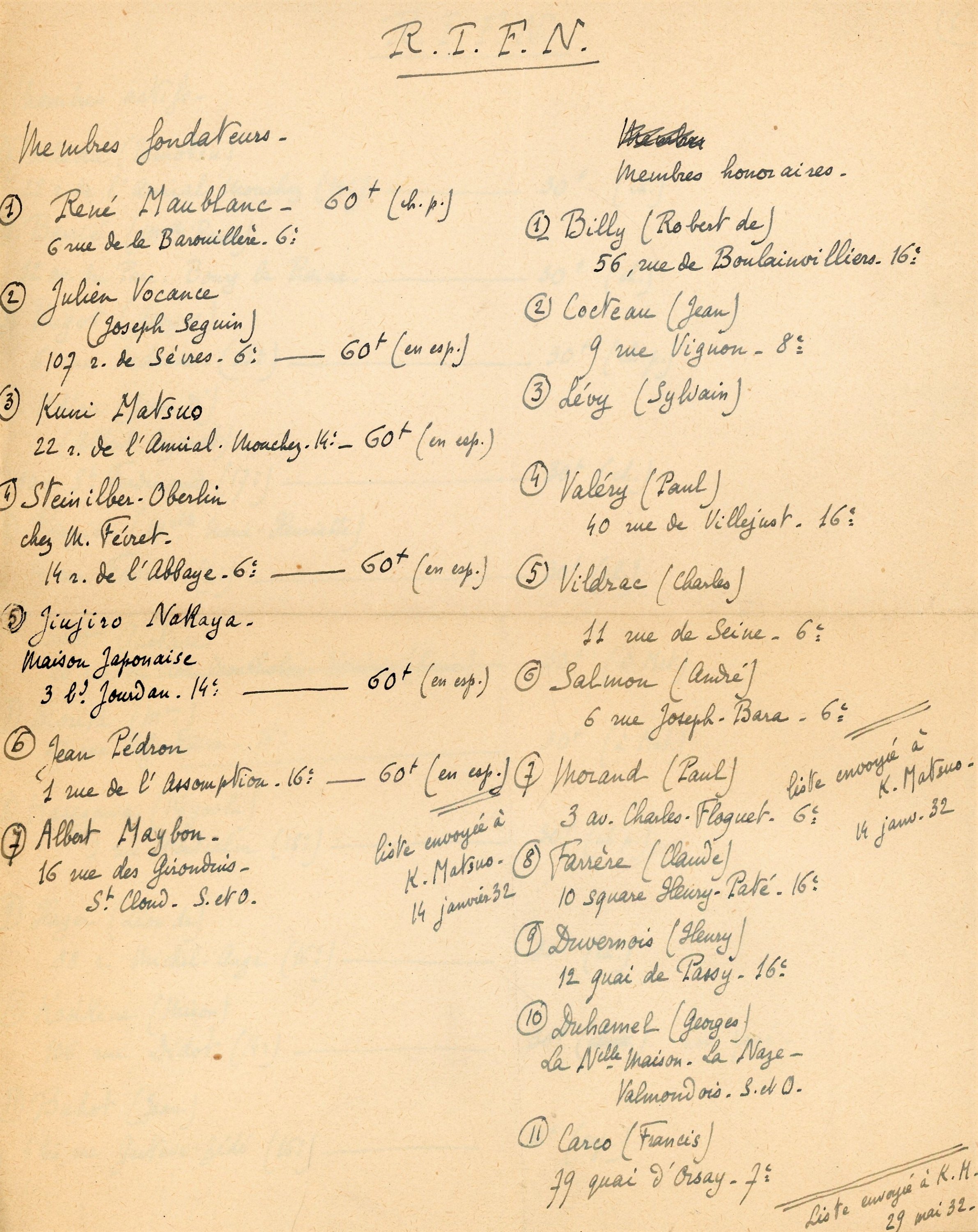 KUNINOSUKE MATSUO (1899-1975), CORRESPONDANT A PARIS DU JOURNAL JAPONAIS YOMIURI ET REDACTEUR-ADMINISTRATEUR DU RAPPROCHEMENT INTELLECTUEL FRANCO-NIPPON (R.I.F.N.)