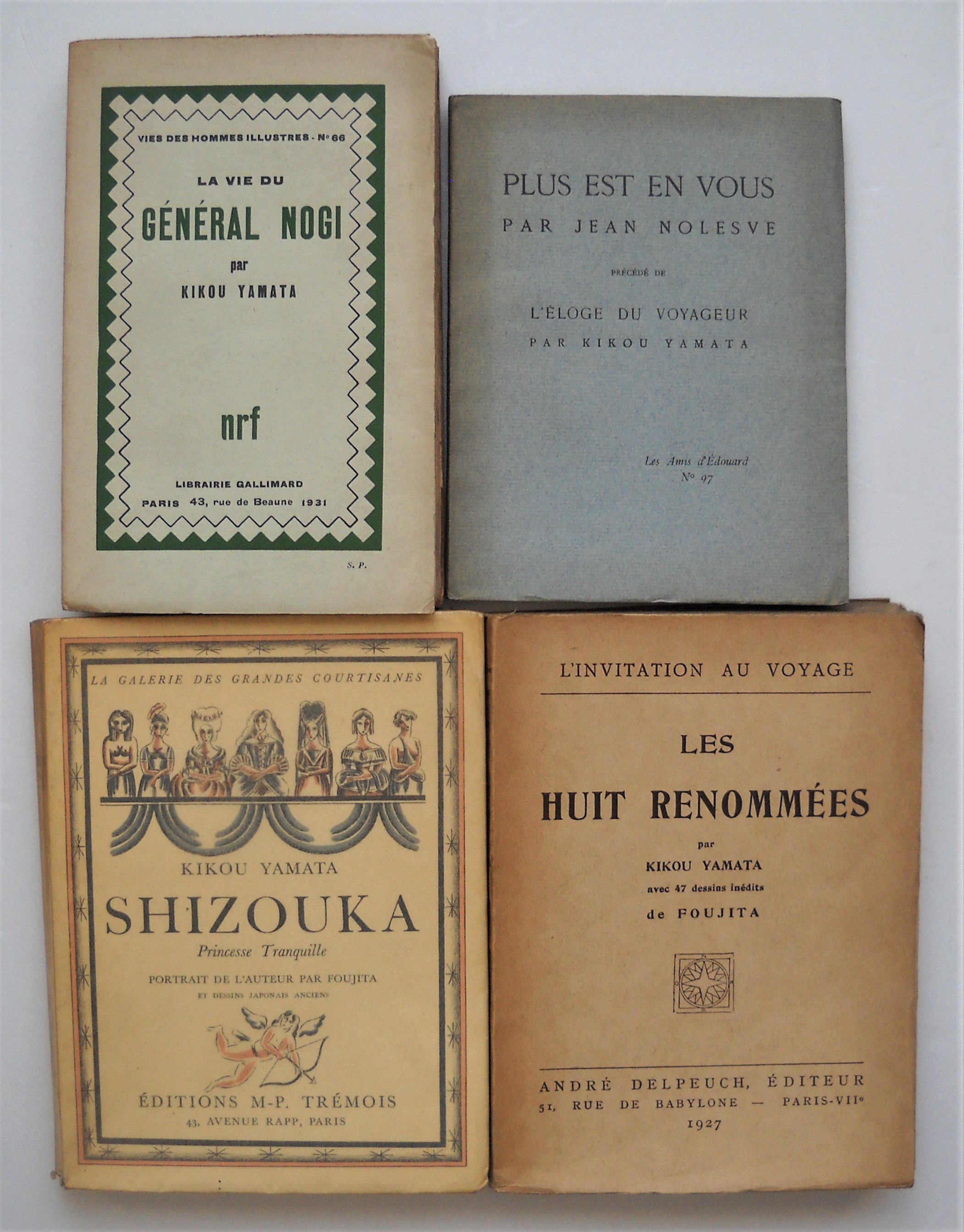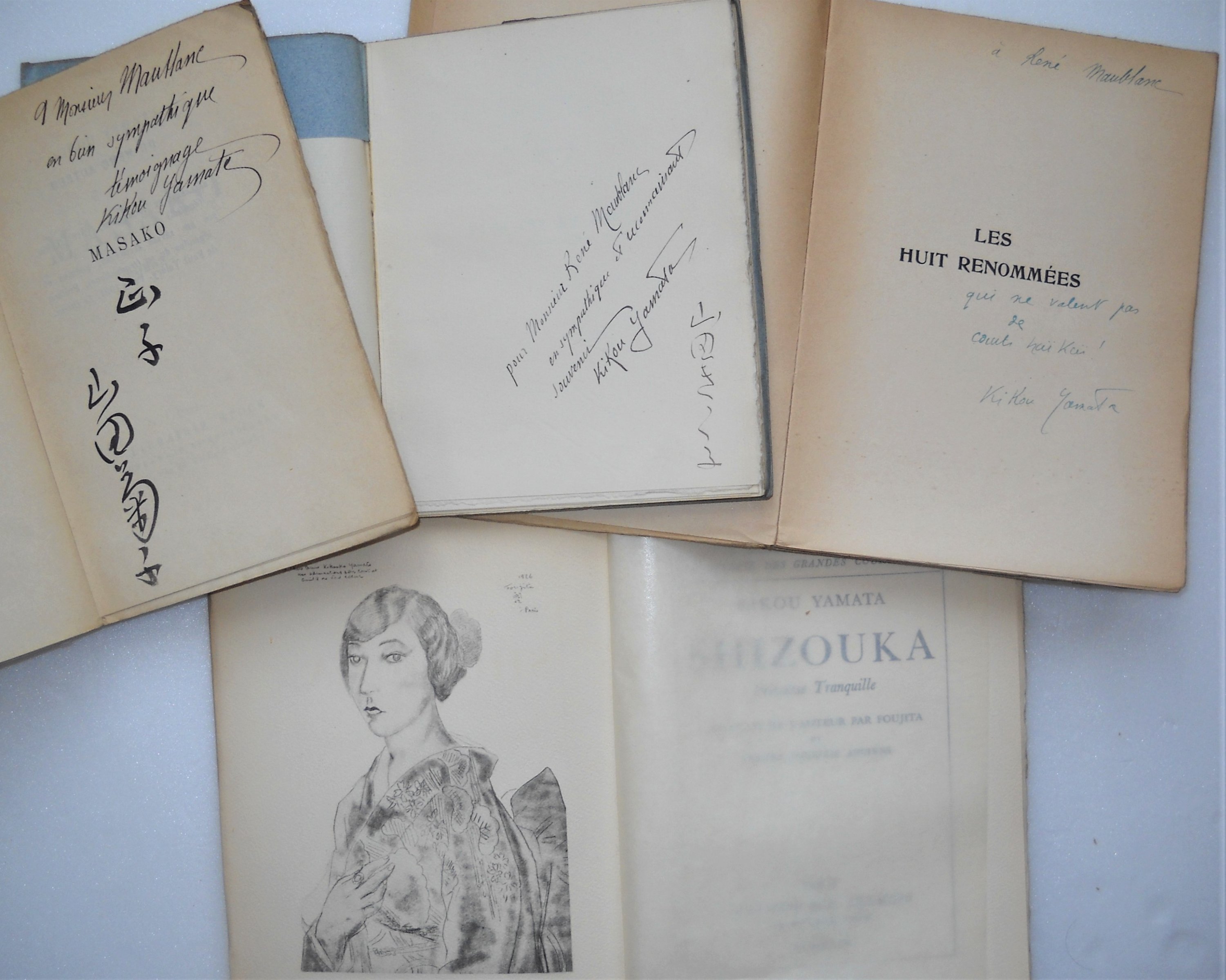 Shizouka, princesse tranquille, portrait de l'auteur par FOUJITA et dessins japonais anciens, Editions M.P. Trémois, Paris, 1929, br. in-8, 101 pages. Ex. S.P. sur vélin. Envoi autographe signé.