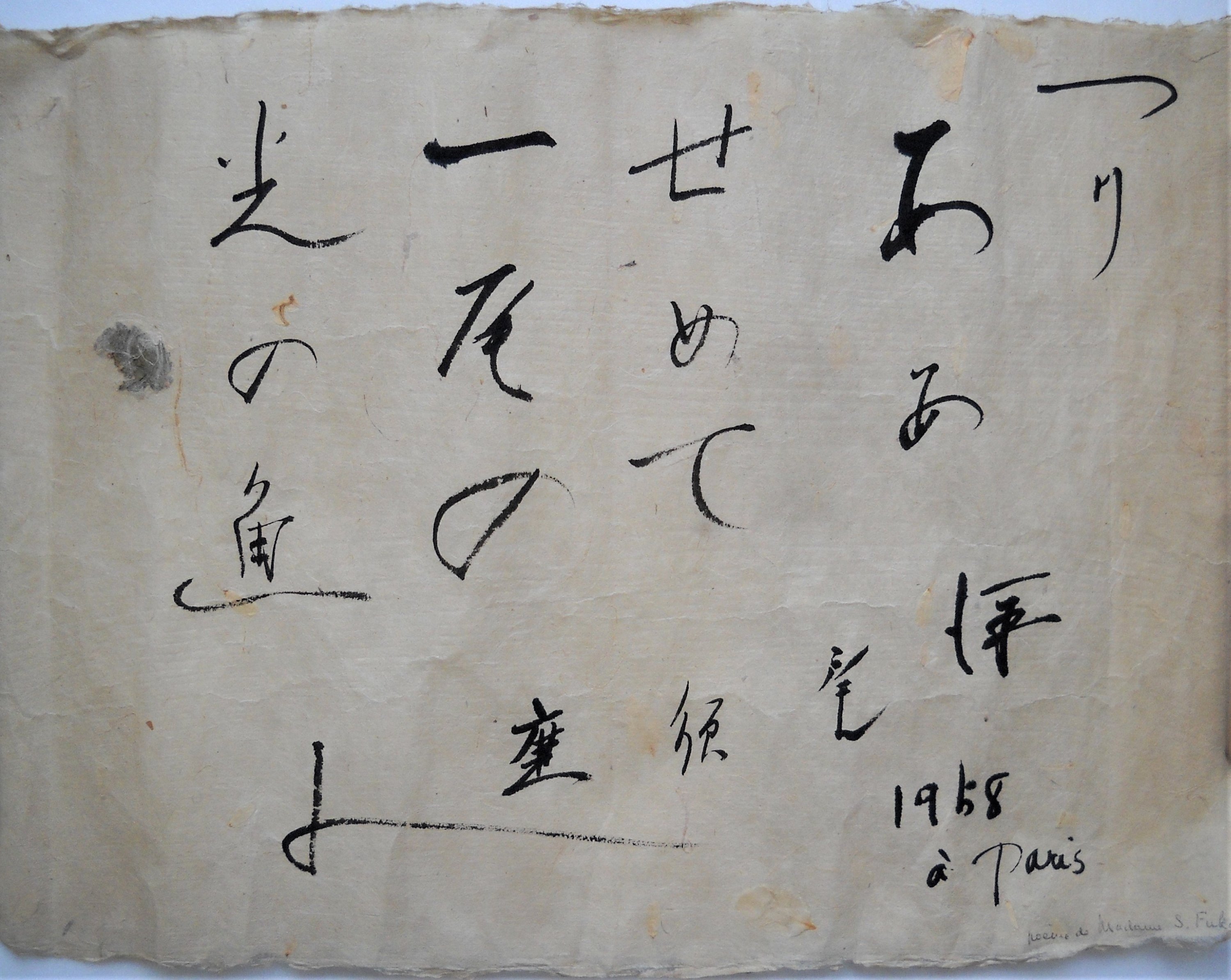 Joint: portrait photo imprimée signée « Fouyié Souzouki » – Petit livret orné de 10 scènes d’acrobaties chinoises aquarellées et gouachées sur papier japon, in-12. – 2 albums d’estampes japonaises, seconde moitié du XIXe siècle ? – Rouleaux de papier de riz et feuille calligrammée d’un poème. – Ouvrage en japonais de Sovéo GOTO avec son carton – Catalogue illustré de gravures en couleurs reproduisant de peintures anciennes du Japon présentées sous forme de tableaux, de cartes-postales, de cartes-menus, de calendriers, etc, par la Shimbi Shoin, société d’impressions artistiques de Tokyo, plaquette agrafée in-8, 48 pages.
