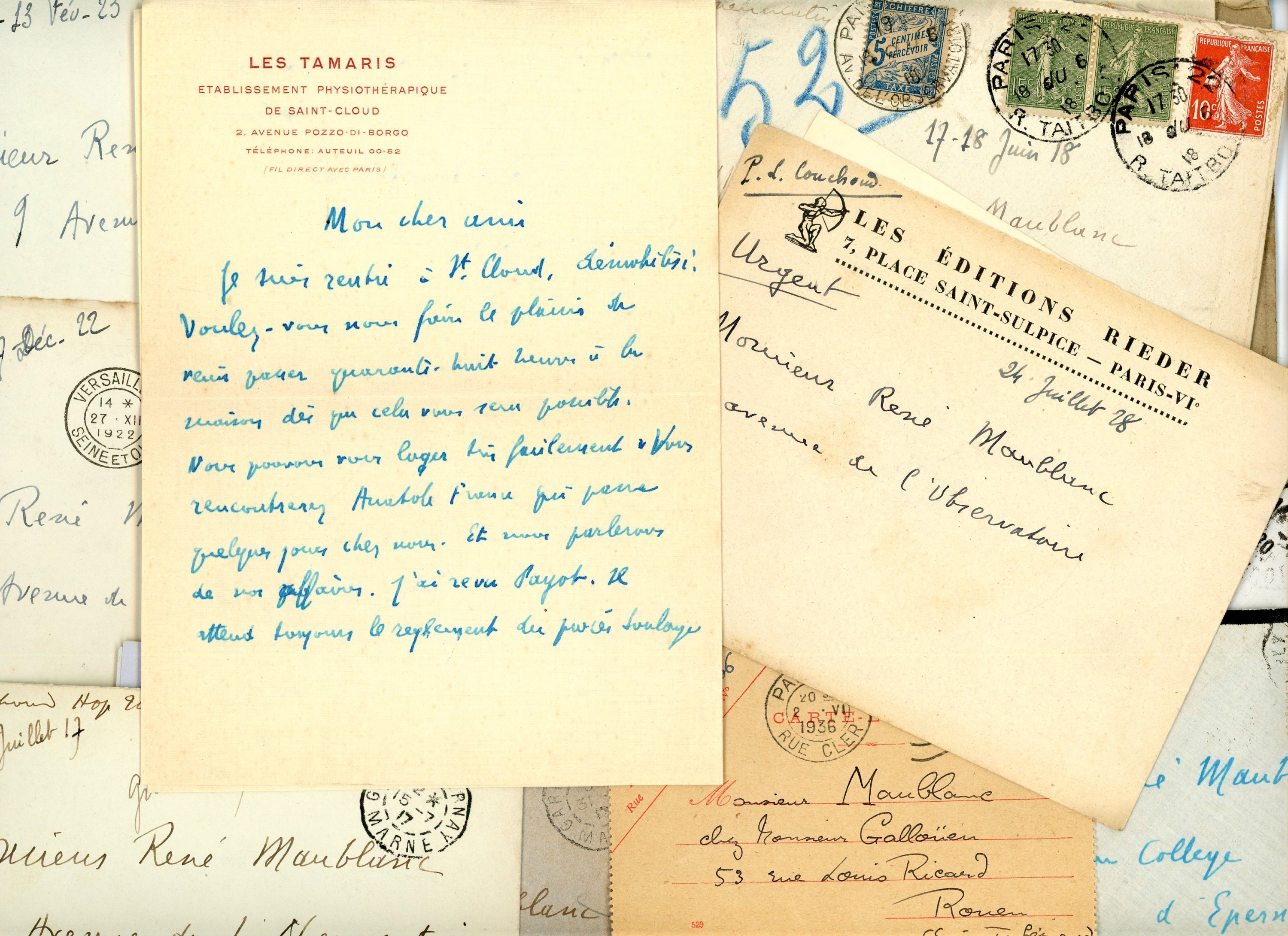- 31 L.A.S., L.S. et P.A.S., en majorité avec enveloppes, adressées à René Maublanc, 1917-1956 ; joint 7 L.A.S. de Marianne et Jean-Paul Couchoud, enfants du docteur et élèves de René Maublanc, et de Jean Bunand (1903-1939), beau-fils de Couchoud ;