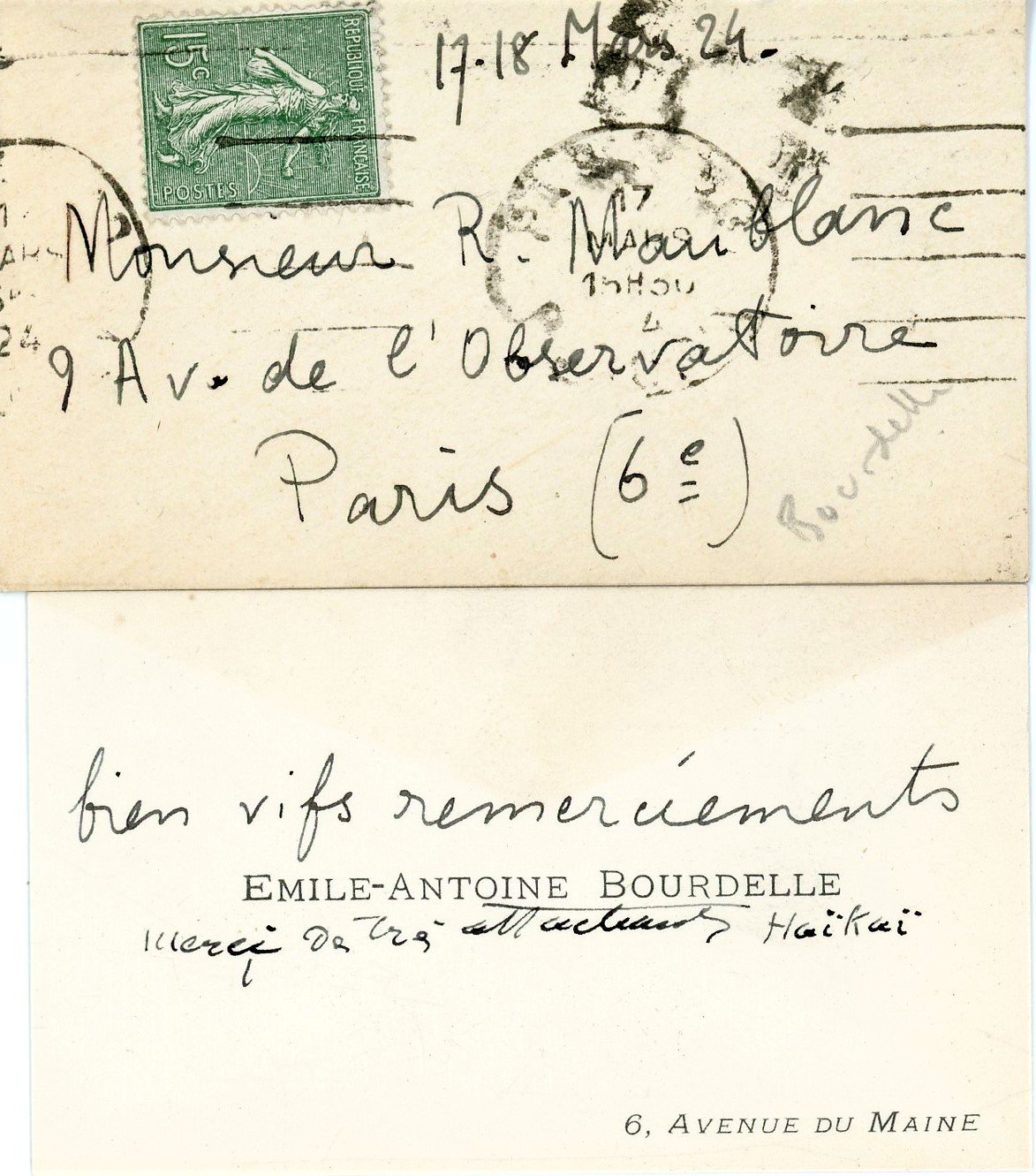 - « Bourdelle (1861-1929) », Maison de la Pensée Française, mars-juin 1953, plaquette d’exposition in-8 ;