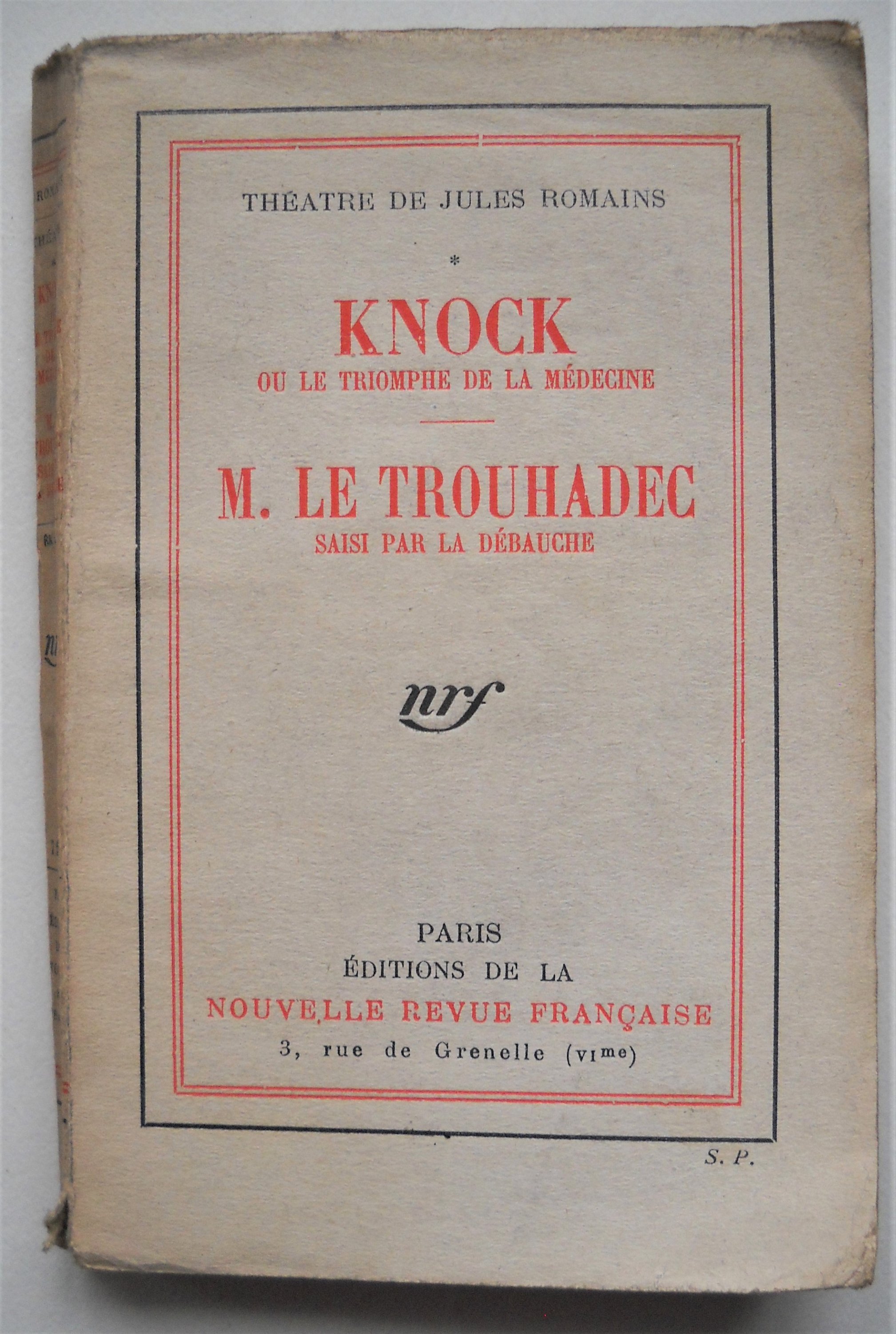 Knock ou le triomphe de la médecine. M. Le Trouhadec saisi par la débauche, N.R.F., Gallimard, 1924, br. in-12, 249 pages. Exemplaire S.P. Envoi autographe signé.