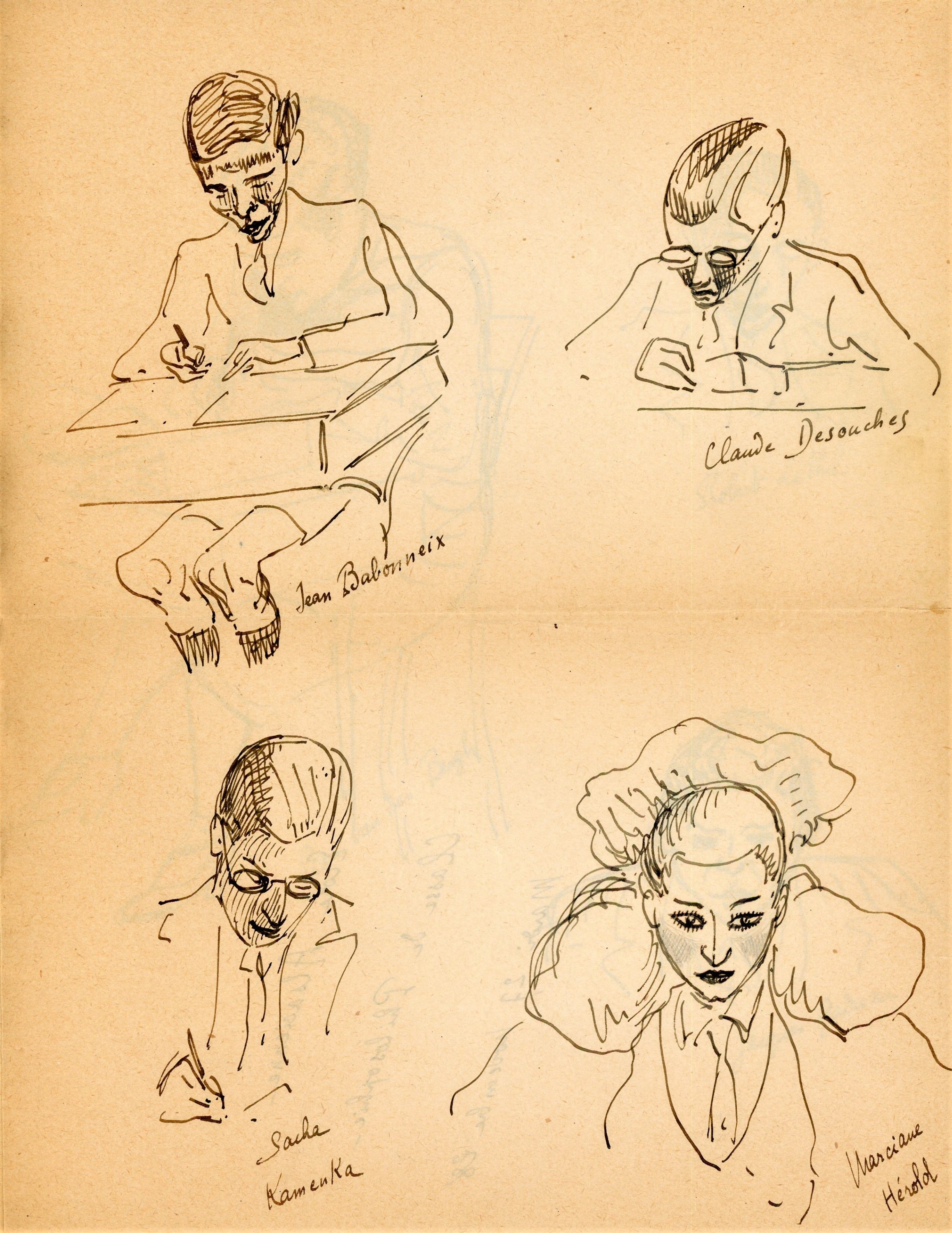 - 21 petits dossiers, classés par année scolaire et par discipline, 1927-1934, contenant listes des noms et emplacement des élèves de chaque classe, tableaux de notes et appréciations, tableaux des résultats de compositions, croquis de R.M., correspondance de parents et d’élèves, dessins d’élèves, etc ;
