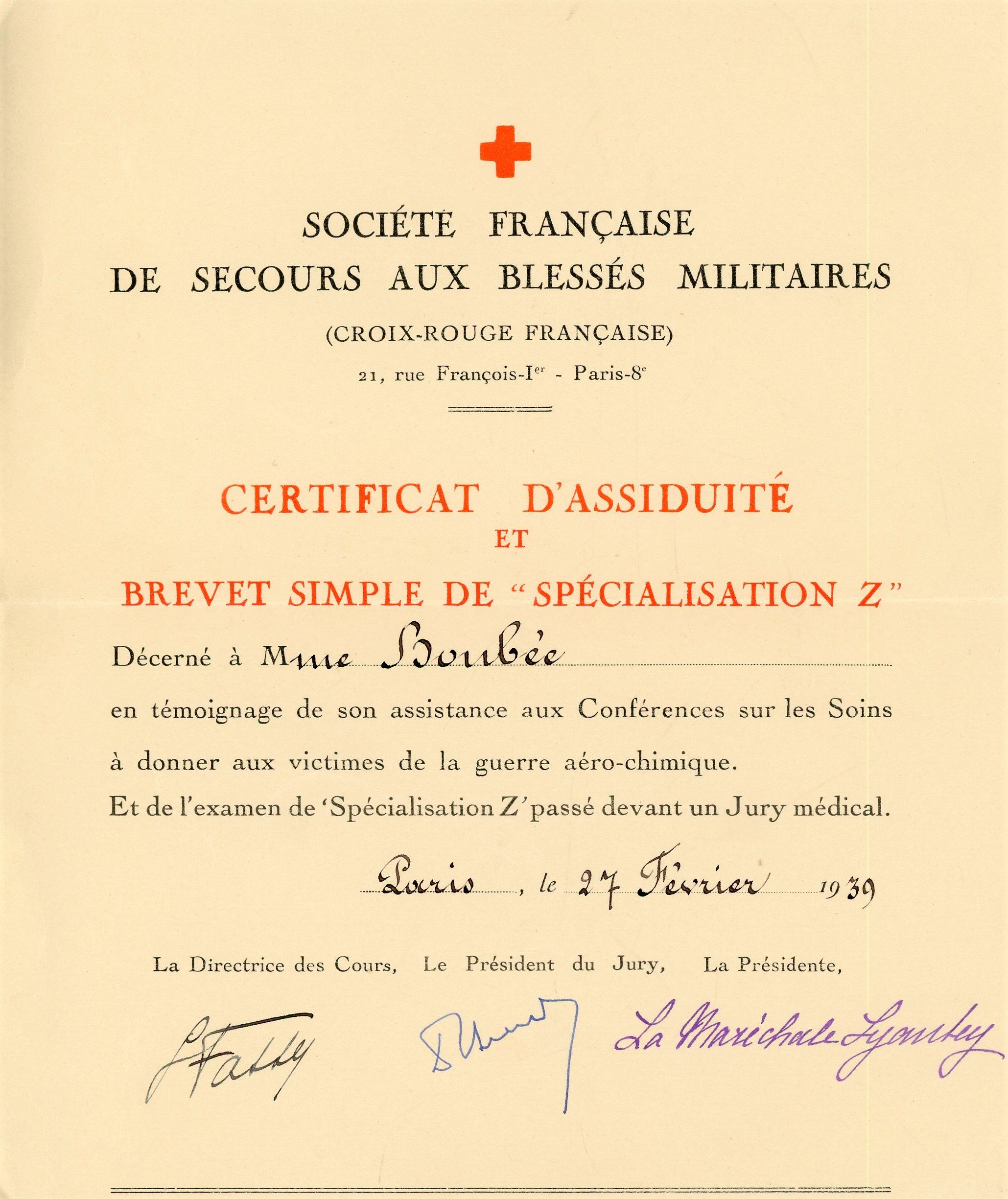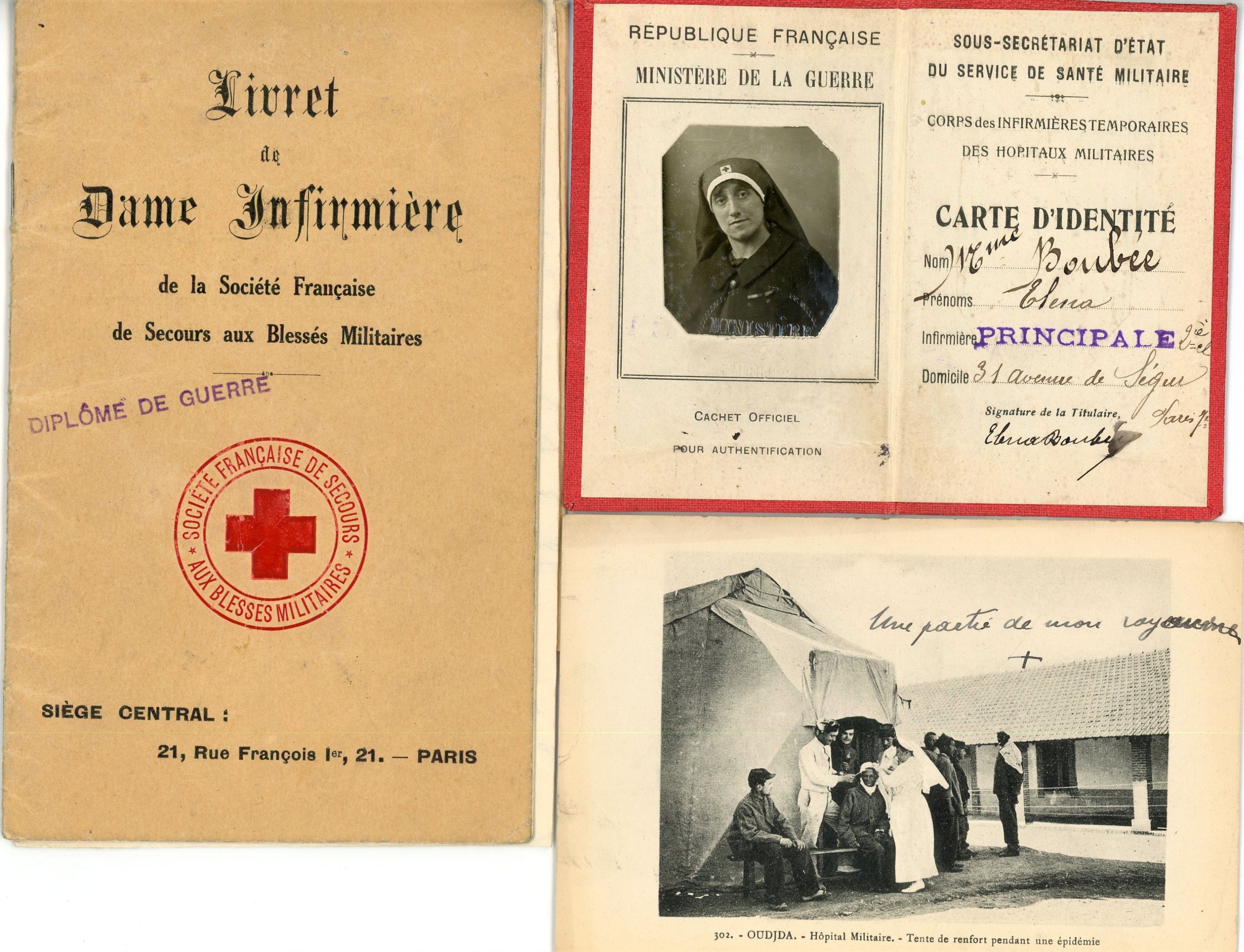 - Lot de documents relatifs à son engagement comme infirmière volontaire sur le front durant la grande guerre dont 2 livrets de dame infirmière militaire, états de service, carte didentité, attestations de médecins, extrait de lordre de la délivrance de la médaille dargent des épidémies, correspondance de poilus, etc ;