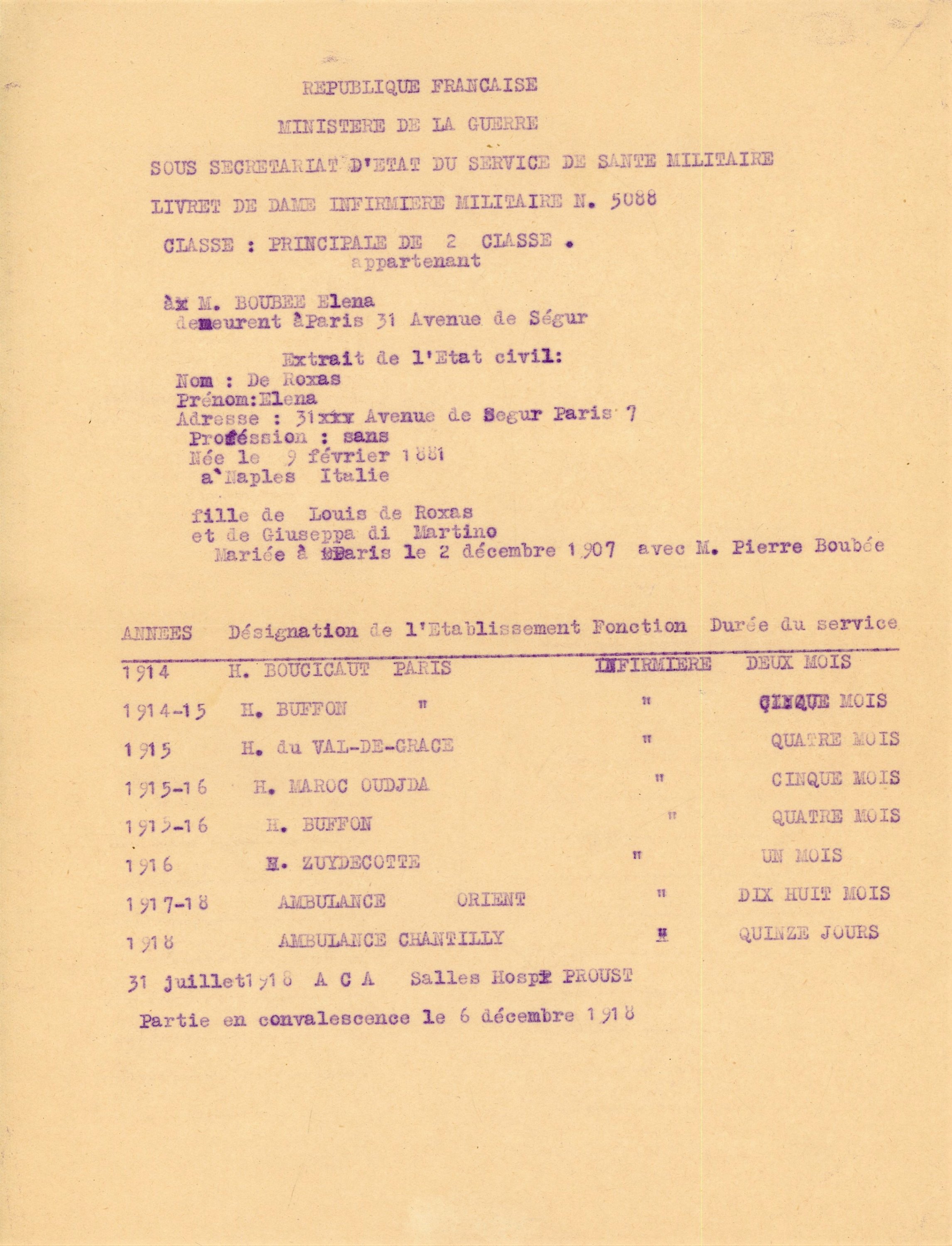 - Lot de papiers personnels dont volontés testamentaires dElena datées de 1918, 1929, 1940, 1943 et 1952 ; 2 longues L.A.S. datées de 1942 de Marcelle Boubée sa belle-soeur ; 3 tirages photographiques, 6 x 9 cm : portrait dElena et vue de limmeuble parisien où elle demeure (31 avenue de Ségur).