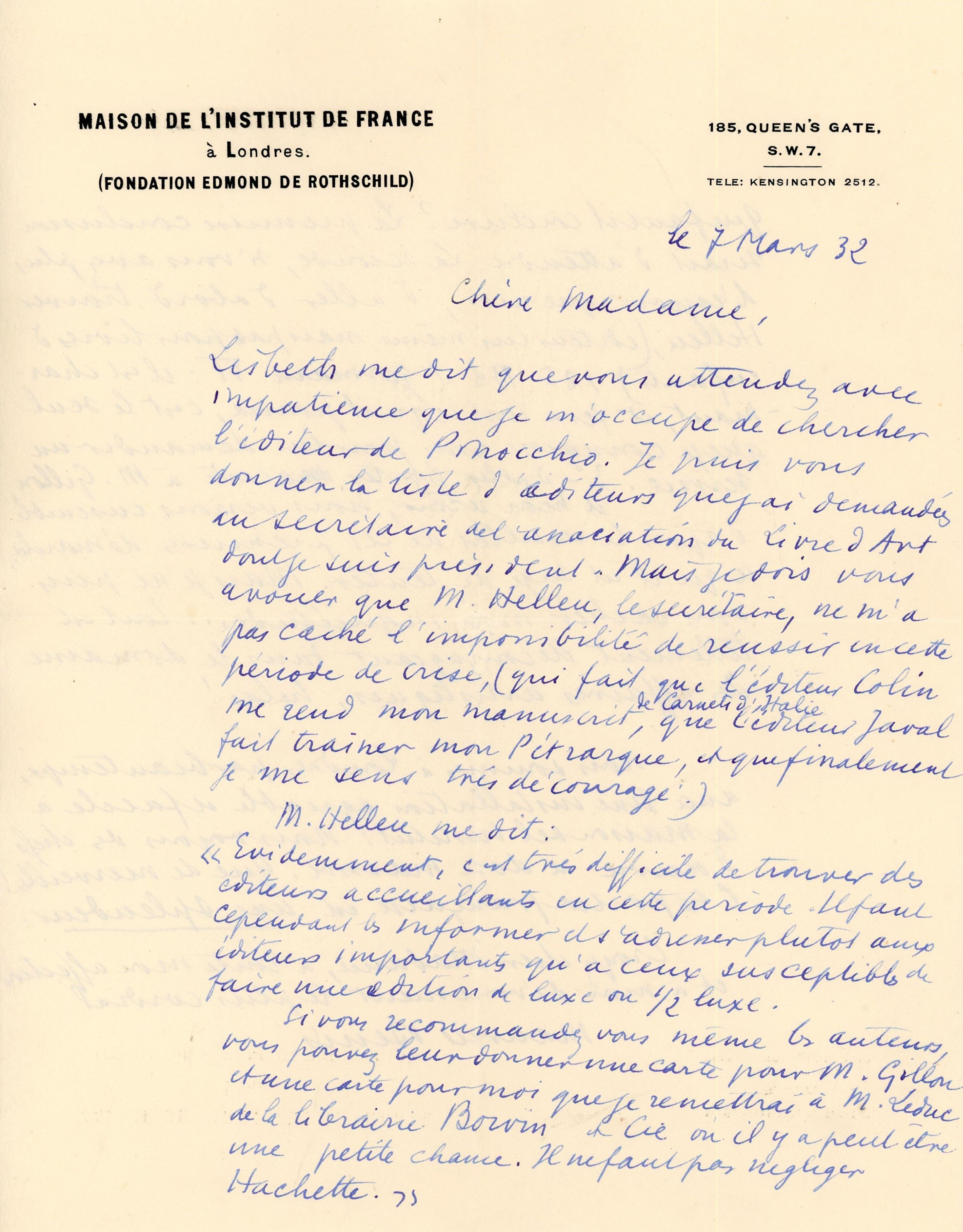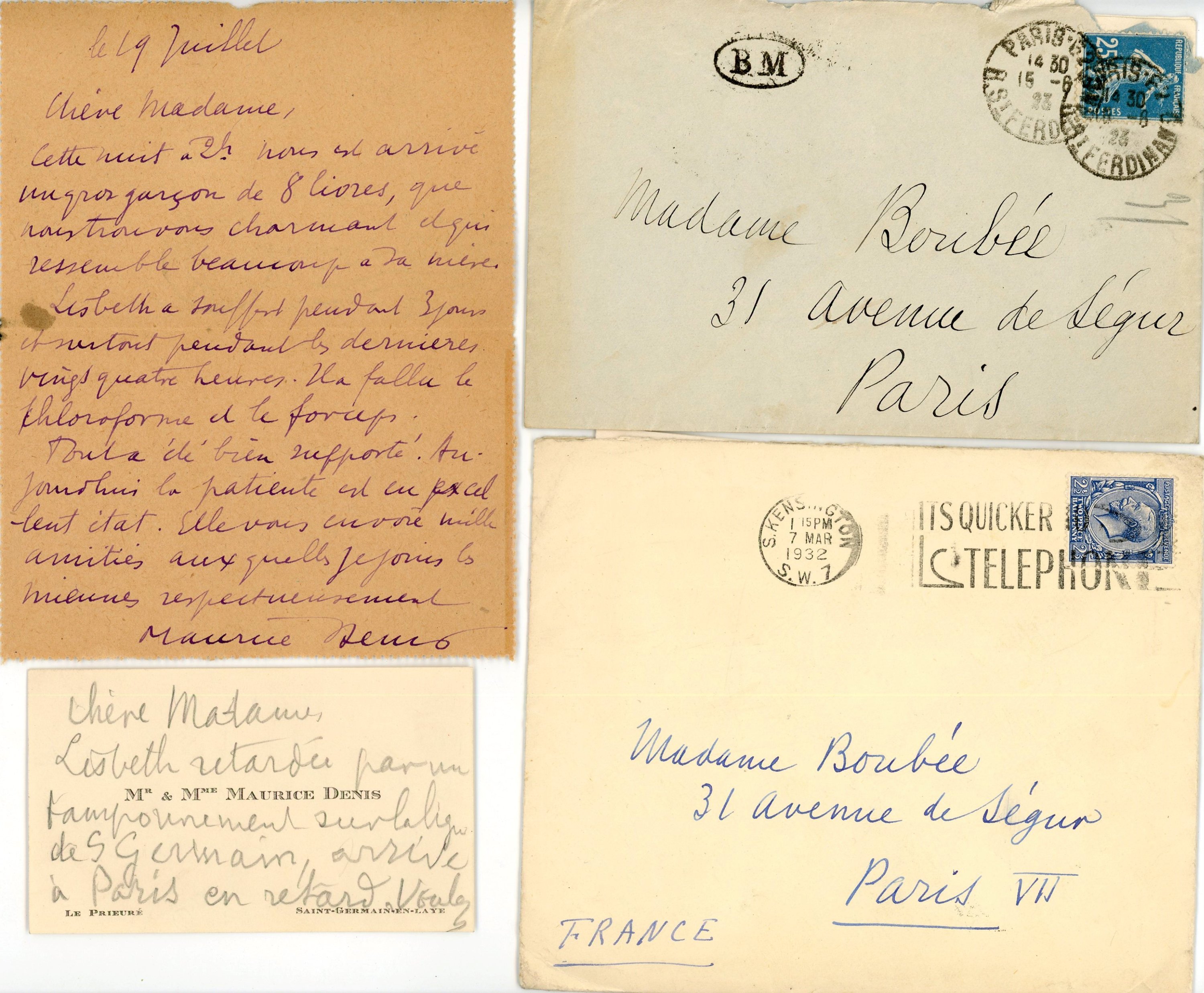 - 2 L.A.S., P.A.S. et carte de visite, 1923-1932, adressées à Elena Boubée ;