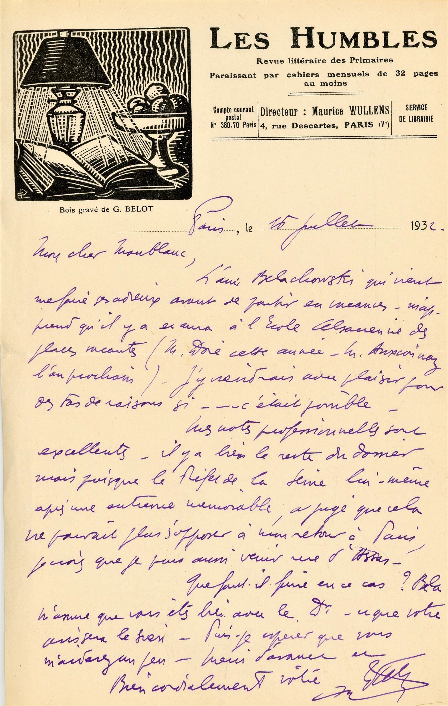 - 2 L.A.S., à entête de la revue nantaise La Ligne de Coeur, Julien LANOË (1904-1983), écrivain et fondateur de la revue ;