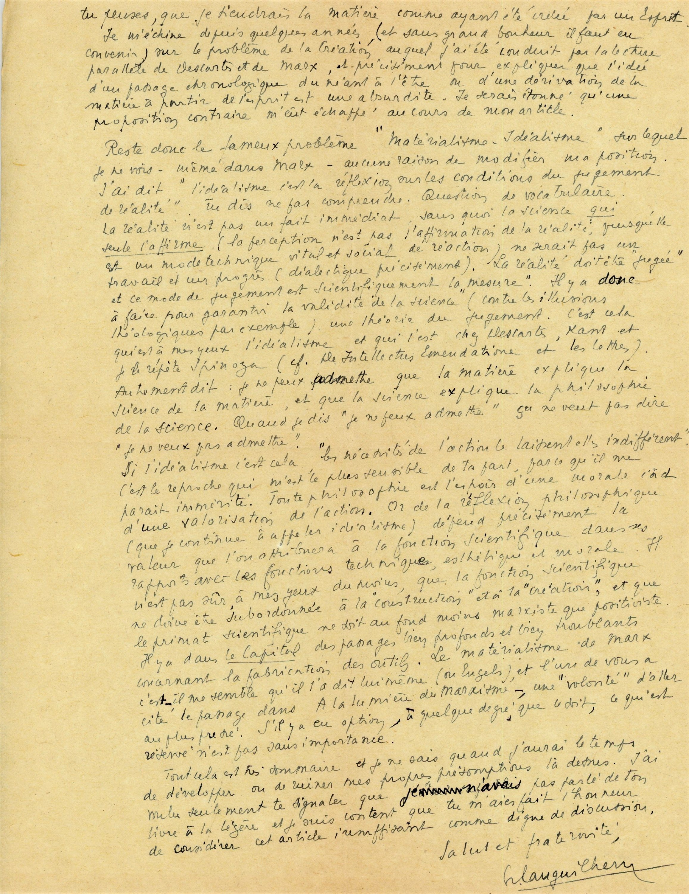 7 P.A.S. Michel ALEXANDRE (1888-1952), directeur des Libres Propos ; 5 L.A.S. Georges BÉNEZÉ (1888-1978) ; L.A.S. Pierre BOST (1901-1975) ; Longue L.A.S. Georges CANGUILHEM (1904-1995), au sujet dun article paru dans « Commune » relatif au matérialisme/idéalisme ; P.A.S. Simone Adolphine WEIL (1909-1943) datée du 6 mai 1929 au sujet dune pétition à signer contre les arrestations du 1er mai ; 53 L.A.S. et P.A.S. Jean LAUBIER (1891-1959) ;
