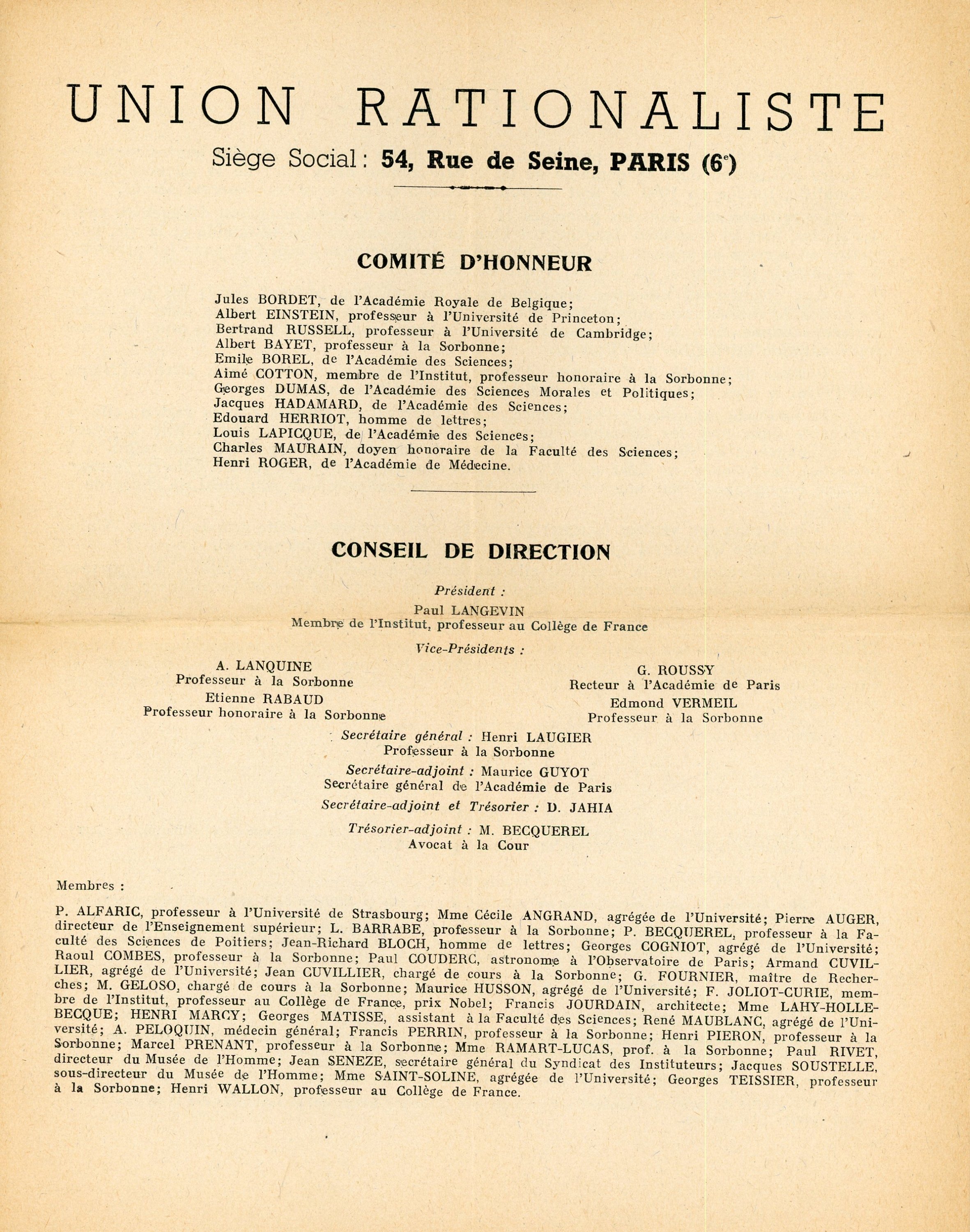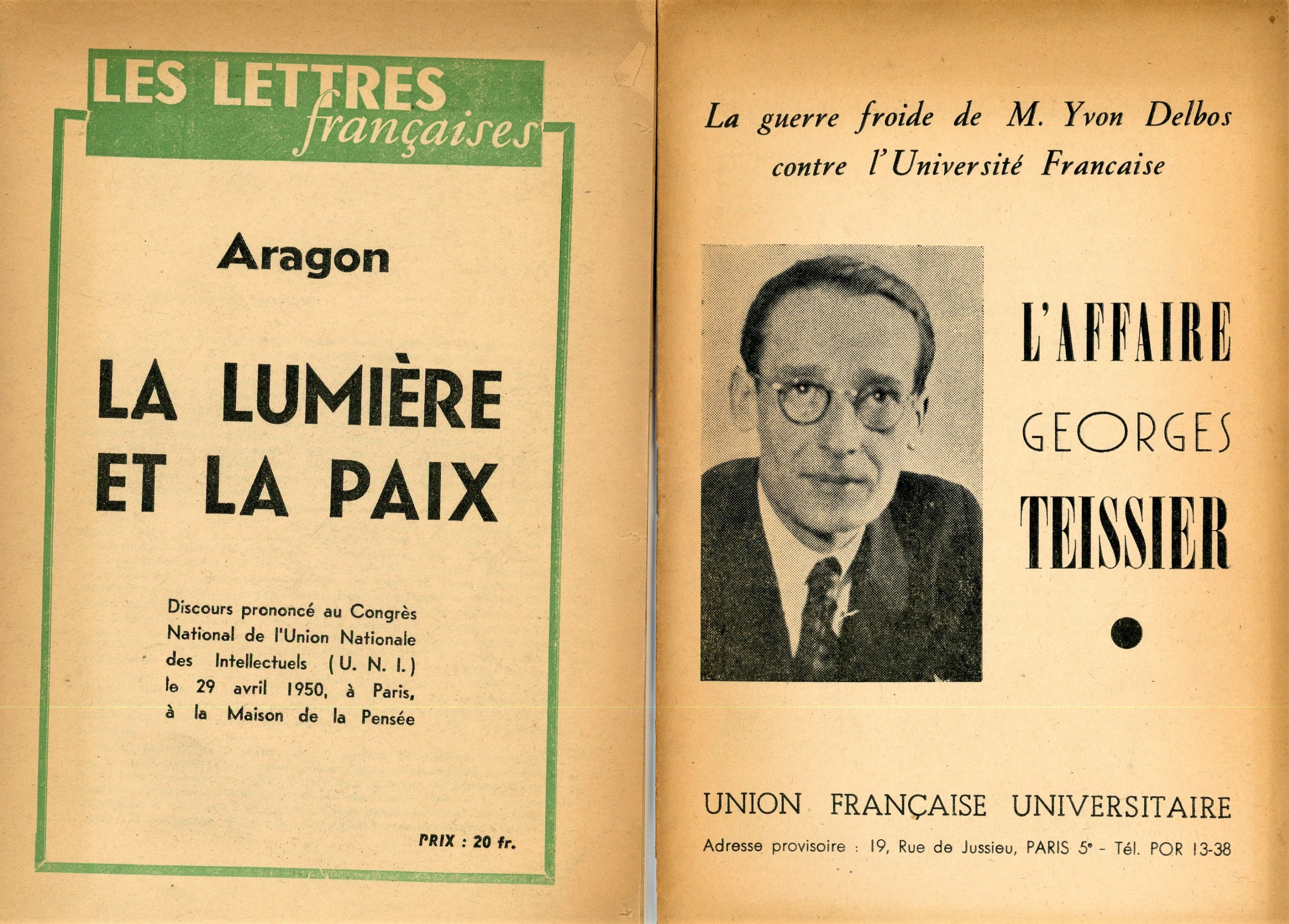 Correspondances de Louis ARAGON, Paul BOUTHONNIER (L’Université Nouvelle), Auguste CHEVALIER, Marcel CORNU, Paul DELANOUE, Jean DELORME (comité malgache), Rémy GARÇONNET, Jean ROULON (L’Ecole Laïque), André STIL, Louis de VILLEFOSSE, etc.