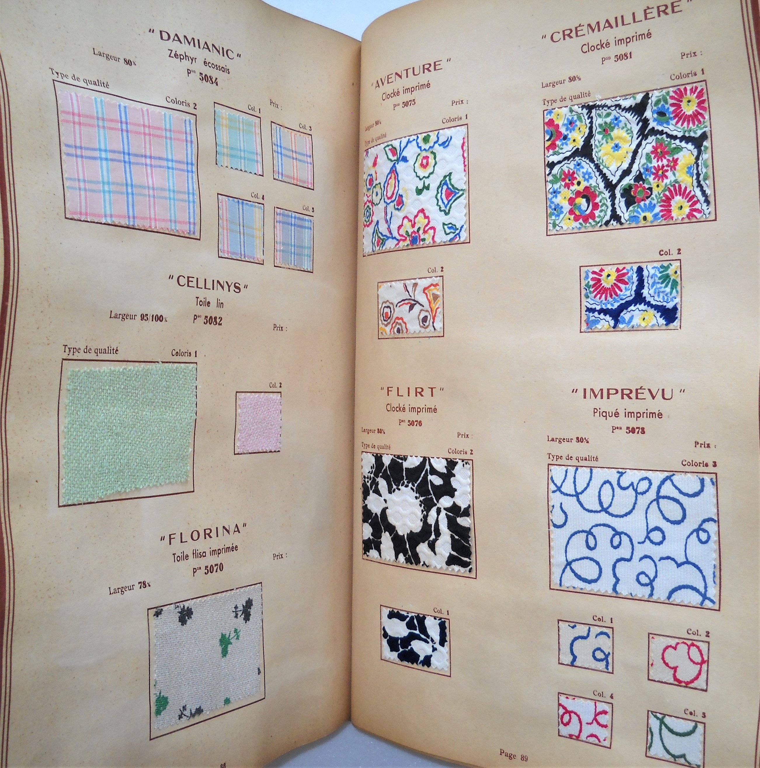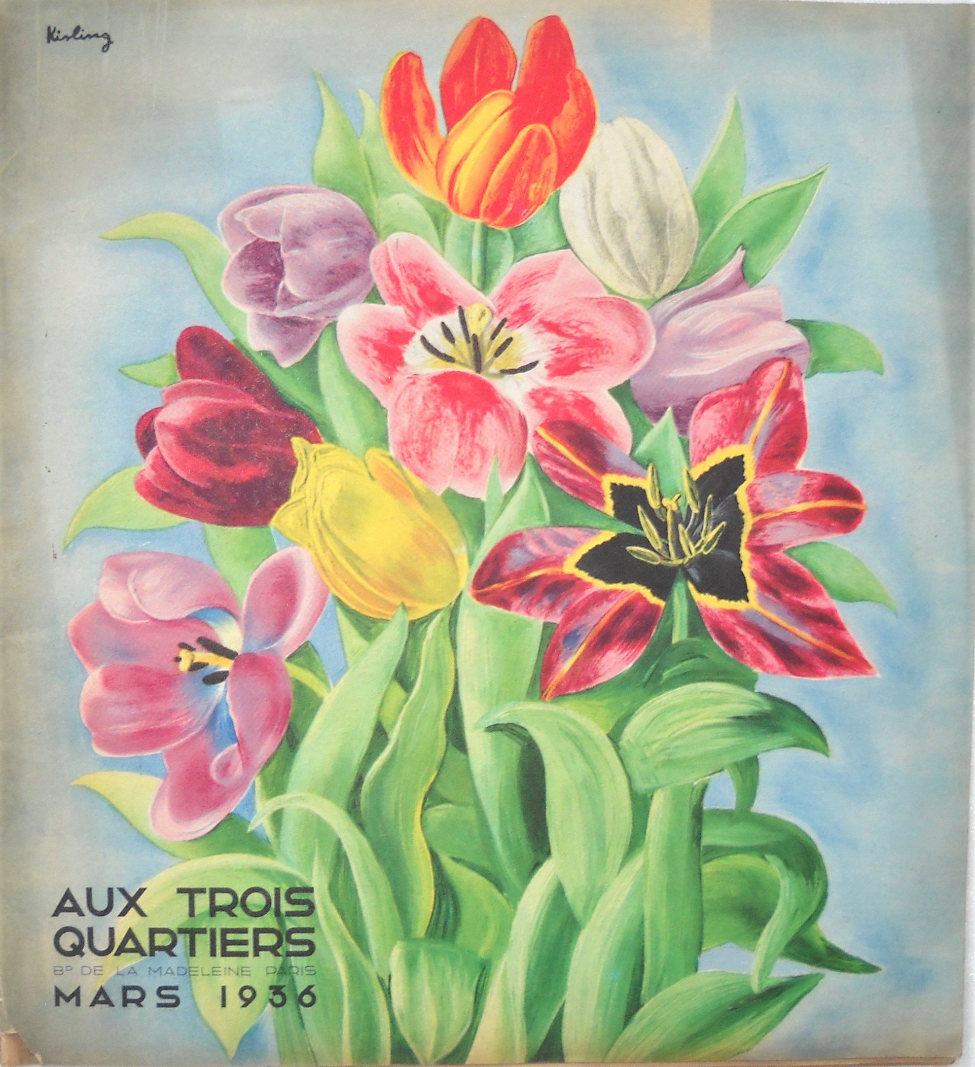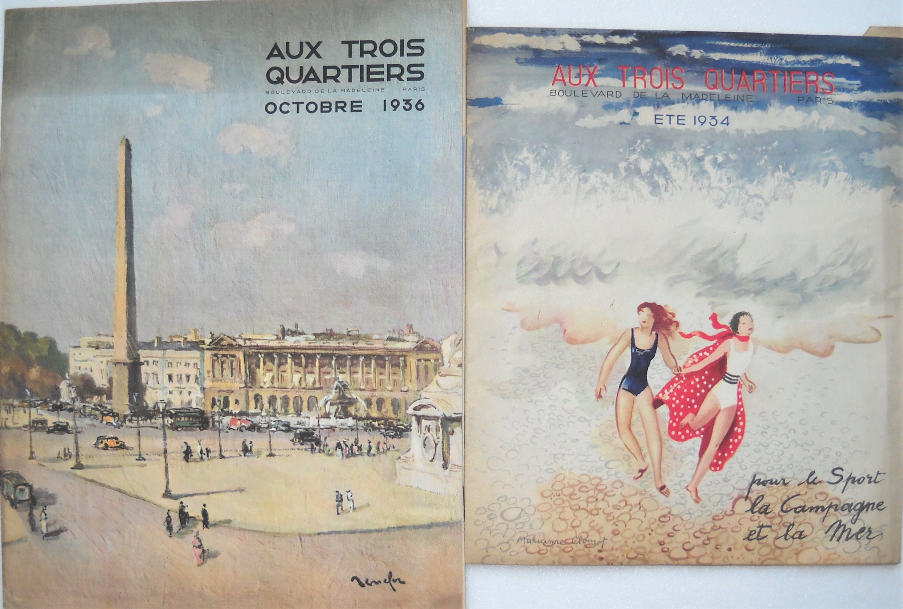 Catalogue déchantillonnage de tissus, les nouveautés de lété 1938, Gaston Verbié, Paris (34 bd de Sébastopol, IVe), grand in-fol. à litalienne Prospectus pour « La Toile dAvion », commerçant en linge de maison et vêtements à Paris. Vers 1936, plaquette in-8, couverture illustrée daprès aquarelle de Van Dongen. 12 prospectus/brochures publicitaires dont 11 « Aux Trois quartiers, boulevard de la Madeleine Paris » avec couvertures illustrées daprès Cavaillès, Marianne Clouzot, Kisling, etc, années 1930.