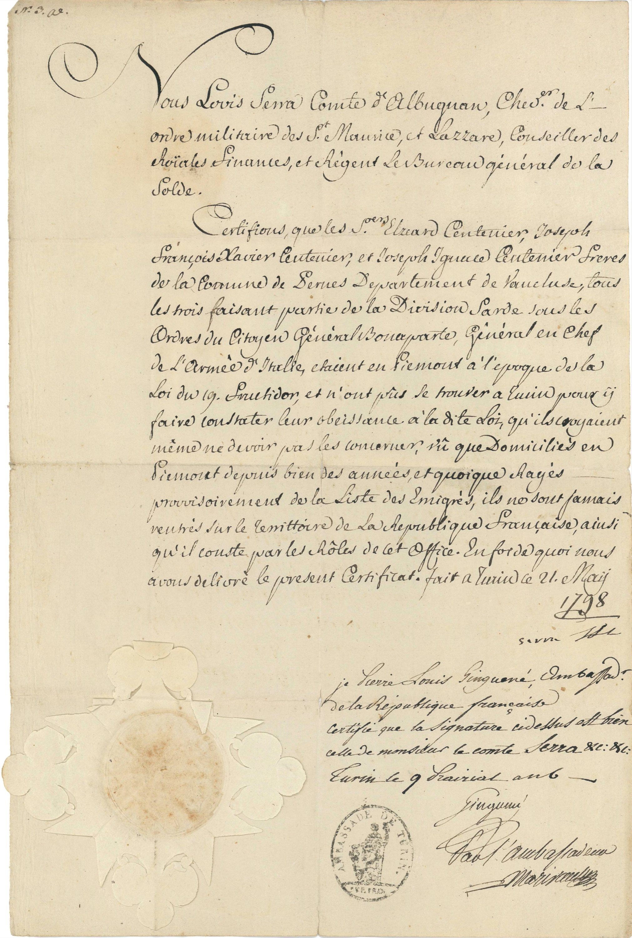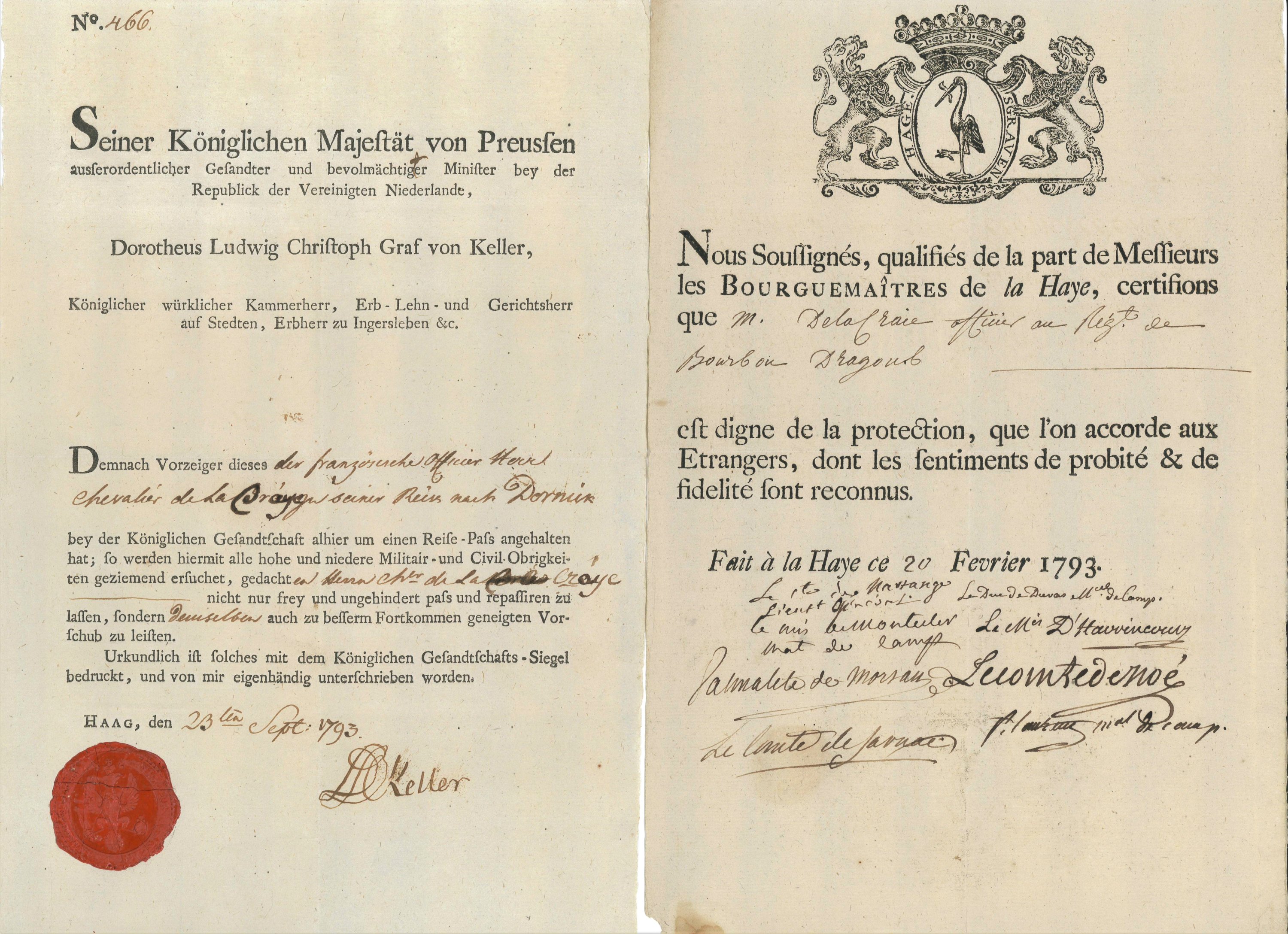 2 P.S. délivrées par les bourgmestres de La Haye et de Gravenhage en février et mars 1793 ;