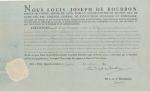 P.S., Feistritz, 20 mars 1801, Louis-Joseph de Bourbon, prince de CONDÉ (1736-1818), 1 p. in-folio oblong, en partie impr., à son en-tête « Nous Louis-Joseph de Bourbon, prince de Condé