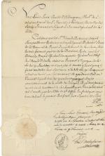 P.S., Raan en Styrie, 23 février 1801, Louis-Antoine de Bourbon, duc dANGOULÊME (1775-1844) fils de Charles X, époux de Madame Royale, 1 page oblong in-fol. en partie impr., à son en-tête « Nous Louis Antoine petit fils de France duc dAngoulême, chef du Régiment noble à cheval de notre nom », cachet de cire rouge aux armes ;